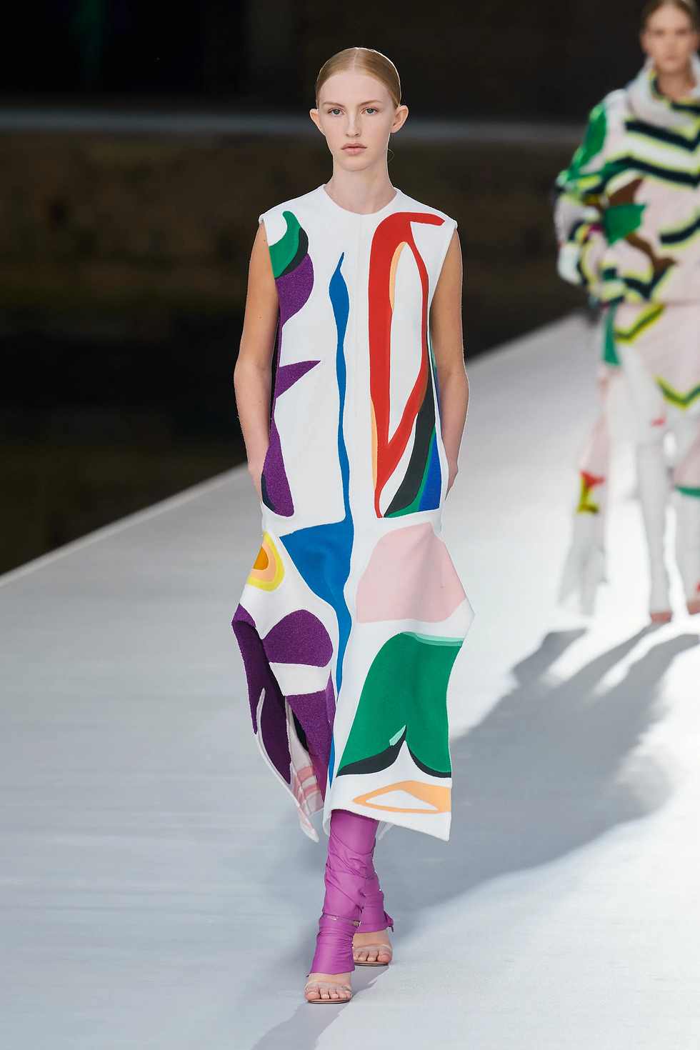 На подиуме встретились два мира — искусства и моды: два таких разных, но тесно связанных между собой направления. Для создания этой коллекции креативный директор модного дома Пьерпаоло Пиччолли привлек сразу 15 мастеров, которые работают в разных художественных направлениях, и каждый из них создал уникальный наряд.