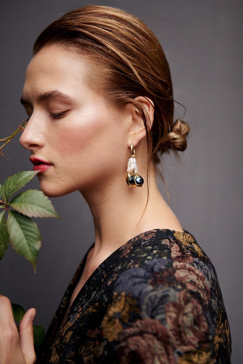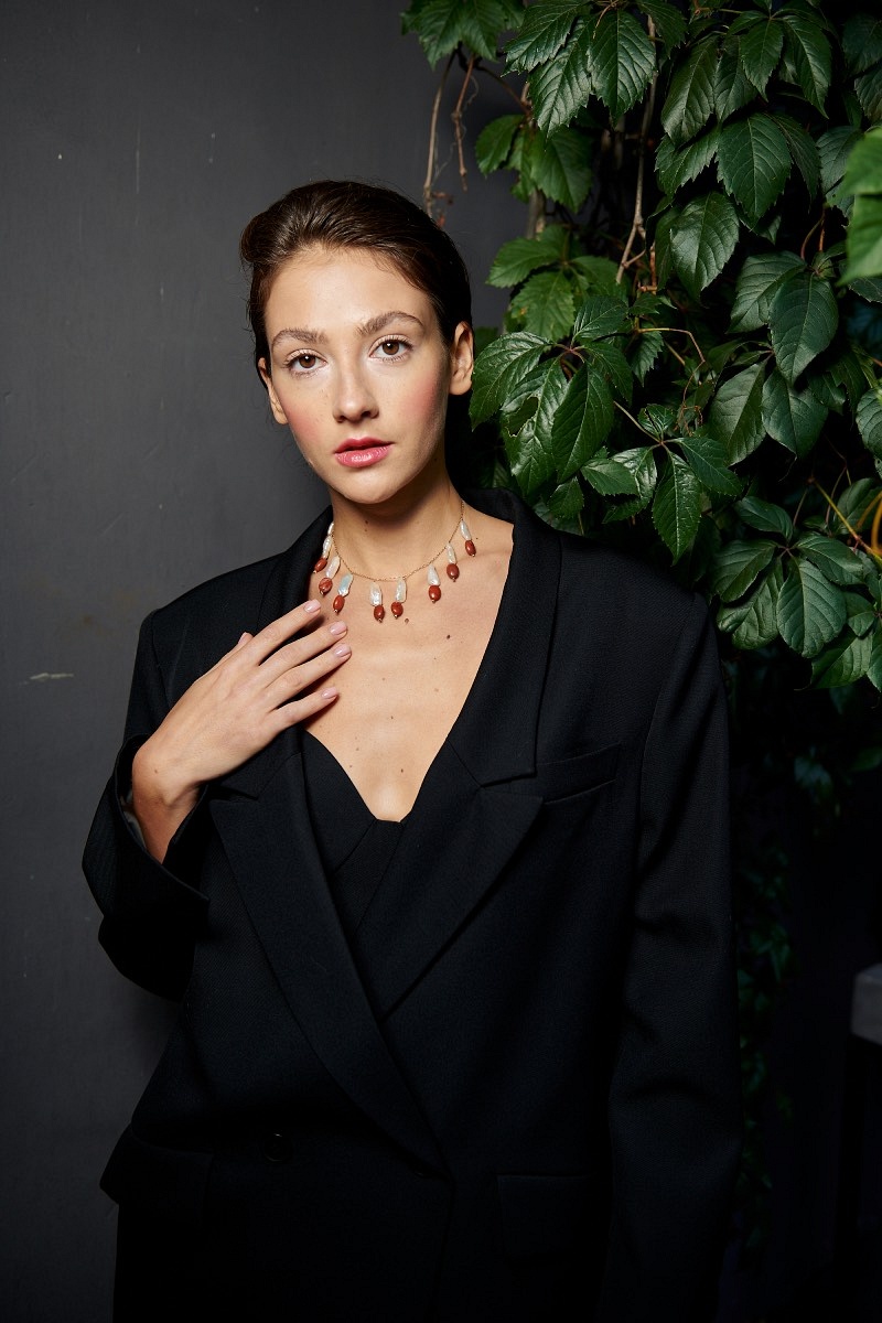 В этом сезоне для создания ювелирной линейки дизайнеры Lake Studio обратились к партнерам из Японии, Китая, Америки и Турции. Вновь используется жемчуг — он застыл в вытянутой, неправильной форме, словно его окунули в расплавленное золото. Речной жемчуг встречается в украшениях с черным и с яшмой, а еще впервые в линейке появляются кольца — они соседствуют с брошками, подвесами и серьгами.