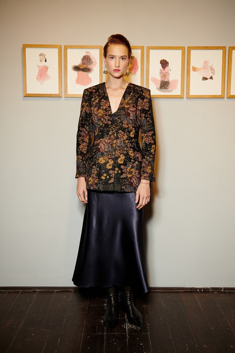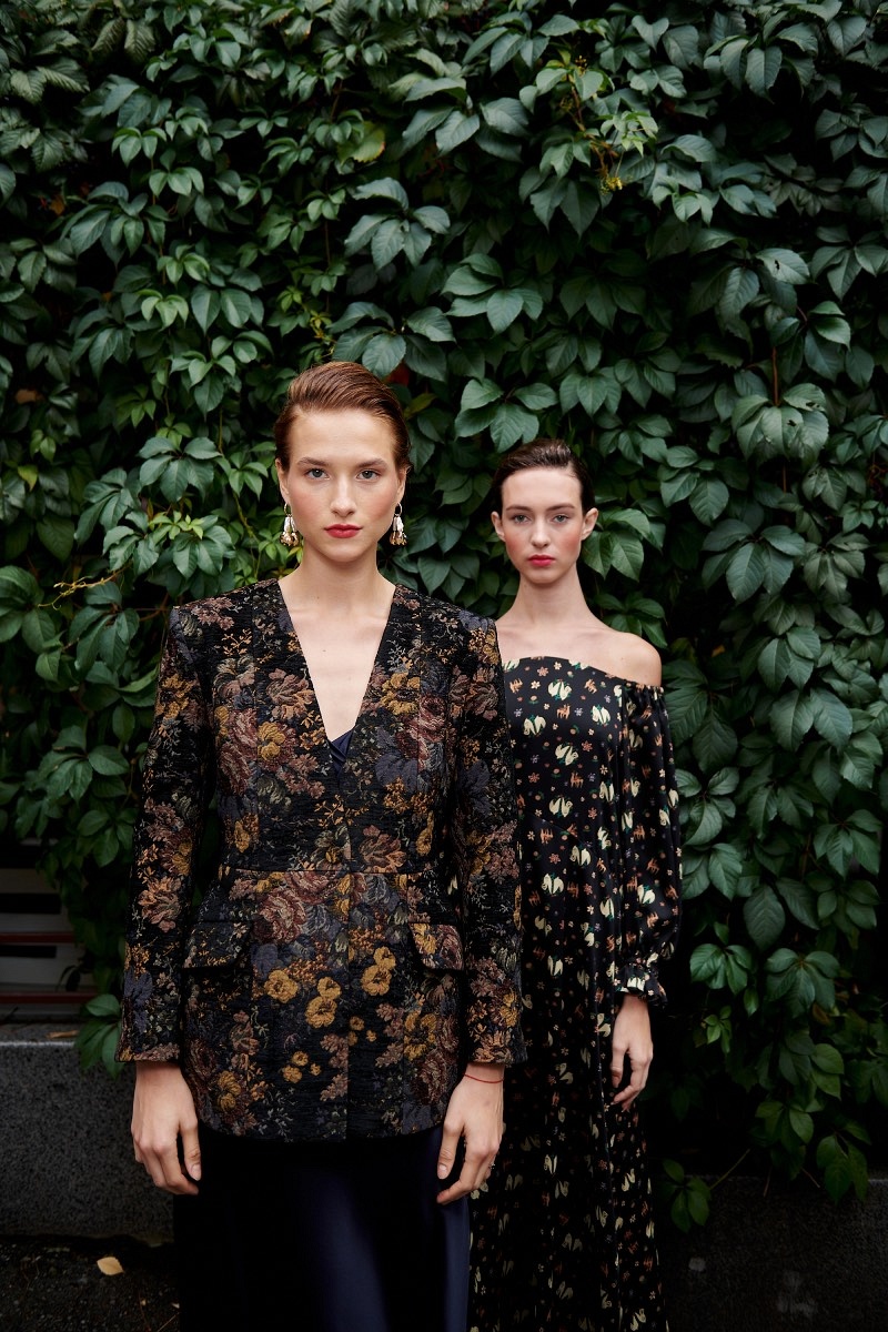Для работы над коллекцией The Roots Анастасия и Олеся вернулись к основам и изучали украинский колорит: особенности национального костюма и стиль украинского барокко, который активно развивался в 17 и 18 веке. Это направление отличается сдержанностью форм в сочетании с пышной отделкой — что отражено в коллекции, в которой строгие силуэты соседствуют с фактурными тканями.