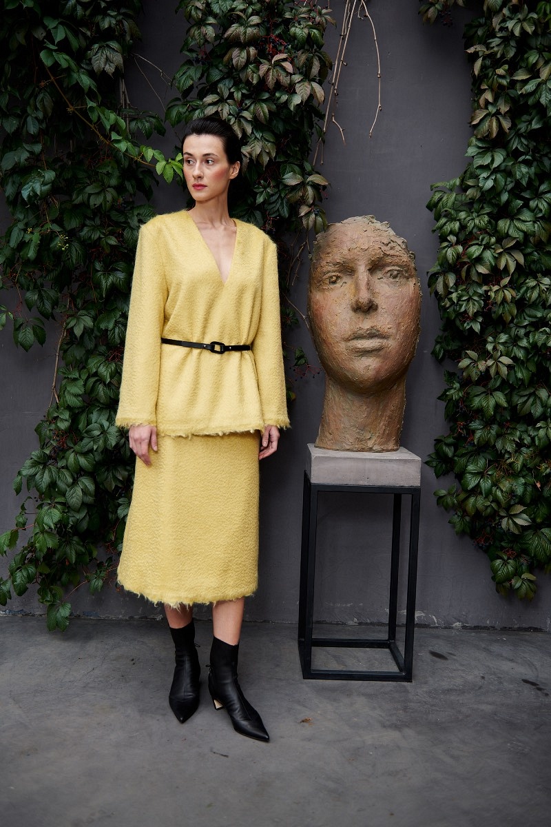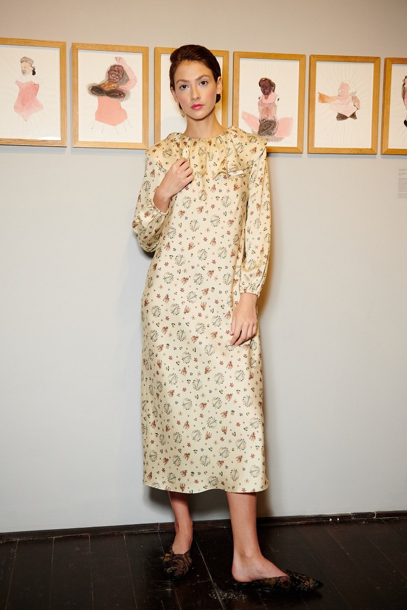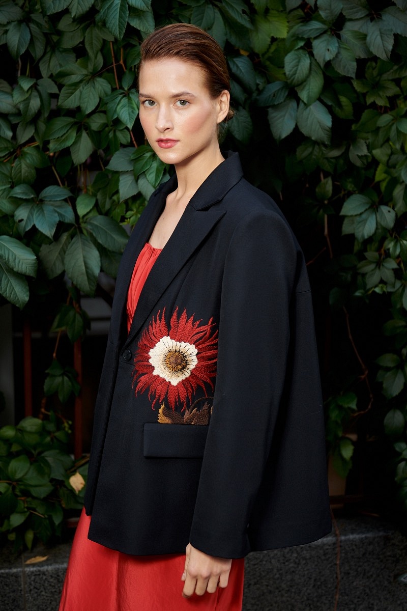 Силуэты — четкие, архитектурные и геометричные, подчеркнутые декором и тканями: например, вышивкой ришелье, которая украшает и шелковую, и шерстяную одежду. В качестве реверанса традиционному украинскому костюму в коллекции присутствуют корсетка, вышивка — например, цветов мака, шерстяные костюмы с юбками, сделанными по принципу плахты, и вариации на тему нижней длинной сорочки, которую надевали под основное платье.