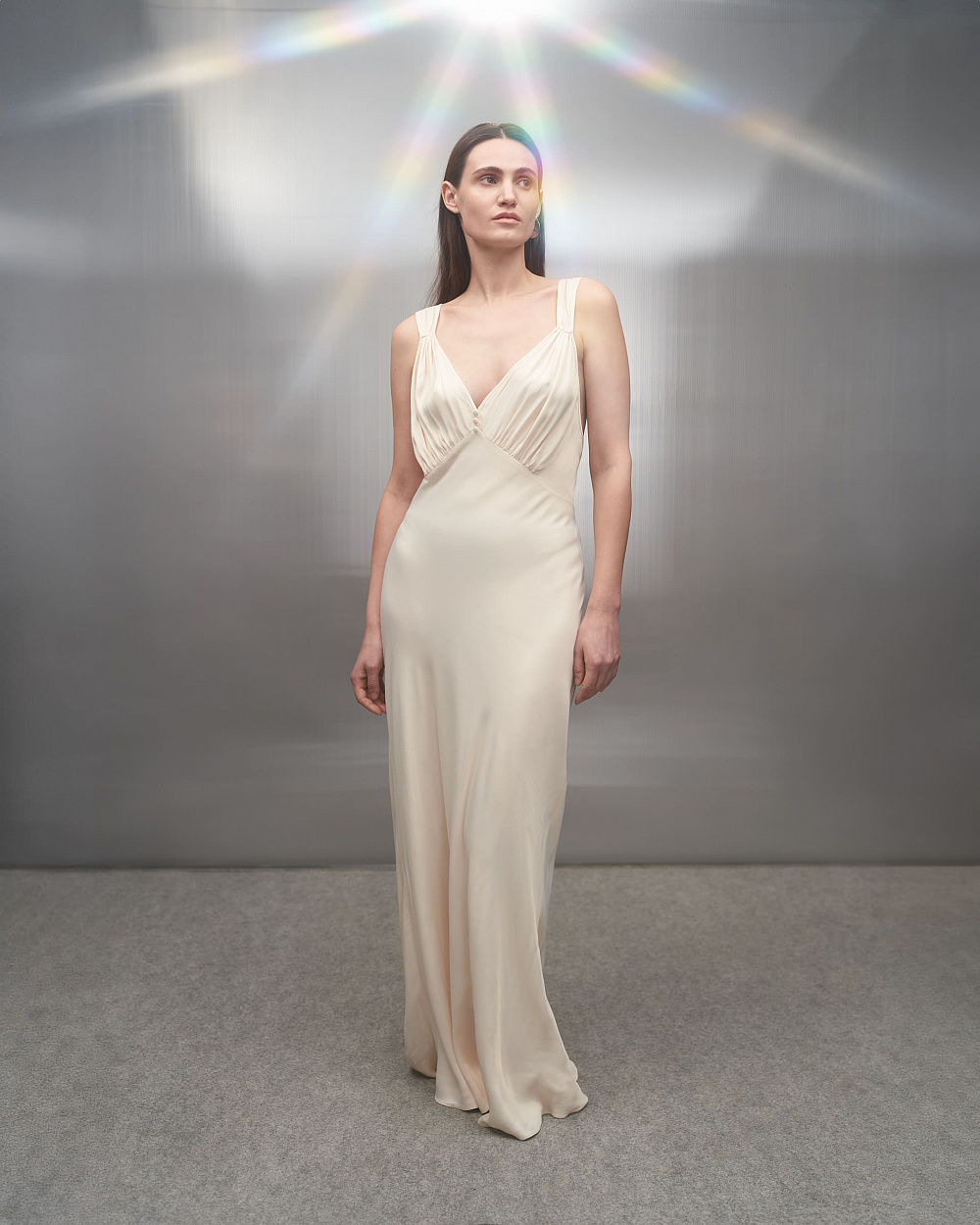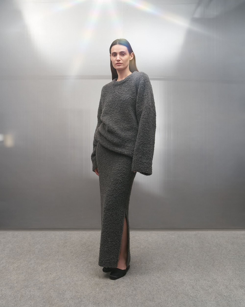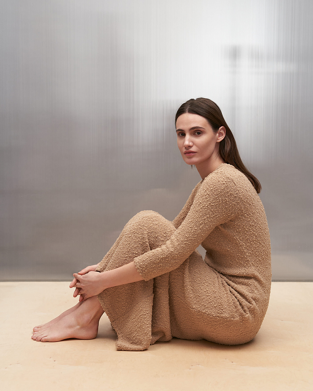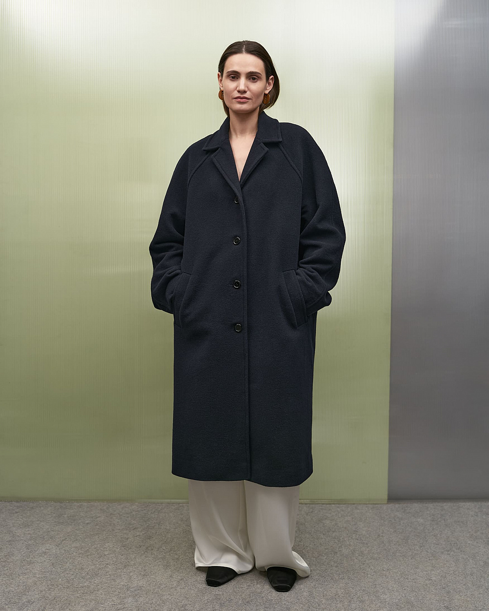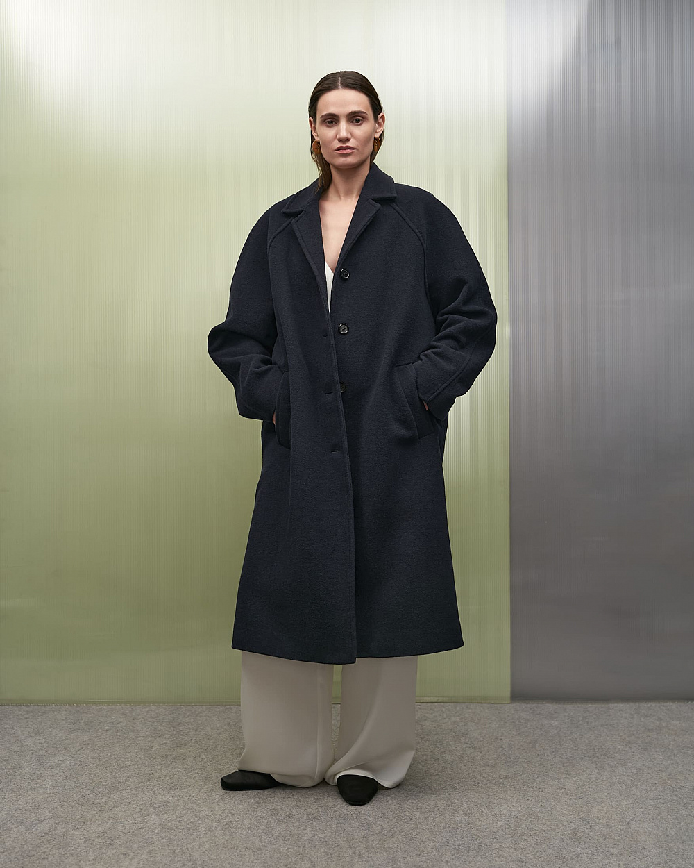 До колекції додали позачасові речі гардероба, що з легкістю комбінуються між собою: напівпрозорі лонгсліви, сорочки вільного крою, класичні брюки та атласні майки. Палітра одягу сповнена натуральних кольорів: від насиченого синього до лагідного бежевого. Дроп доповнило утеплене пальто з приємної на дотик тканини та взуття — сатинові сабо від українського бренду IKOS.