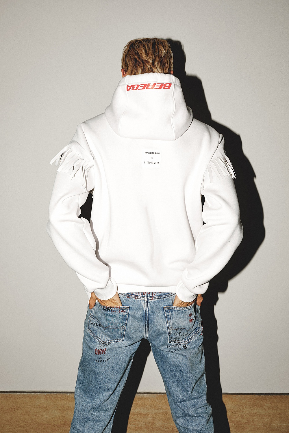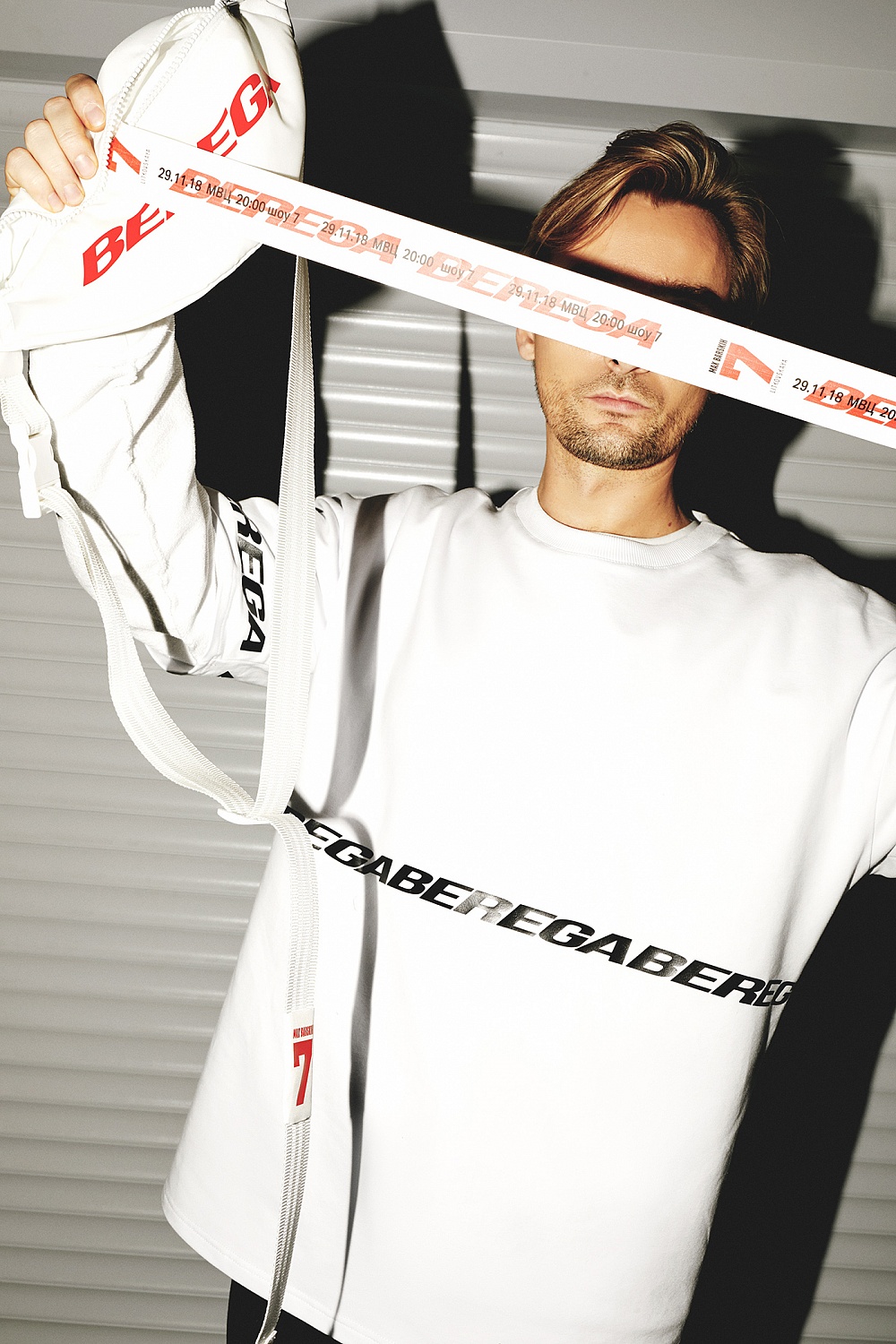 #Berega – это прецедент в мире отечественного шоу-бизнеса, когда музыкант и дизайнер объединяют силы для запуска совместной коллаборации. Коллекция включает в себя худи, два вида футболок, панамы и поясные сумки. Доминирующая цветовая палитра линии – белая и красная. #Berega полностью сосредоточены на 80-х, не копируя их, а растворяя в современном мире стиля.