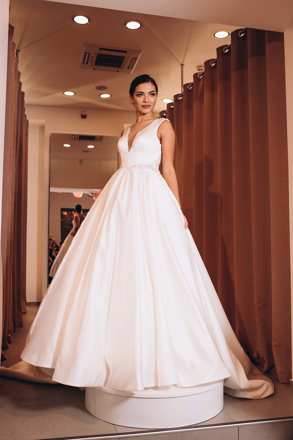 В салоне представлены 3 линии платьев от бренда Crystal Design, среди которых Crystal Design Haute Couture, Crystal Design Be Special и Crystal Design Evening.