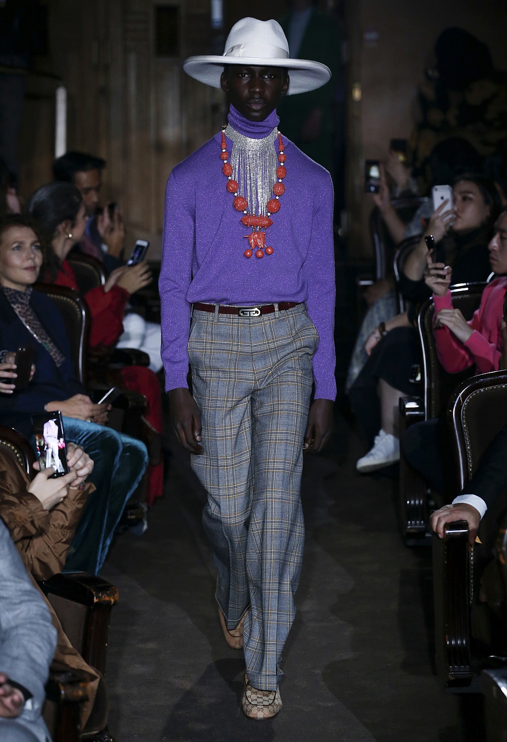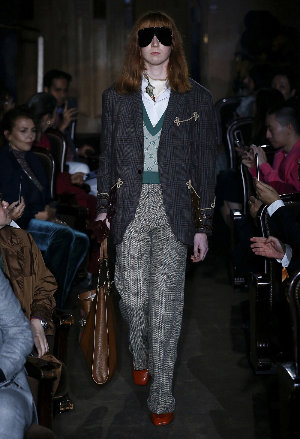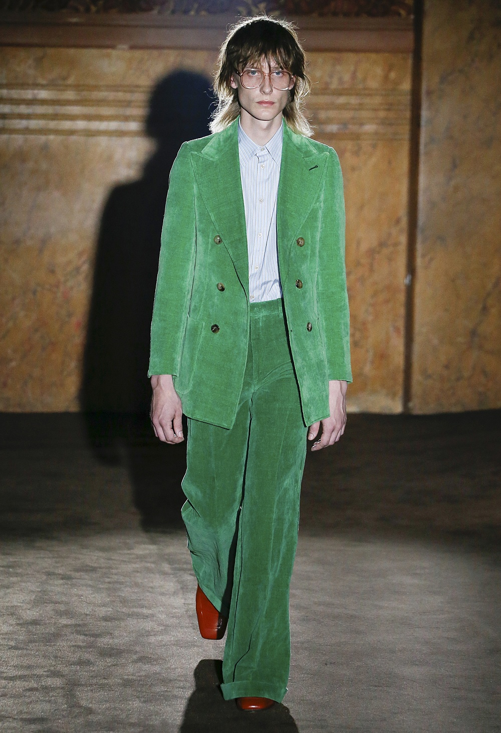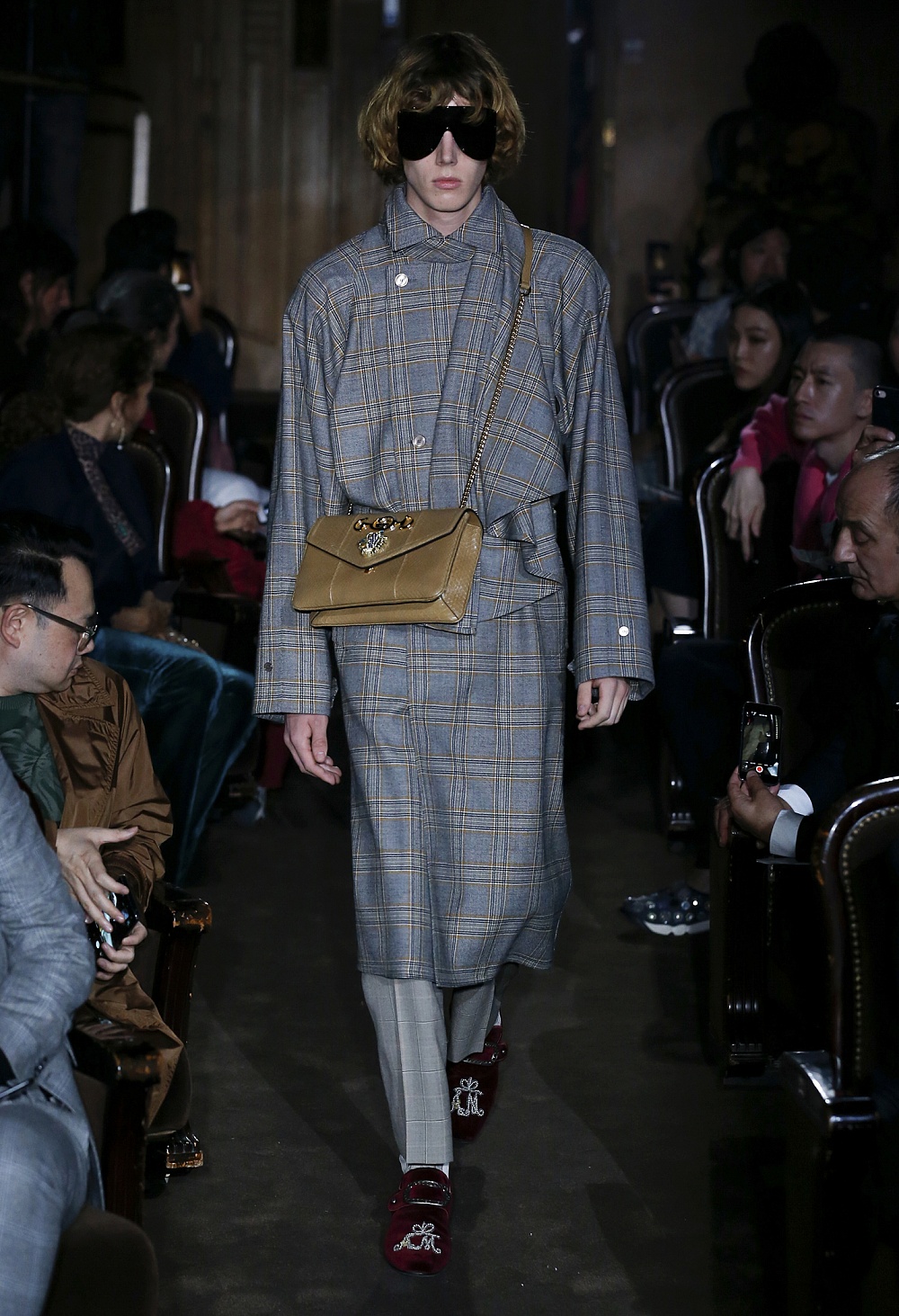 Но кажется, что не меньше французской – Микеле вдохновляет американская культура: модели выходили на подиум с сумками-микки-маусами, в куртках с изображением кантри-иконы Долли Партон и в фетровых шляпах, вдохновленных образом Дженис Джоплин. Как и всегда под руководством Алессандро Микеле, показ Gucci был экстра-эклектичным: здесь и гламурные платья в пол с перьями и камнями, и шубы из икусственного меха, как у рок-звезд, и водолазки из латекса, и узнаваемый лук Gucci nerd – стильных заучек, которые, сами не зная как, оказались в ночном клубе. Этим вечером в клубе выступала Джейн Биркин – легенда французского кинематографа и шансона, Джейн исполнила песню «Baby Alone in Babylone» в антракте. И это был прекрасный способ признаться в любви Франции и ее культурному наследию.