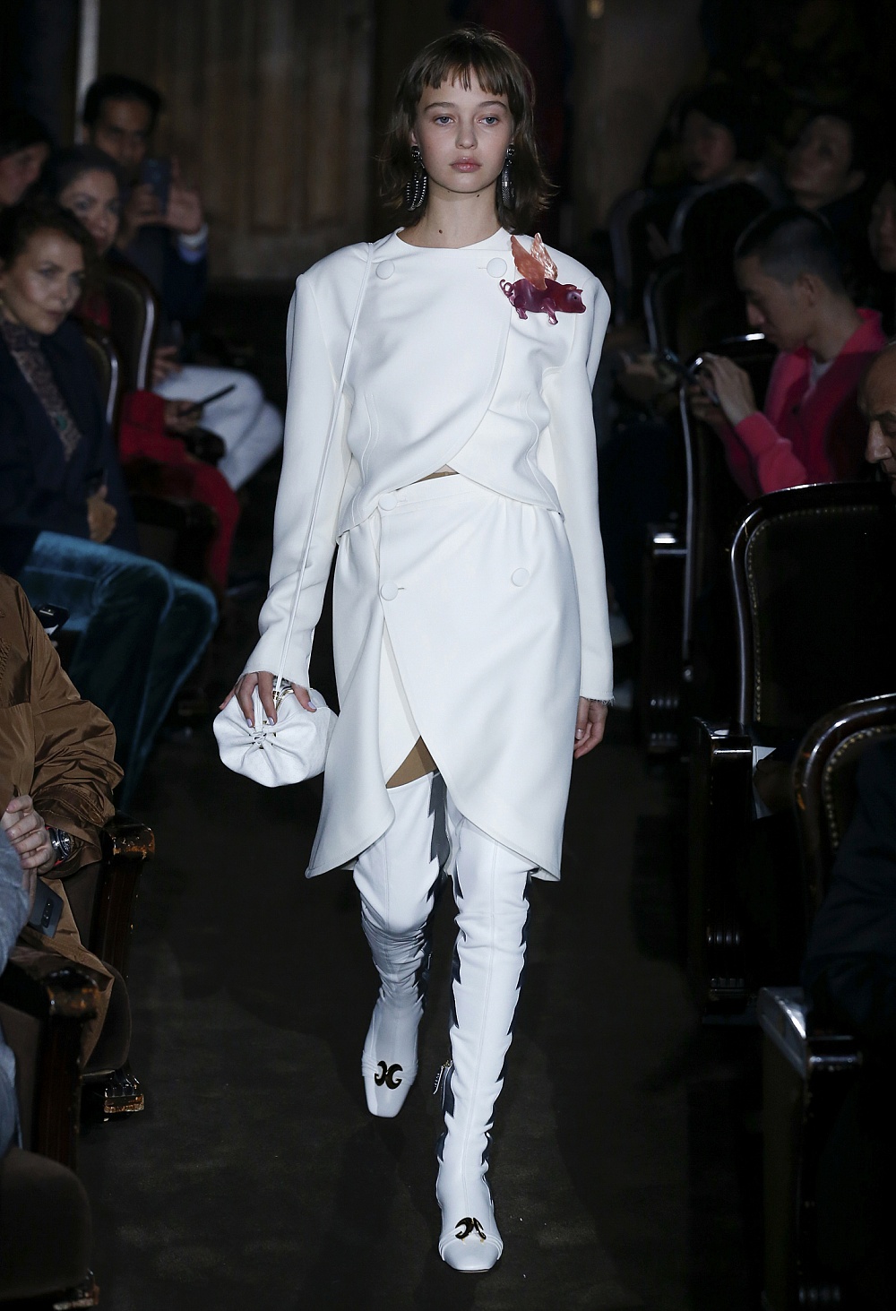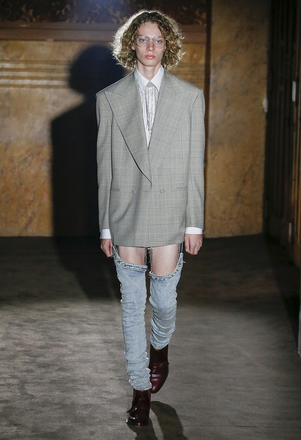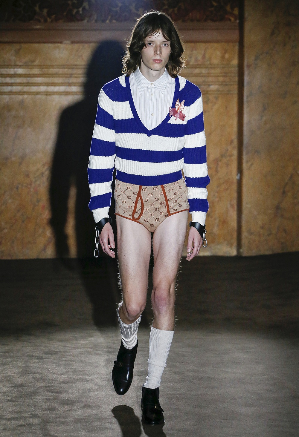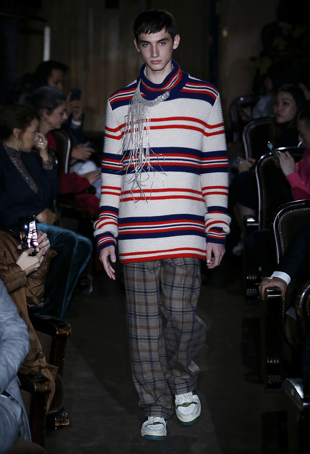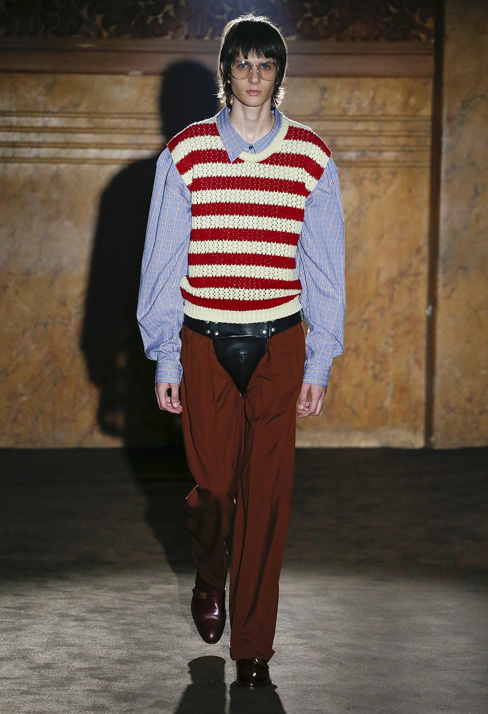 Но кажется, что не меньше французской – Микеле вдохновляет американская культура: модели выходили на подиум с сумками-микки-маусами, в куртках с изображением кантри-иконы Долли Партон и в фетровых шляпах, вдохновленных образом Дженис Джоплин. Как и всегда под руководством Алессандро Микеле, показ Gucci был экстра-эклектичным: здесь и гламурные платья в пол с перьями и камнями, и шубы из икусственного меха, как у рок-звезд, и водолазки из латекса, и узнаваемый лук Gucci nerd – стильных заучек, которые, сами не зная как, оказались в ночном клубе. Этим вечером в клубе выступала Джейн Биркин – легенда французского кинематографа и шансона, Джейн исполнила песню «Baby Alone in Babylone» в антракте. И это был прекрасный способ признаться в любви Франции и ее культурному наследию.