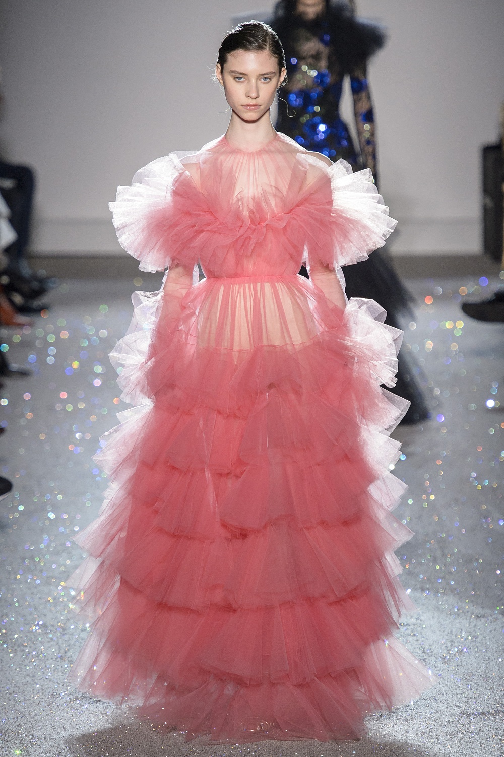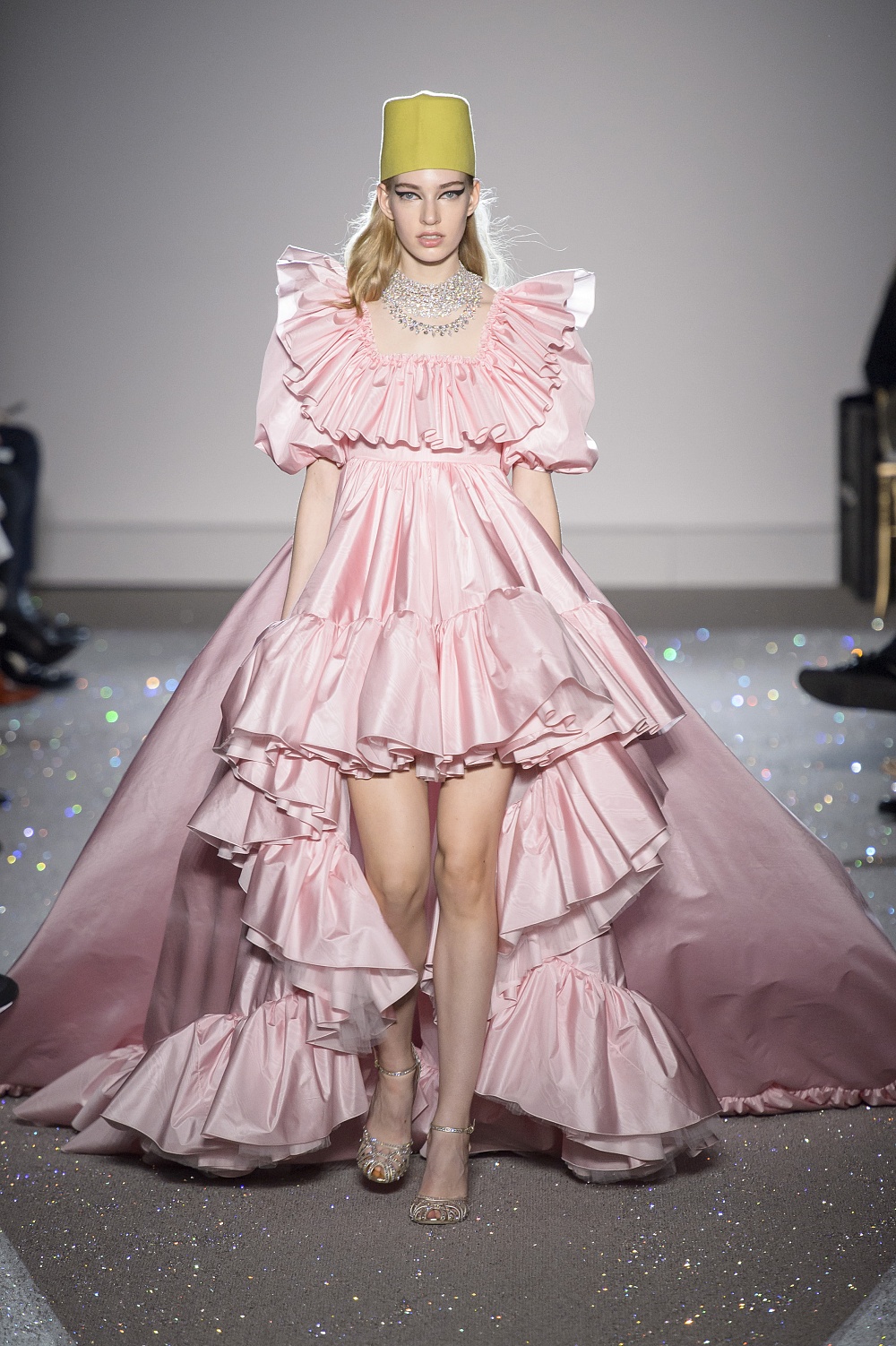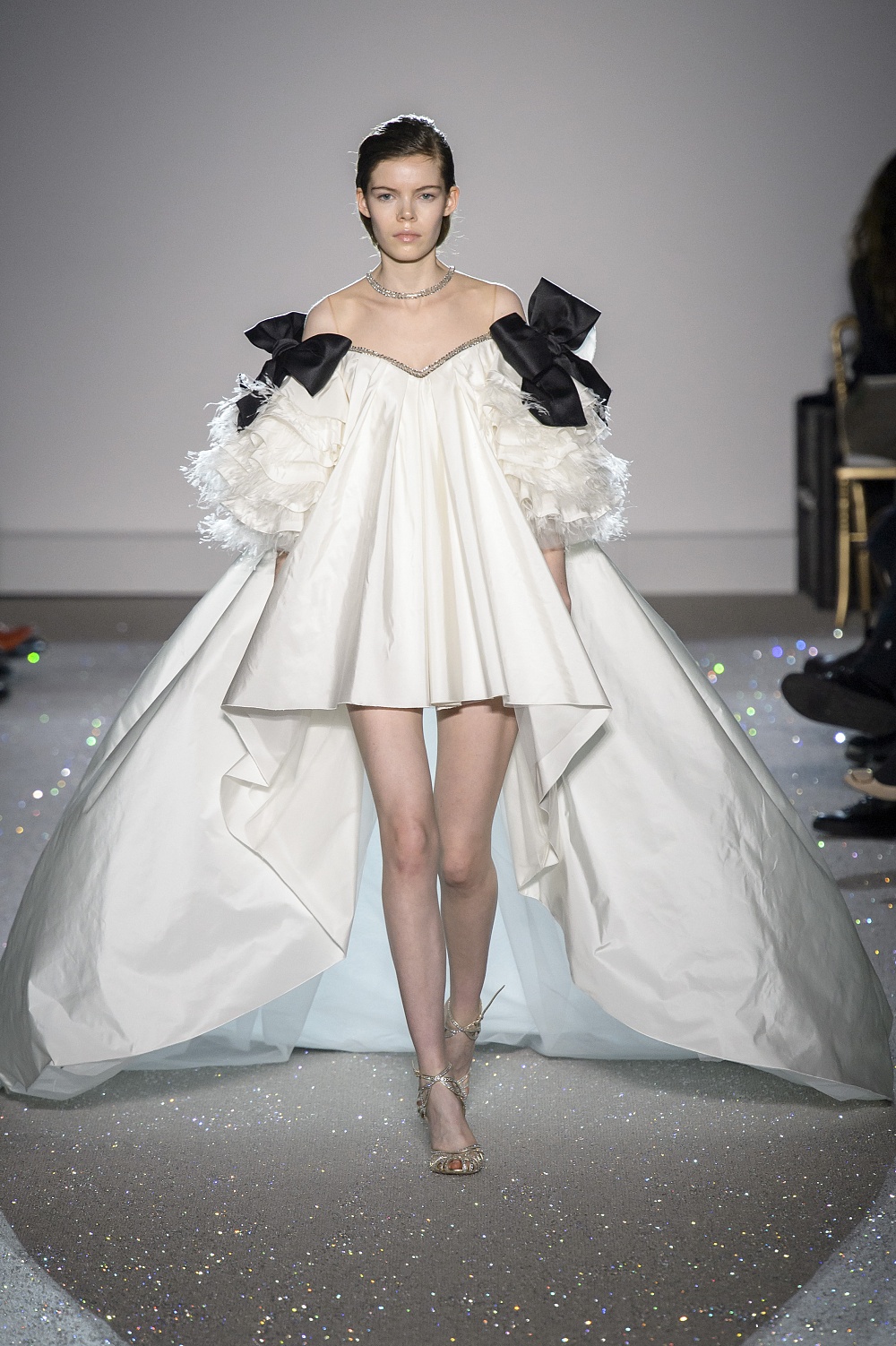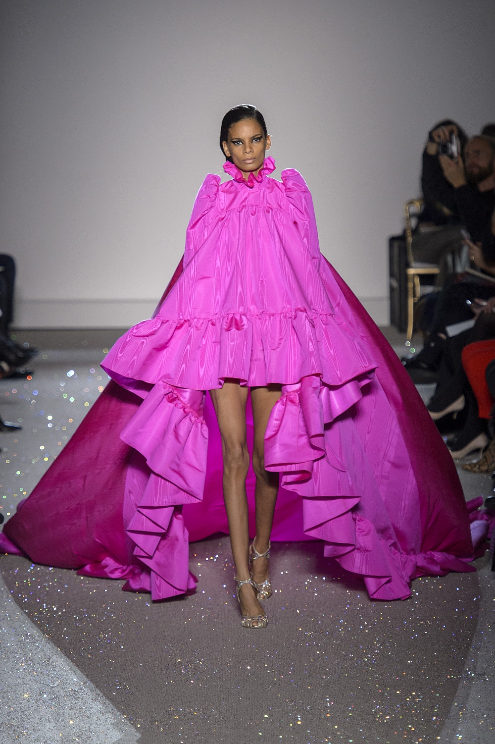 Показ стал концентрацией шика, который Валли впитывал в себя на протяжении 14-ти лет, создавая коллекцию за коллекцией. У дизайнера особенная страсть к нереалистичным формам и объемам, которые выглядят грациозно и легко. В своих творениях он нашел баланс между утонченностью, современностью и шиком. Чувственные платья сменяются более дерзкими. Короткие модели в обтяжку всегда дополнены объемом в виде крупных бантов, пышных юбок, мантий с рюшами и кейпов с широкими рукавами. Другие же платья поражали количеством слоев, нежностью цветов и тем, насколько воздушен этот ансамбль. В коллекции Валли играл в противоположность, чередуя аккуратные, компактные, очерченные силуэты с многоуровневыми плиссированными платьями из тюля и шелковыми мантиями с длинными асимметричными шлейфами.
