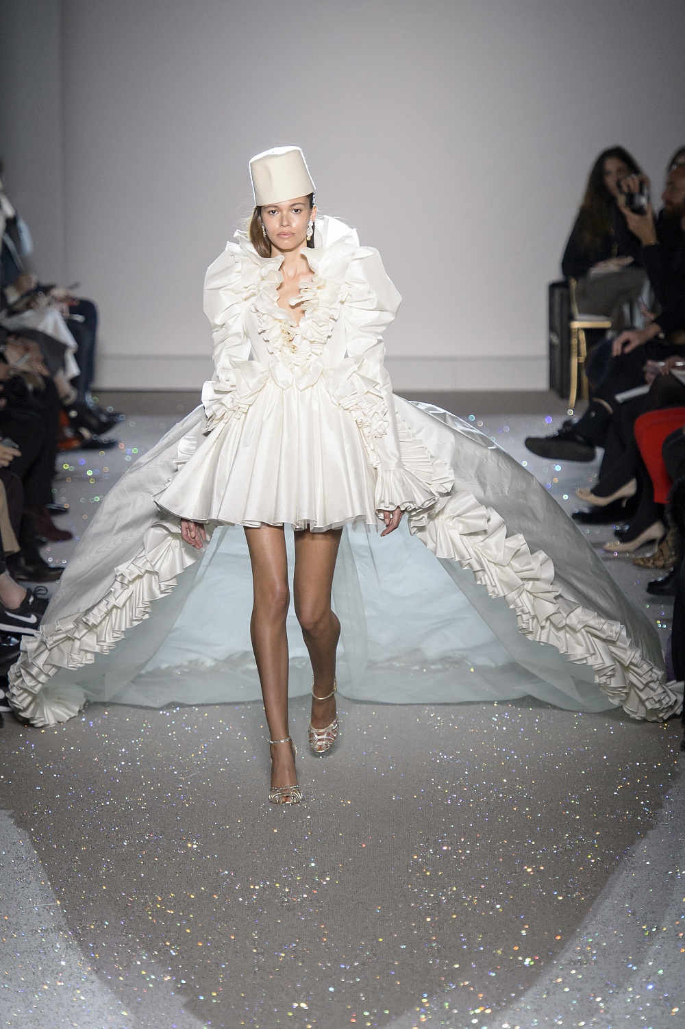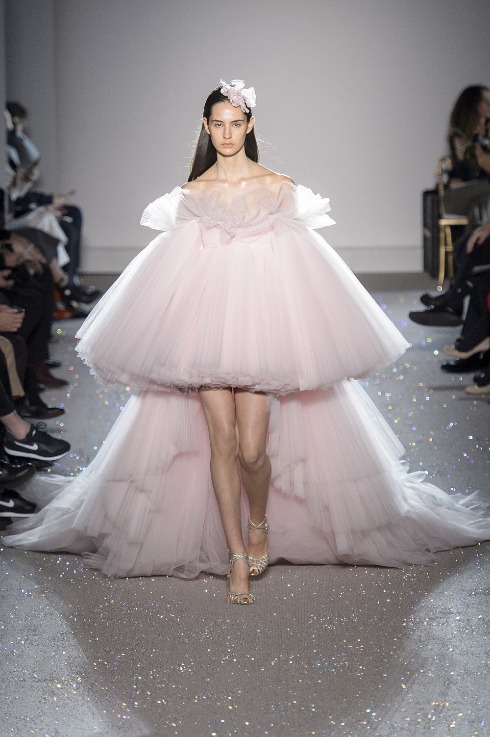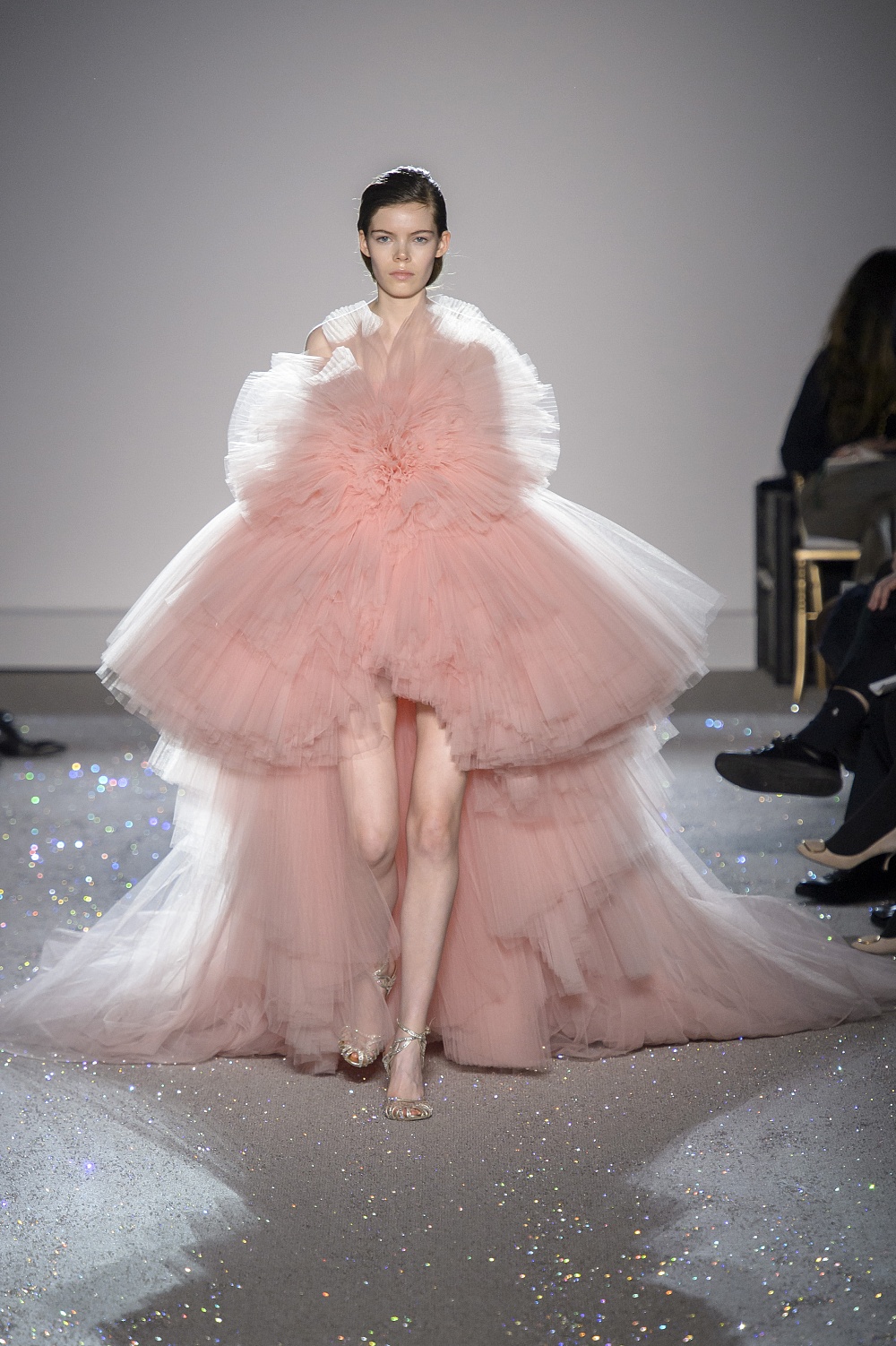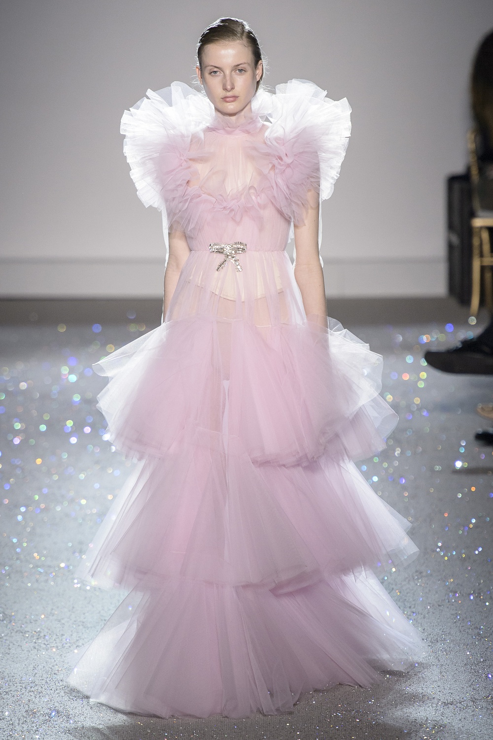 Показ стал концентрацией шика, который Валли впитывал в себя на протяжении 14-ти лет, создавая коллекцию за коллекцией. У дизайнера особенная страсть к нереалистичным формам и объемам, которые выглядят грациозно и легко. В своих творениях он нашел баланс между утонченностью, современностью и шиком. Чувственные платья сменяются более дерзкими. Короткие модели в обтяжку всегда дополнены объемом в виде крупных бантов, пышных юбок, мантий с рюшами и кейпов с широкими рукавами. Другие же платья поражали количеством слоев, нежностью цветов и тем, насколько воздушен этот ансамбль. В коллекции Валли играл в противоположность, чередуя аккуратные, компактные, очерченные силуэты с многоуровневыми плиссированными платьями из тюля и шелковыми мантиями с длинными асимметричными шлейфами.