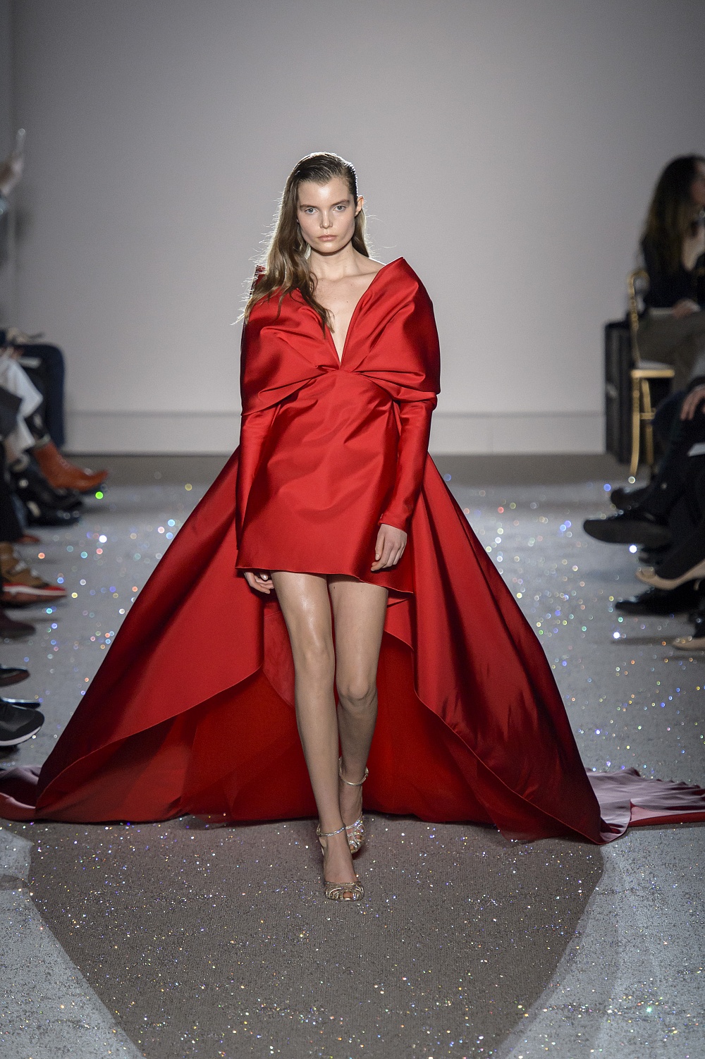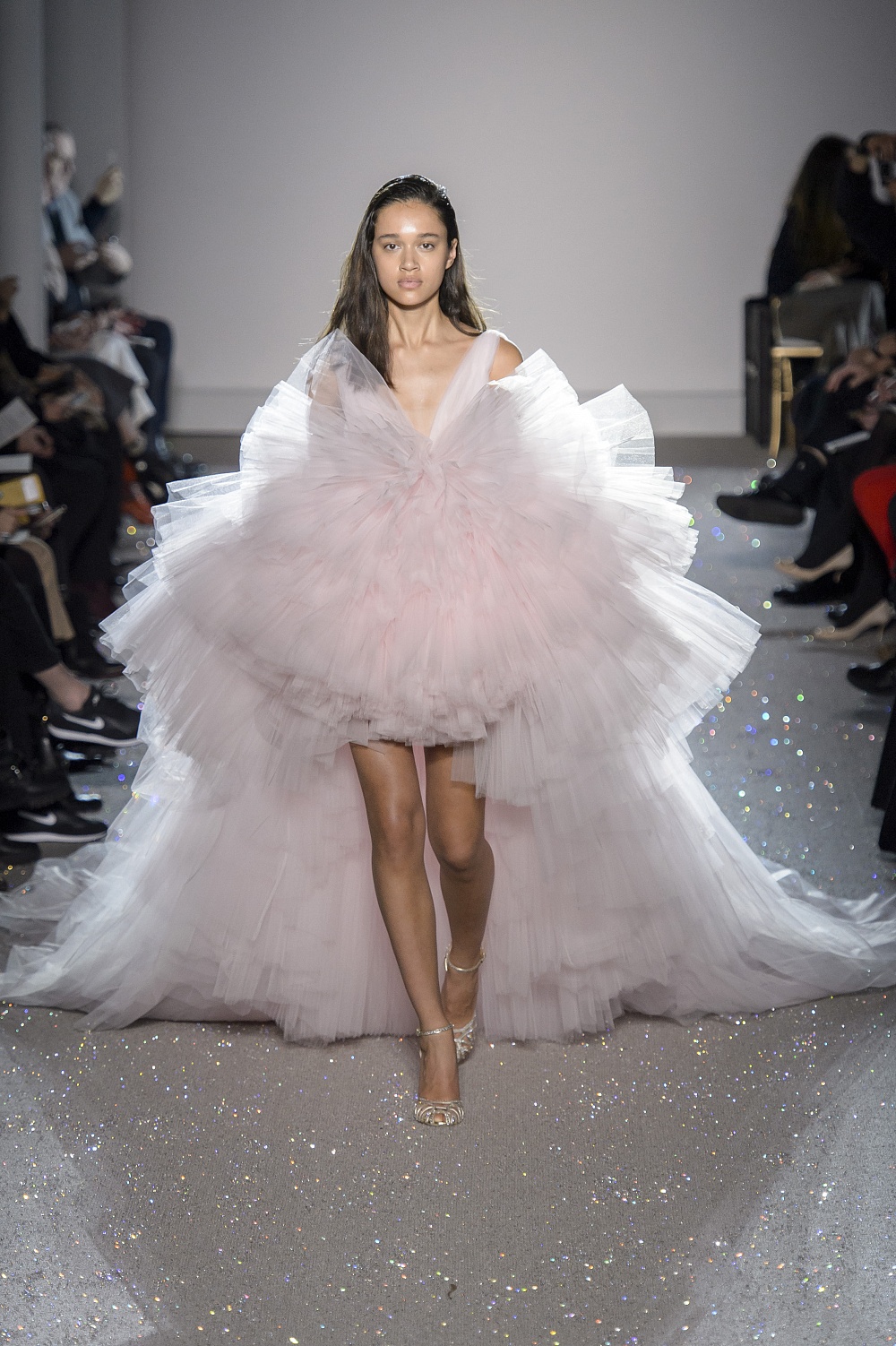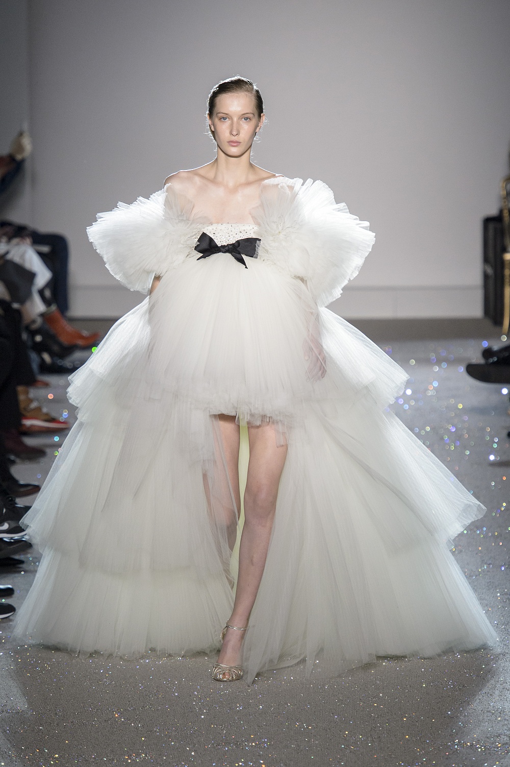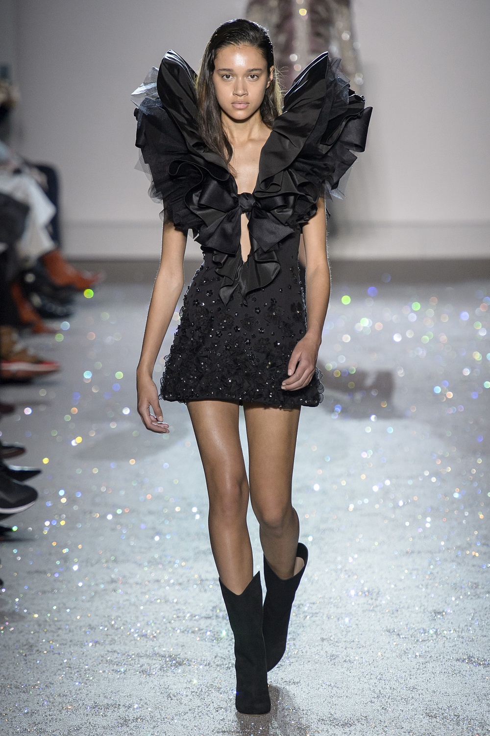 Показ стал концентрацией шика, который Валли впитывал в себя на протяжении 14-ти лет, создавая коллекцию за коллекцией. У дизайнера особенная страсть к нереалистичным формам и объемам, которые выглядят грациозно и легко. В своих творениях он нашел баланс между утонченностью, современностью и шиком. Чувственные платья сменяются более дерзкими. Короткие модели в обтяжку всегда дополнены объемом в виде крупных бантов, пышных юбок, мантий с рюшами и кейпов с широкими рукавами. Другие же платья поражали количеством слоев, нежностью цветов и тем, насколько воздушен этот ансамбль. В коллекции Валли играл в противоположность, чередуя аккуратные, компактные, очерченные силуэты с многоуровневыми плиссированными платьями из тюля и шелковыми мантиями с длинными асимметричными шлейфами.
