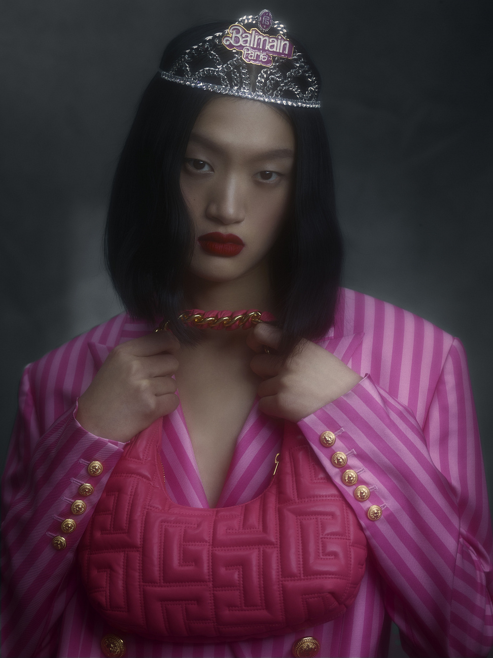 Життєрадісна, інклюзивна та гендерно-нейтральна колекція, створена в колаборації з Mattel, витримана у відтінках рожевого та просякнута посиланнями до поп-культури. До неї увійшло 50 знакових моделей одягу та аксесуарів Balmain, переосмислених Олів`є Рустеном через призму естетики найвідомішої у світі ляльки Barbie. Креативний директор марки створив кілька різних варіацій культових силуетів та образів, що повторюють аутфіти із колекцій бренду. Звичайно, основним кольором убрань став рожевий.