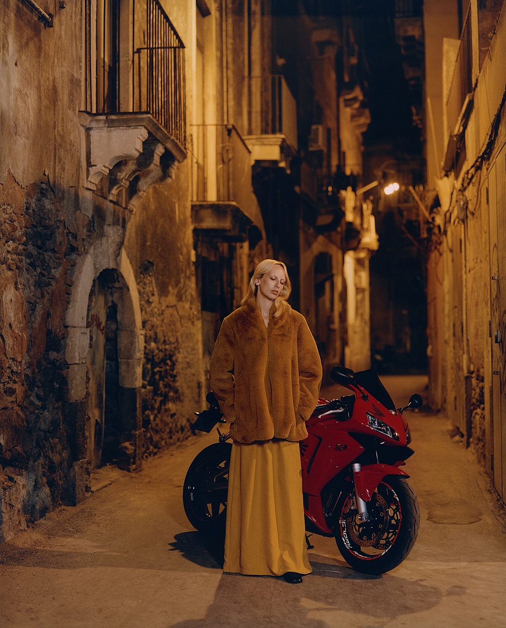 Героиня лукбука новой коллекции Re.Design, новозеландская супермодель Лили Самнер, гуляет по ночным улицам тосканского городка в поисках веселья, то и дело заглядывая в бары и кинотеатры, напоминая нам геров итальянских фильмов 50-х годов.