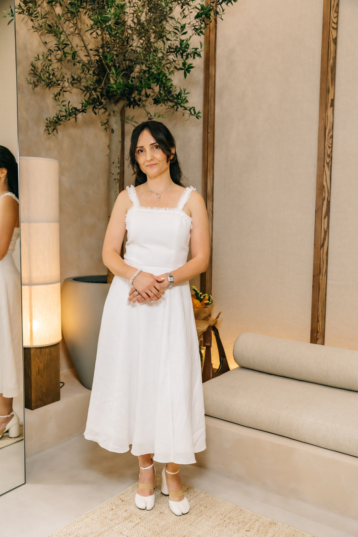 MORANDI — це бренд, що поєднує в собі натуральні тканини, вільні та лаконічні фасони і природні кольори. Саме тому палітра дизайну та інтер’єру нового шоуруму включає бежеві, сірі та коричневі відтінки. Багато елементів виконано з натурального дерева та масивного каменю, що ще більше підкреслює природність та натуральність, які пропагує бренд. Естетику простору доповнюють акцентні деталі: великі зелені рослини, об’ємні меблі та фактурні предмети декору.