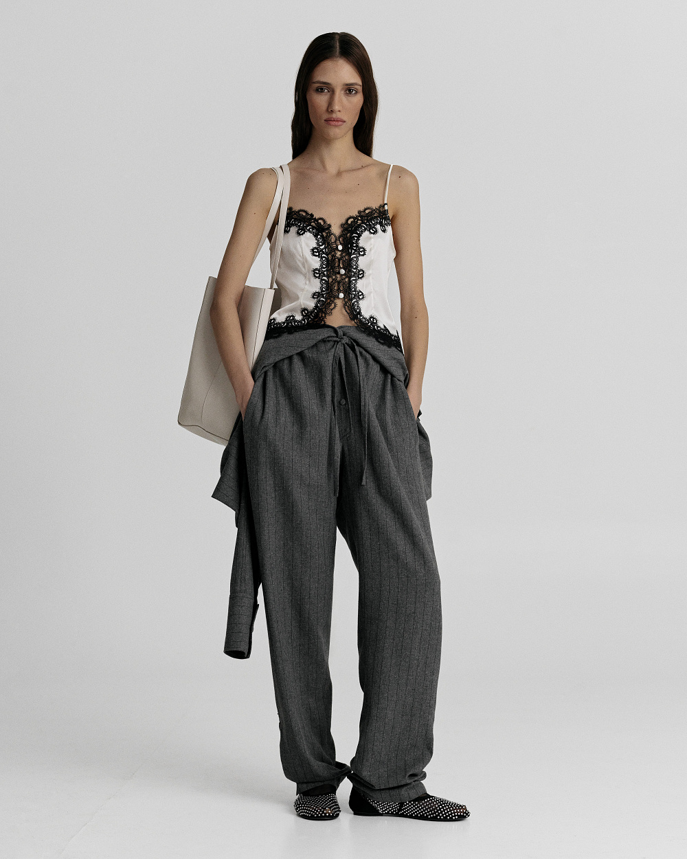 Колекція одягу була представлена драпірованими сукнями та спідницями з оборками. Особливим акцентом стали речі з вовняної фланелі у сірому та бежевому відтінках. З цього матеріалу пошиті сорочки, брюки, комбінезони, спідниці й плащі.
