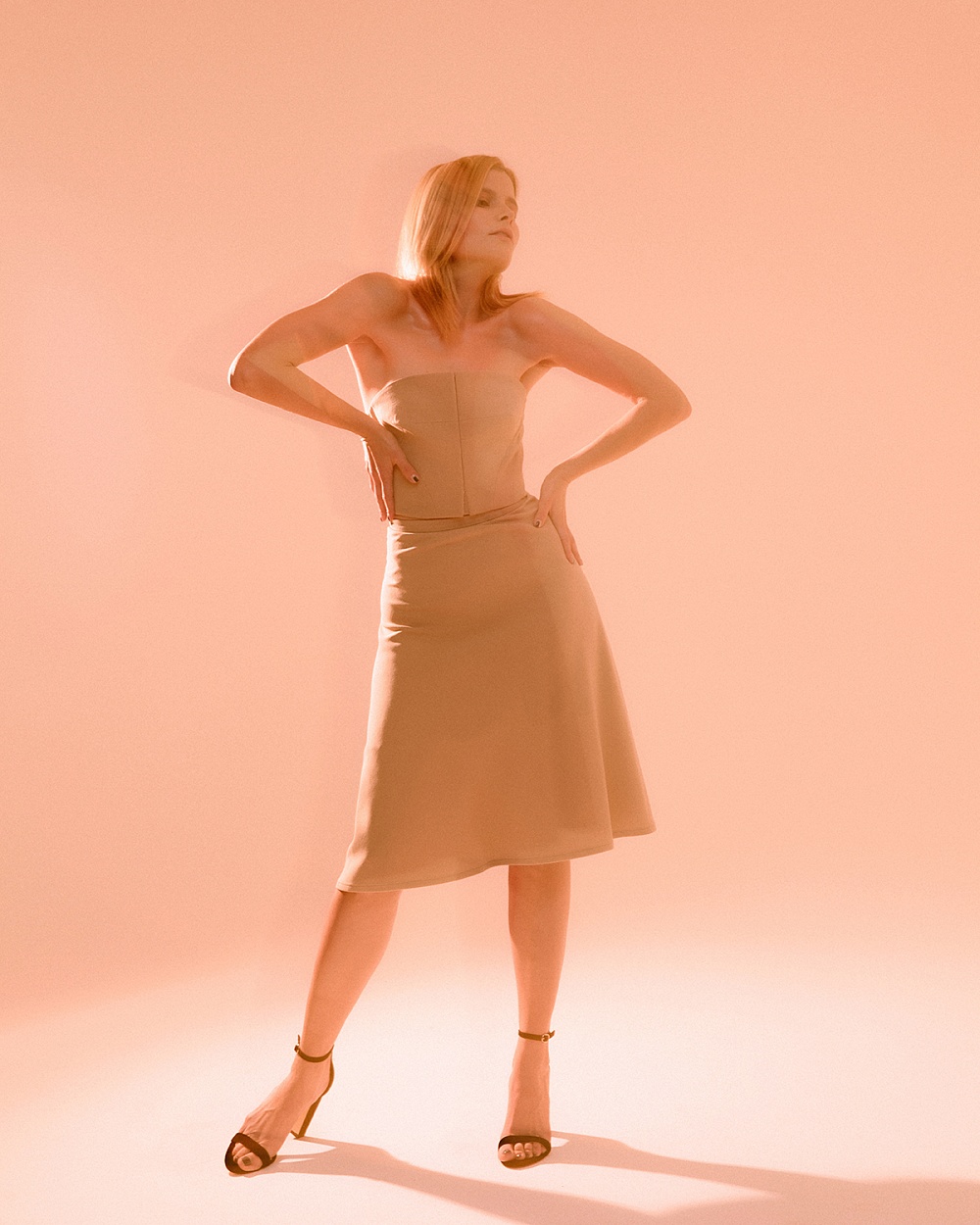 Амбассадором кампейна стала ведущая, диджей, селектор — Даша Коломиец. Она идеально транслирует и настроение коллекции, и ту девушку, для которой создавались образы — женственную, легкую, открытую ко всему новому и всегда готовую променять домашний кинопросмотр на вечерний выход.