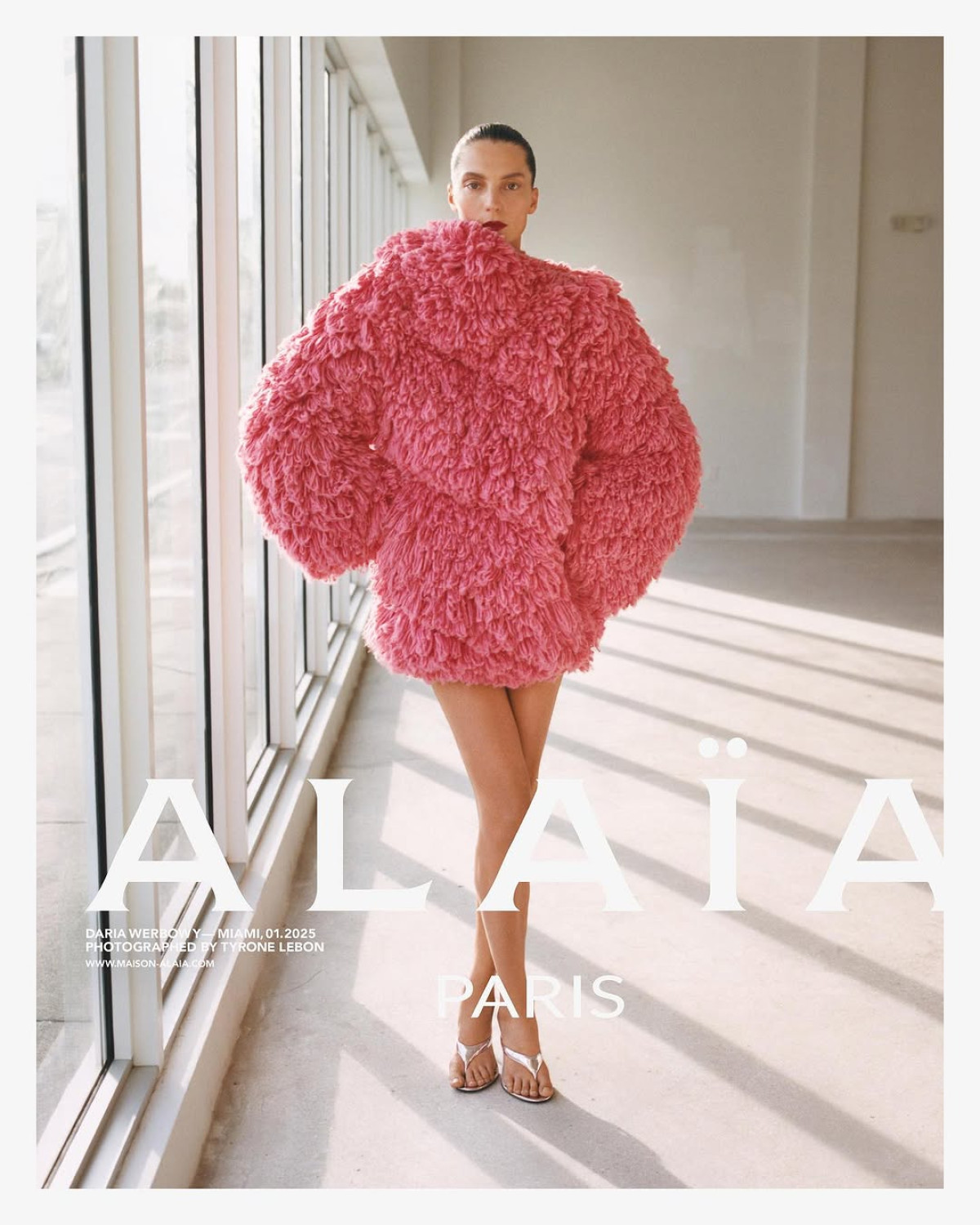 Канадська супермодель українського походження Дарія Вербова стала героїнею нового кампейну Alaïa. Знятий Тайроном Лебоном, він передає фірмову пластику бренду: скульптурні лінії, чіткість силуетів і водночас чуттєву природність. Вербова позує без зайвих декорацій і драматичних ефектів, демонструючи силу образів через чисту форму.