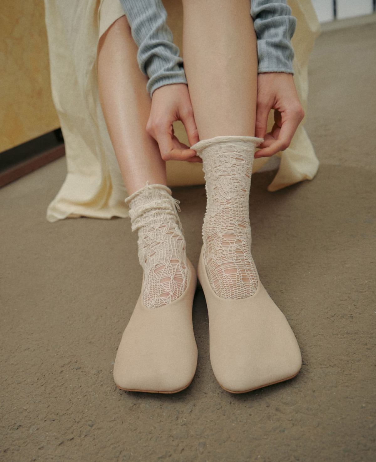Центральною парою колекції Beauty In Chaos стали Chaotic ballerinas — балетки, що в’яжуться вручну тонким гачком понад 14 годин. Через специфічність малюнку та відсутності «правил» кожна пара унікальна у своєму виконанні, та їй немає ідентичних. До колекції також увійшли Grandpa sandals та Rhino mules, які продовжують унісекс-лінійку бренду.