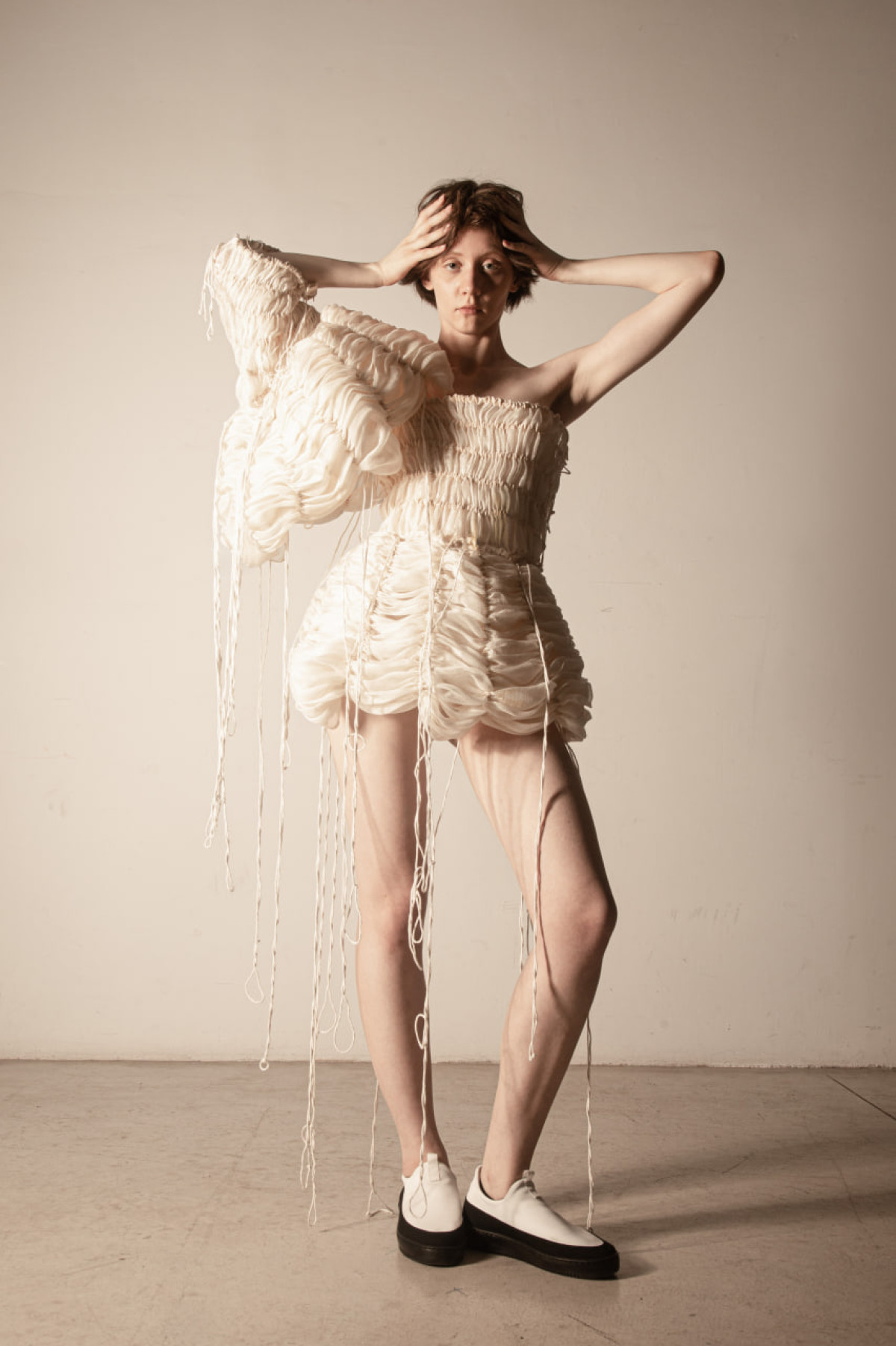 Нова весняно-літня колекція бренду є глибоко символічною, адже в алегоричний спосіб рефлексує над еволюцією особистості. Цього разу DZHUS спекулює щодо впізнаваних видів прикрас та аксесуарів, наділивши їх у власній інтерпретації здатністю перетворюватися на одяг. Елементи класичного дрес-коду кардинально деконструйовано, а знаковий інноваційний крій DZHUS забезпечує перехід з однієї категорії гардероба до іншої. До прикладу, сукня з балаклавою, що відстібається, імітує манекен-бюст для демонстрації прикрас, який височіє на задрапірованому п’єдесталі; сумку-шопер «зібрано» з деталей блейзеру; вечірня сукня повторює силует краватки; бюстгальтер сформовано з двох кепок; а весільний вінець виявляється рукавичками зі щільно переплетеними на маківці пальцями.