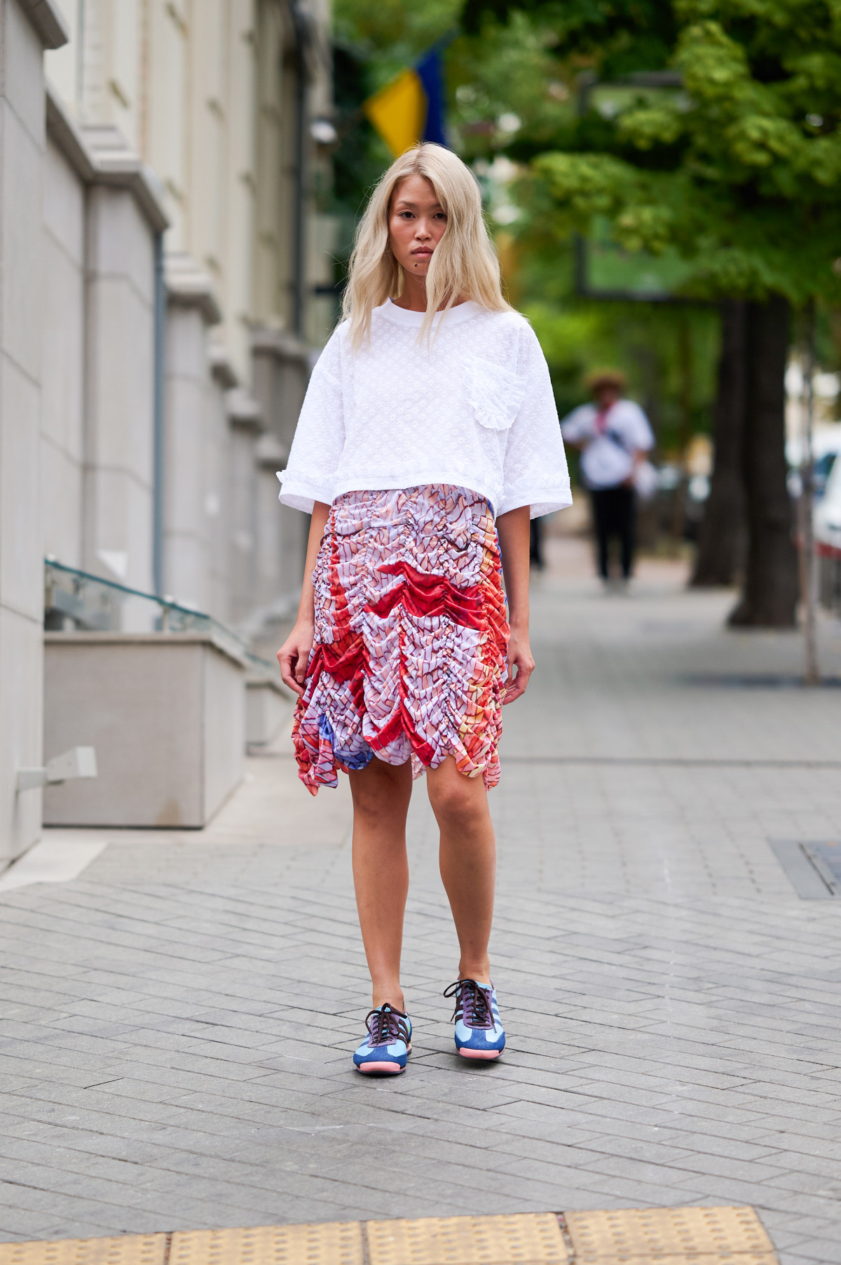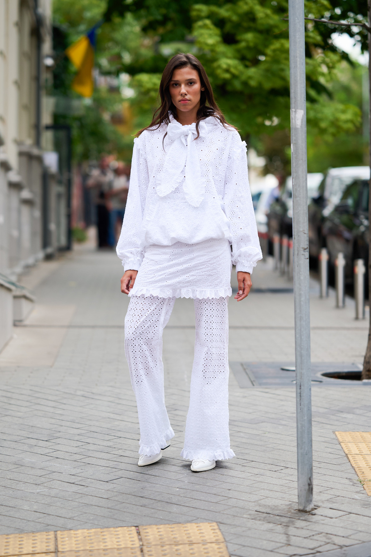 Перший день Ukrainian Fashion Week SS’25 запам’ятається видовищним показом KSENIASCHNAIDER, який пройшов буквально посеред вулиці Києва — поруч із Sophia Hotel та Café Marco. Замість звичного музичного супроводу було чути звуки транспорту й гамір перехожих, які, поспішаючи у своїх справах, зупинялися бодай на кілька секунд, щоб оцінити незвичне для буднього Києва дійство.