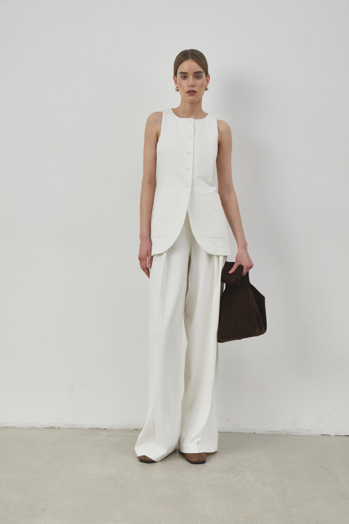 У новій колекції бренд робить акцент на позачасових мінімалістичних силуетах у стилі 90-х та універсальній палітрі, дбаючи про комфорт. Щоб зустріти прихід весни стильно і зручно водночас, засновниця та дизайнерка CICI COCO Діана Червінська додала до колекції найнеобхідніші речі сезону: брючні костюми зі спідницями плісе, подовжені жилети, приталені футболки, костюми із шкірзаму та вовняні джемпери на прохолодні вечори. Вперше за час існування бренду в новій колекції зʼявляється трикотаж — джемпер в класичному сірому та червоному кольорах, що стане основою гардеробу на щодень та поєднується з усіма низами представленими у колекції. Цього разу бренд розширив лінійку брючних костюмів і додав нові позиції, які стануть незамінною весняною базою: довгі спідниці плісе та жакети без лацканів з драпіруванням на талії.