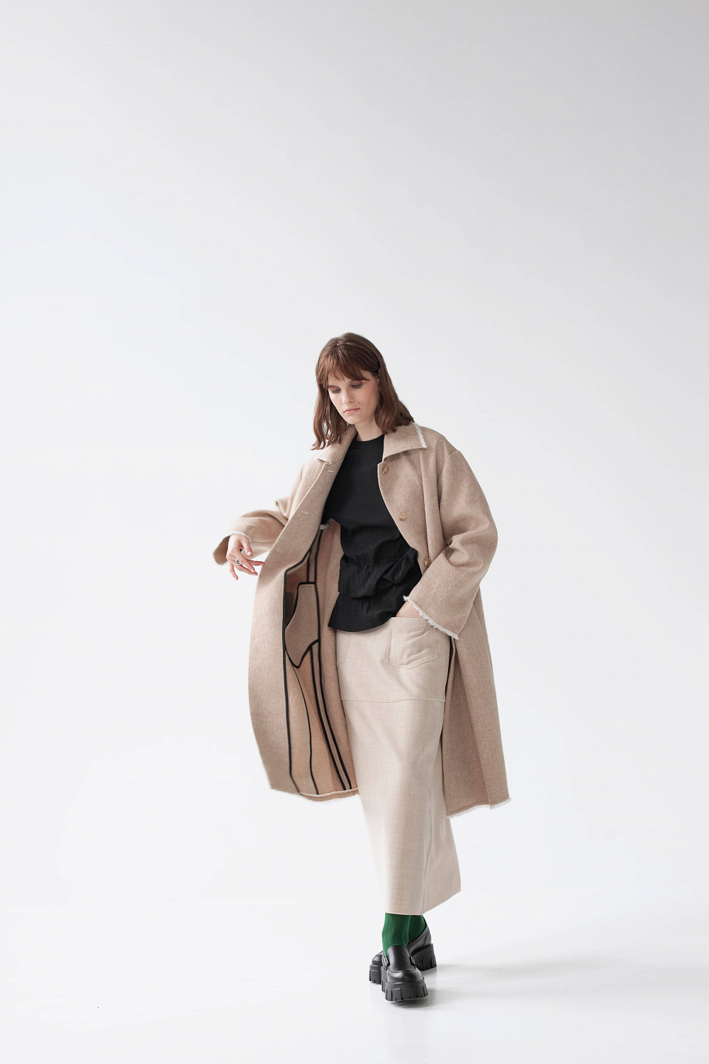 В украинском бренде PRZHONSKAYA также поддерживают принципы сознательного потребления. Марка не гонится за трендами и выпускает две коллекции в год, работает с проверенными фабриками, которые заботятся об экологичности производства, использует высокотехнологичные и износостойкие материалы, чтобы вещи служили дольше, отдает предпочтение более универсальному, классическому крою, а также шьет двухстороннюю одежду.