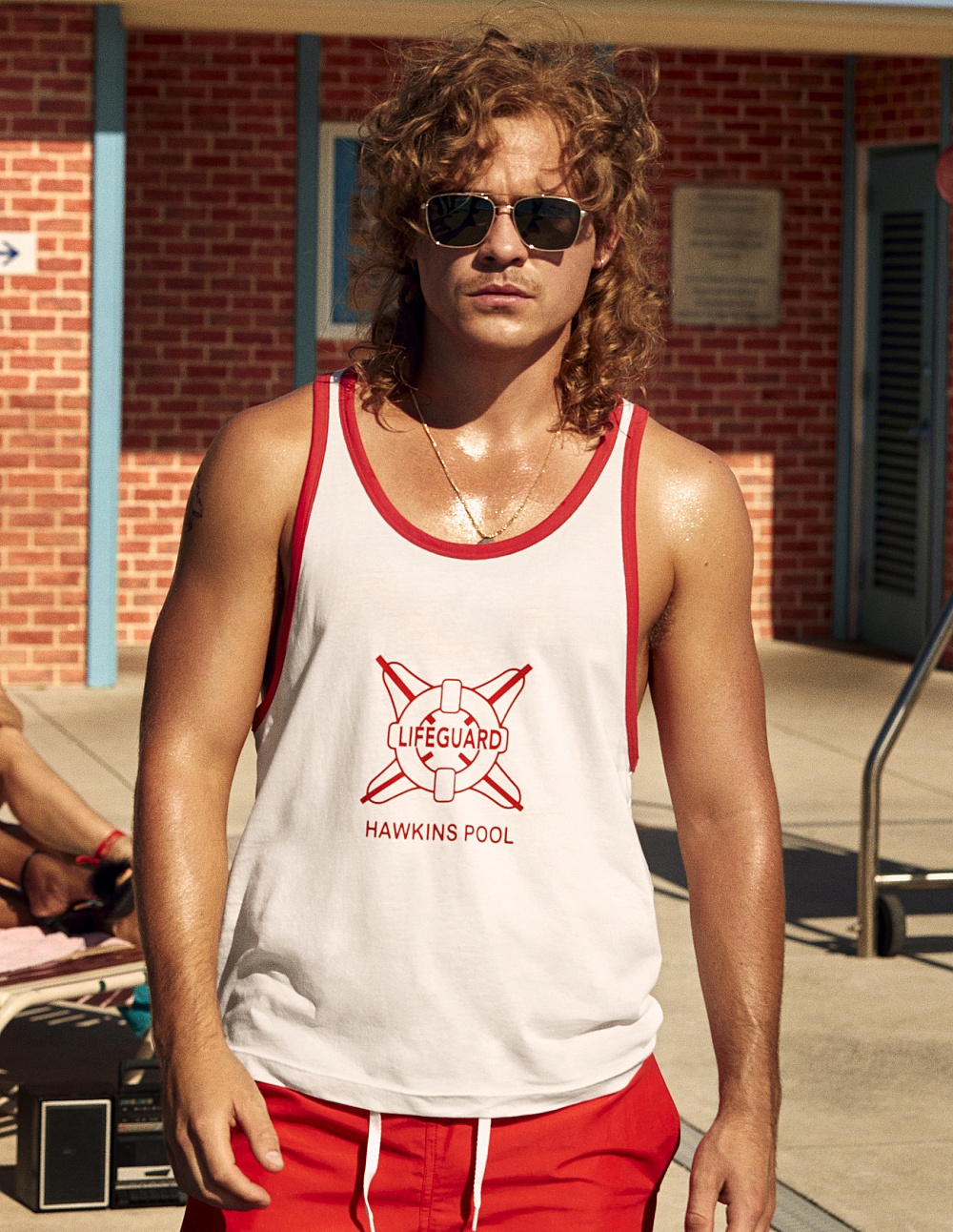 Принтованные футболки, спортивные майки, яркие шорты, купальники и аксессуары для бассейна выполнены в стиле 1980-х (в это время разворачиваются действия сериала). Силуэты в стиле ретро представлены в цветовой палитре «Очень странных дел»: черный, красный и белый, а также фуксия и бирюза для женских моделей. Помимо цветовой гаммы, объединяющим элементом является логотип Stranger Things, который размещен на различных предметах одежды и аксессуарах.