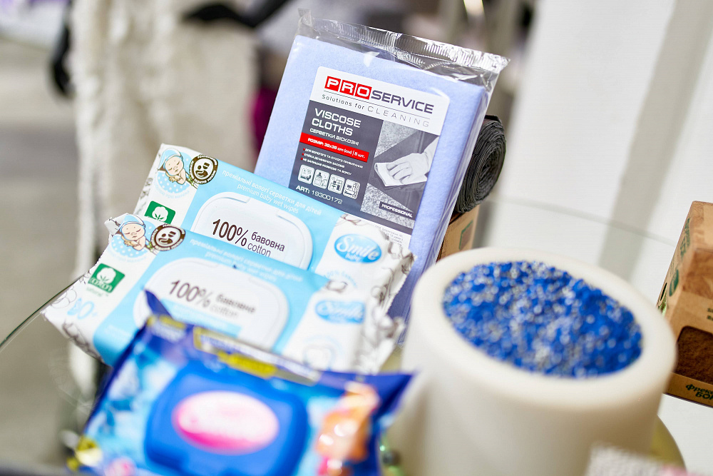 Кстати, все визажисты бекстейджа работали с продукцией корпорации «Биосфера»: ватные палочки с картонным стиком, ватные диски, а также влажные салфетки.