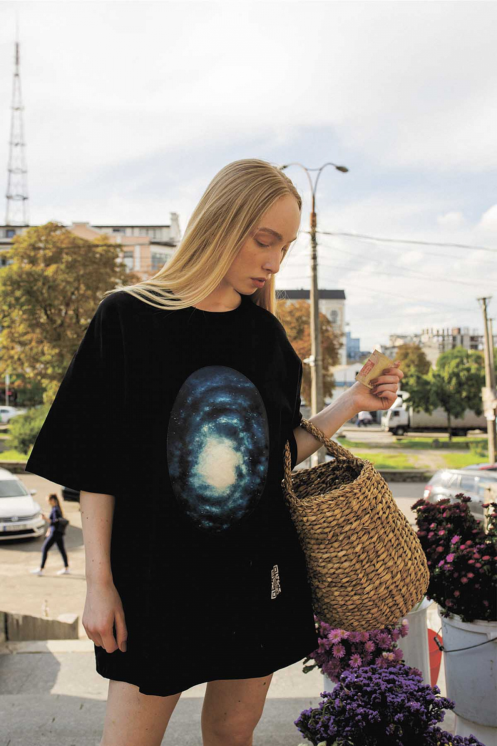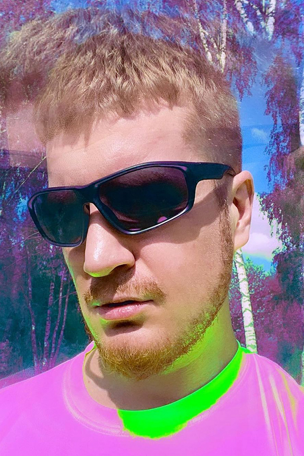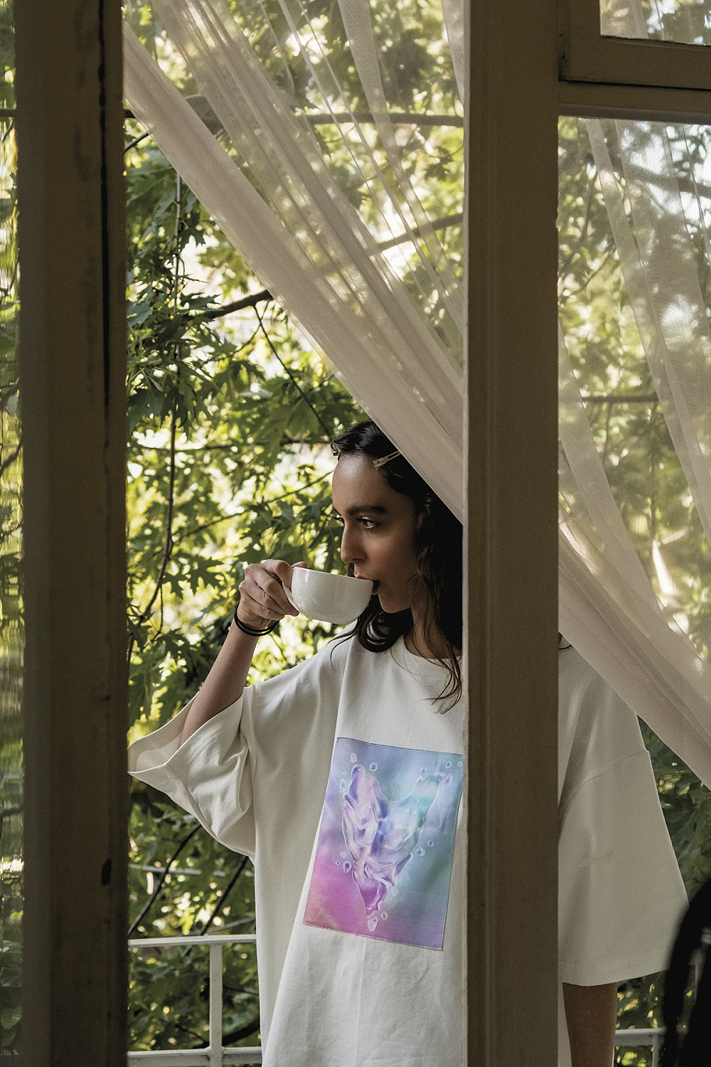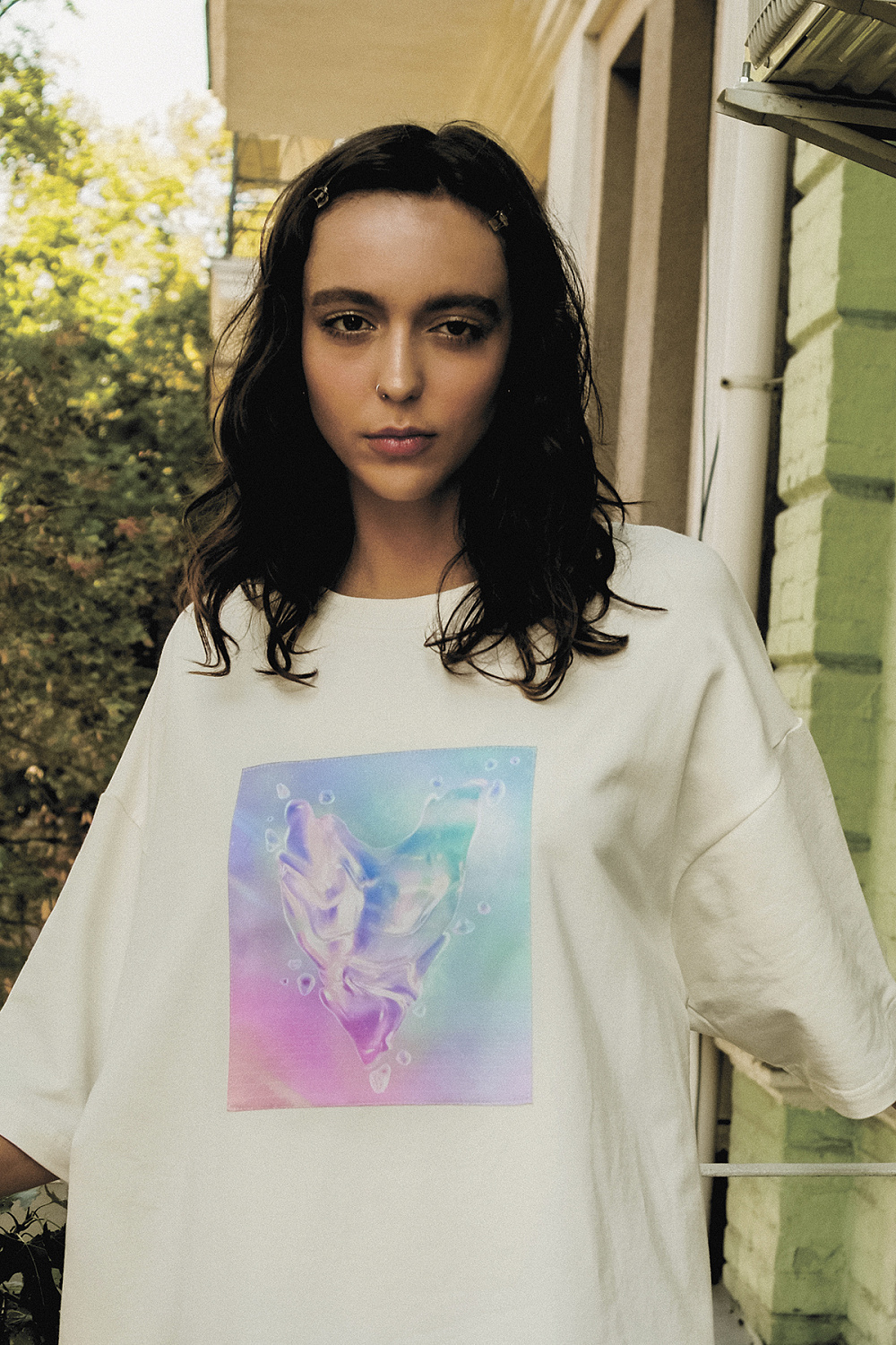«AR принт основан на моей работе The Sacred Tree, написанной еще в 2017 году. Помню, что рисовал ее ранее как эскиз для мурала детской арт школы во Флориде. Ключевыми проблематиками работы являются экология, природа и Вселенная. В коллаборации FFFACE.ME x FINCH картина получила свою новую реинкарнацию в дополненной реальности: так принт на футболке в виде вселенной активирует AR-слой, который объемно воспроизводит элементы картины снаружи и внутри того, кто надевает ее».
