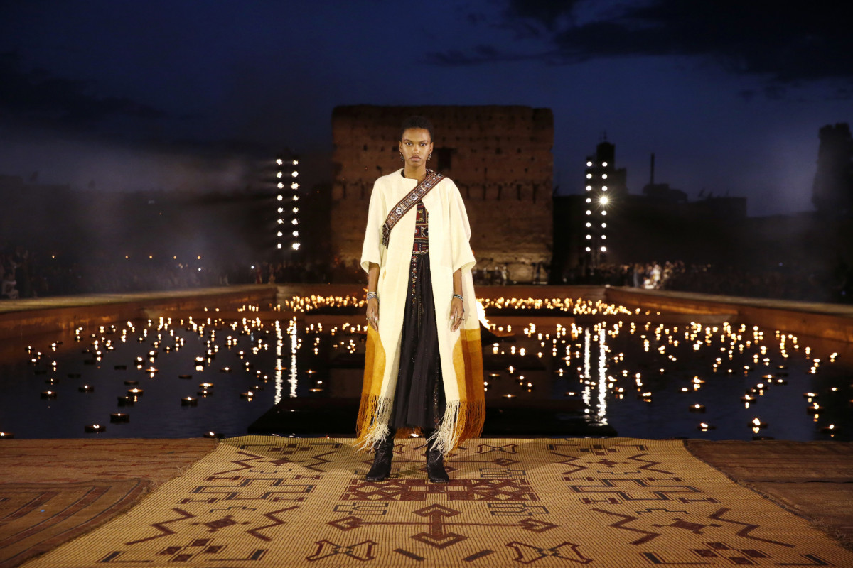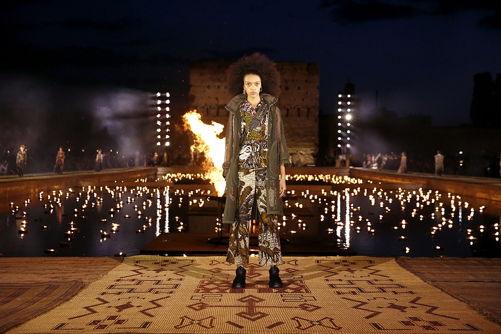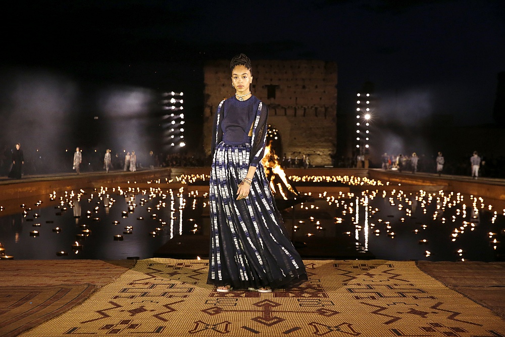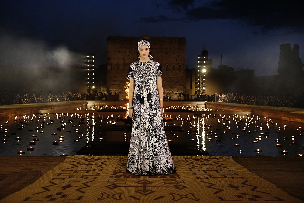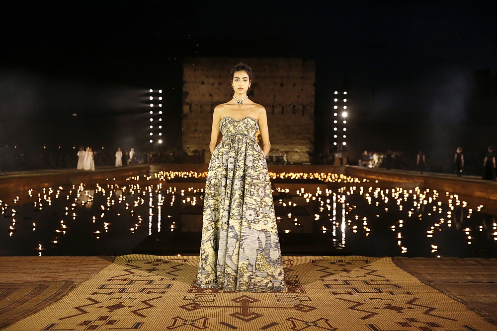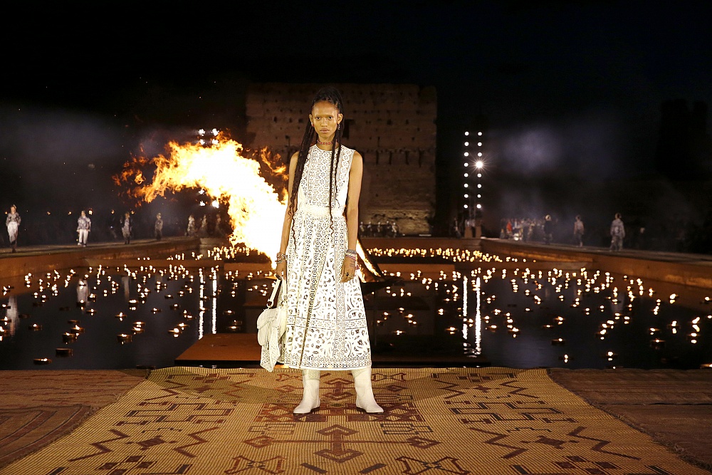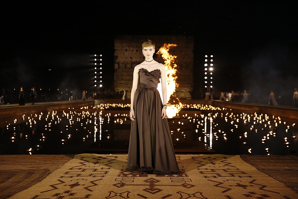 Вчера вечером в Марракеше под гипнотический саундтрек музыкантов из Jajouka и электронщиками The Orb прошел показ круизной коллекции Dior. В свете сотен мерцающих свечей и огненных факелов на руинах великолепного дворца Эль-Бади перед зрителями развернулась камерная театральная постановка — дань уважения Иву Сен-Лорану, который возглавлял Dior и считал Марракеш вторым домом. Как отметила креативный директор Дома Мария-Грация Кьюри: «Сегодня мода — это не только одежда: это момент, это опыт».