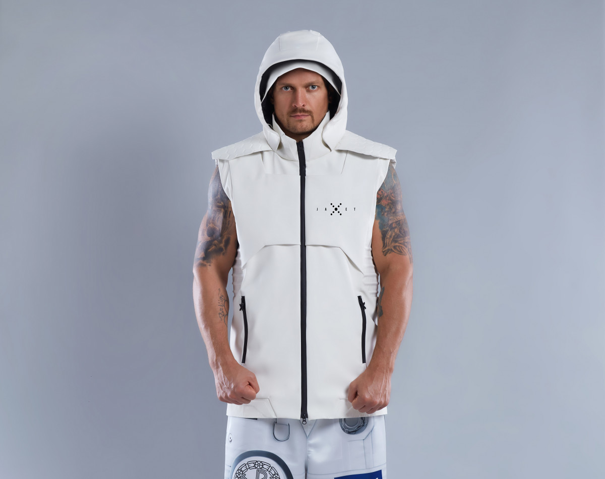 «Спорт и технологии имеют много общего, включая необходимость быть точным, решительным и находчивым. Я считаю, что каждое движение должно быть выверенным и эффективным, и здесь моя точка зрения совпала с видением Jaxet: этот бренд работает в проактивном режиме, сочетая моду и технологии. Это создает ощущение, что вы не просто носите предмет одежды, а идете на шаг дальше и живете будущим, которое происходит уже сейчас. Надев Jaxet, я почувствовал себя настоящим супергероем». Новый украинский бренд Jaxet сочетает моду и технологии, создавая одежду будущего (например, в куртки из первой коллекции интегрирован механизм для работы со смартфоном и для синхронного перевода, NFC-токен для быстрой передачи данных, защитная линза и карман для защиты персональных данных)», — говорит Усик.