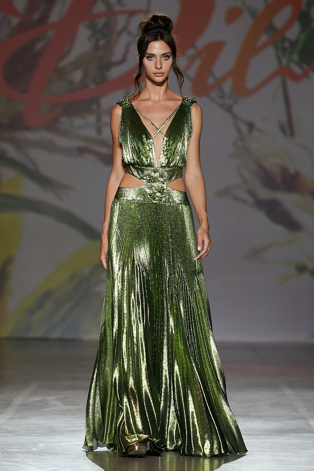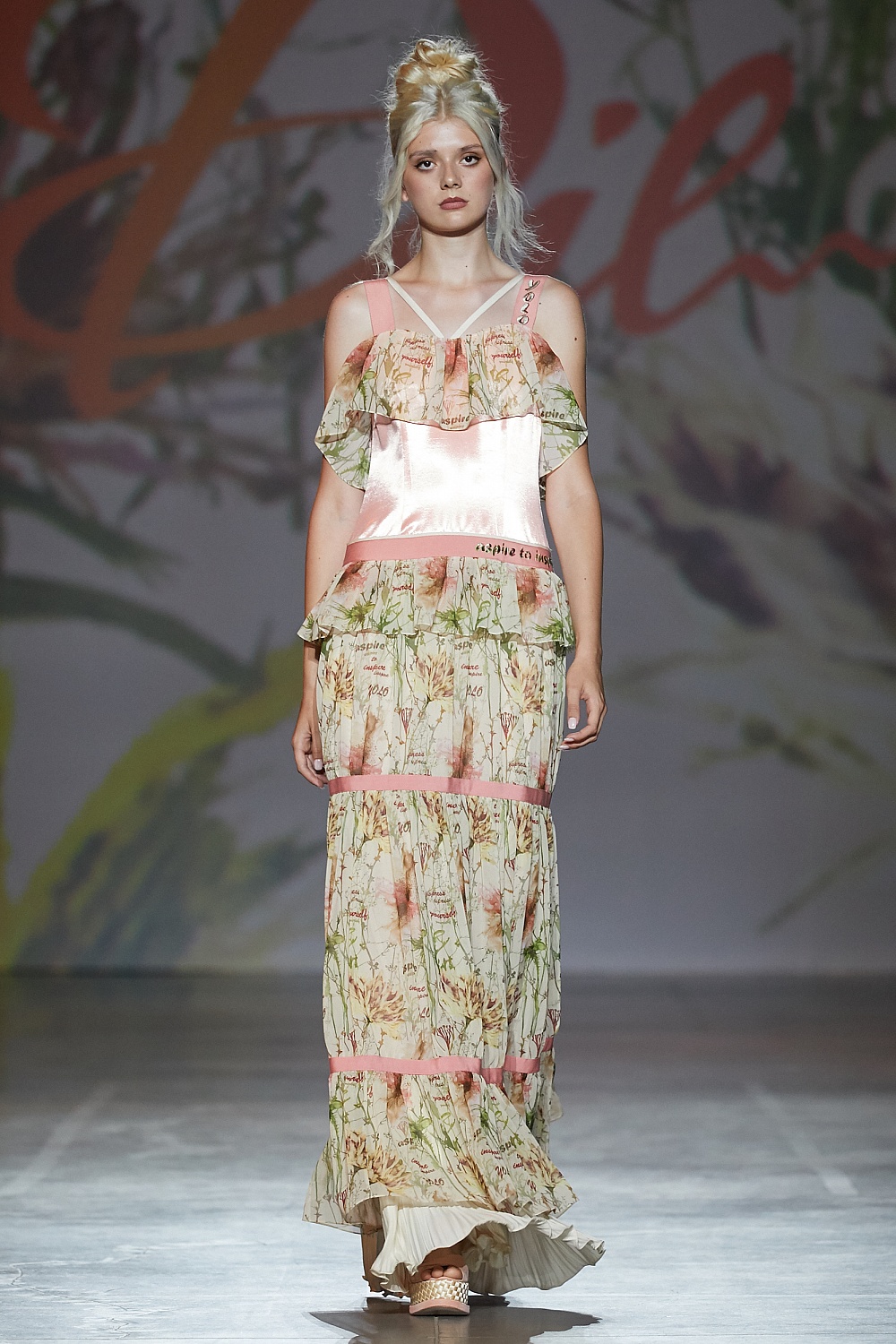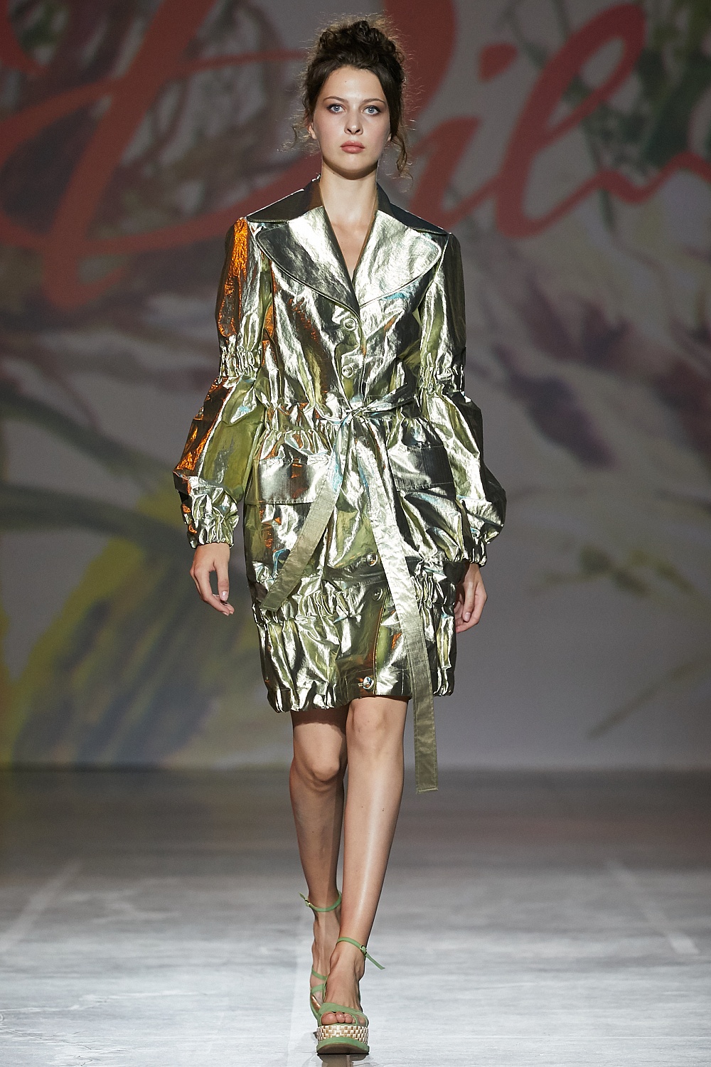 Iryna Dil сделала ставку на металлизированные ткани, которые создают жемчужное мерцание, а также натуральные лен, вискозу, батист и шелк. Трендовая фактура плиссе наполнила силуэты объемом и динамикой.