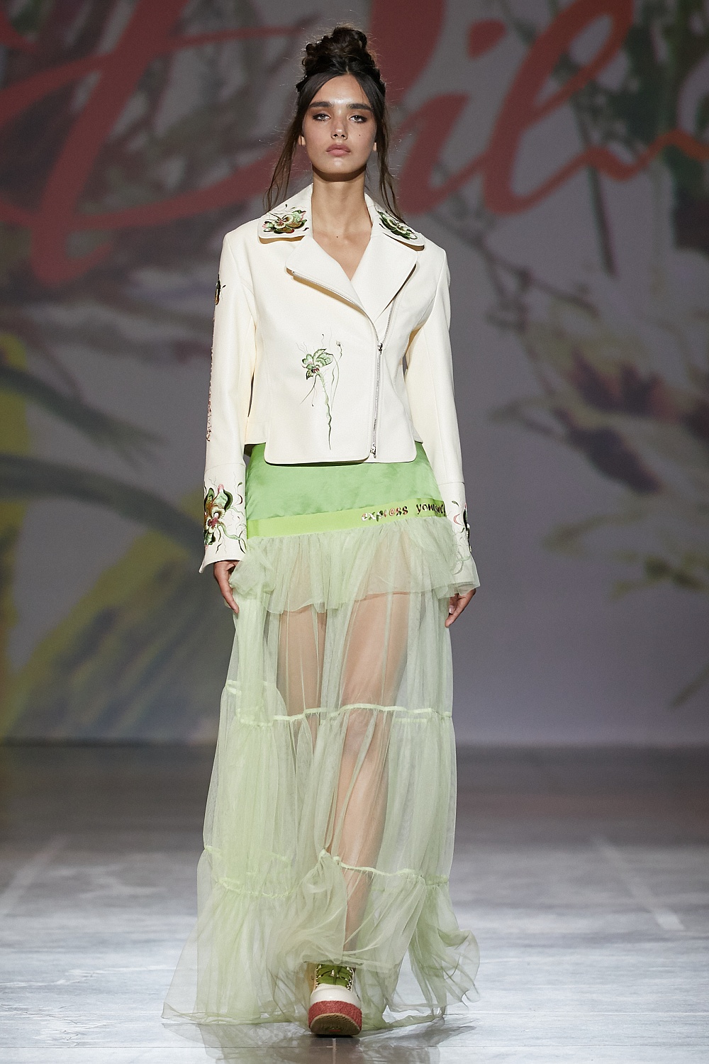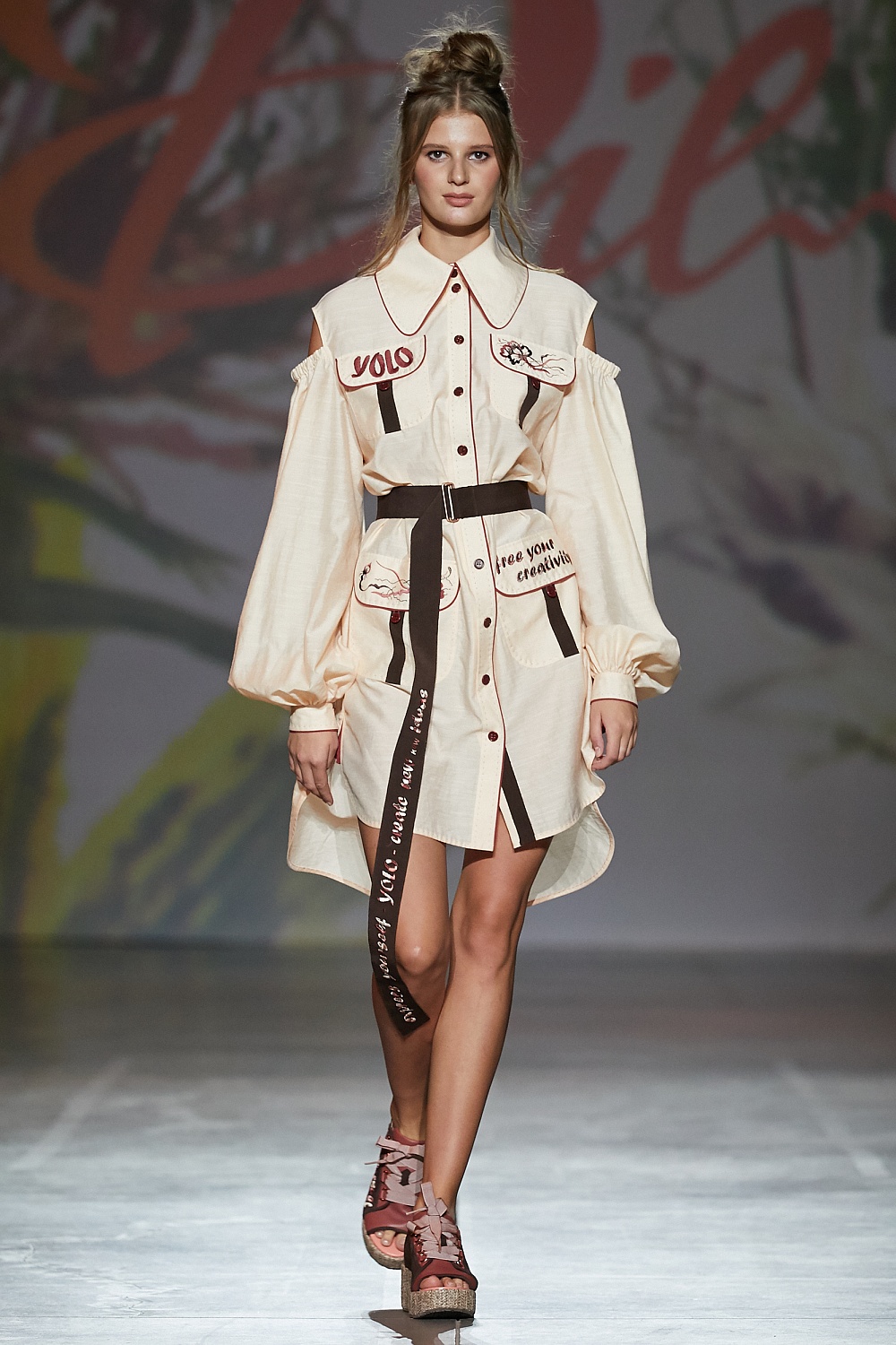Платья и сарафаны — базовые элементы бренда, которые традиционно доминируют в коллекции. Но никого не оставят равнодушными также длинные юбки из сетки с драматической драпировкой, платья-рубашки с рукавами оверсайз, кожаные куртки с мотивационной вышивкой и комбинезоны идеальной посадки.