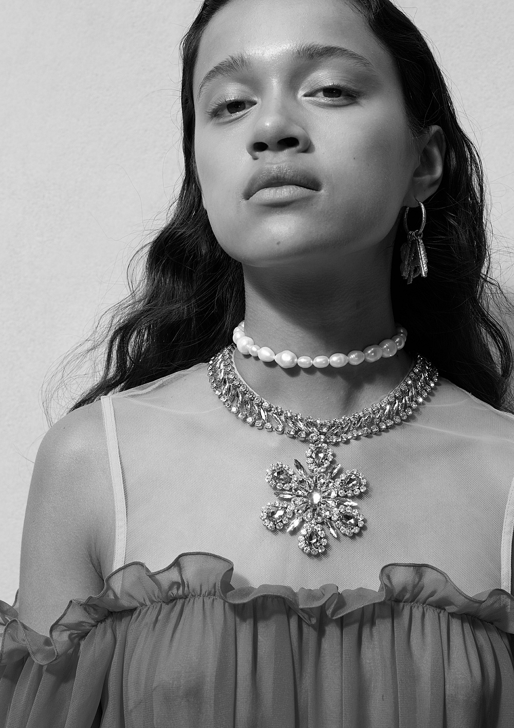 Коллекция Giambattista Valli x H&M включает в себя широкий ассортимент ювелирных украшений и аксессуаров, которые можно по-разному применить в образе. Жемчужное ожерелье является ключевым элементом и полностью соответствует стилю Джамбаттиста. В коллекции представлены солнцезащитные очки, кольца и серьги GBV, серьги Valli Girl, сандалии на высоком каблуке, ботинки и слипперы.