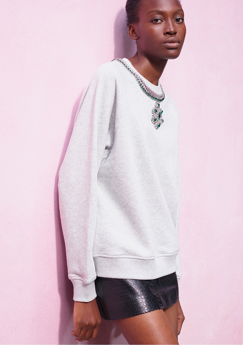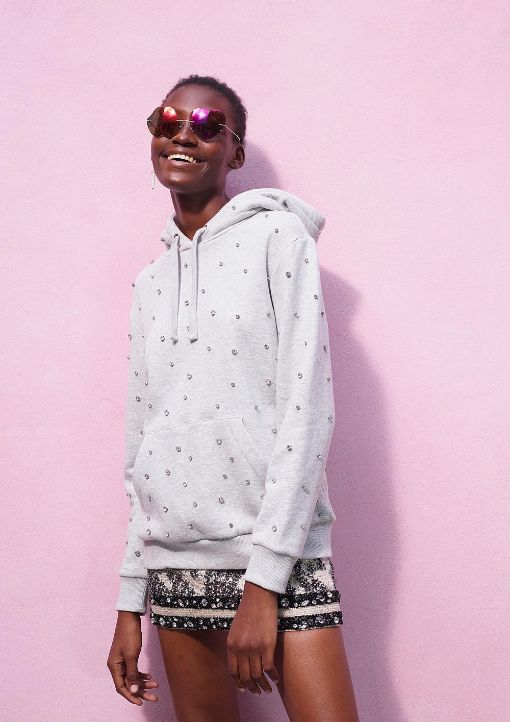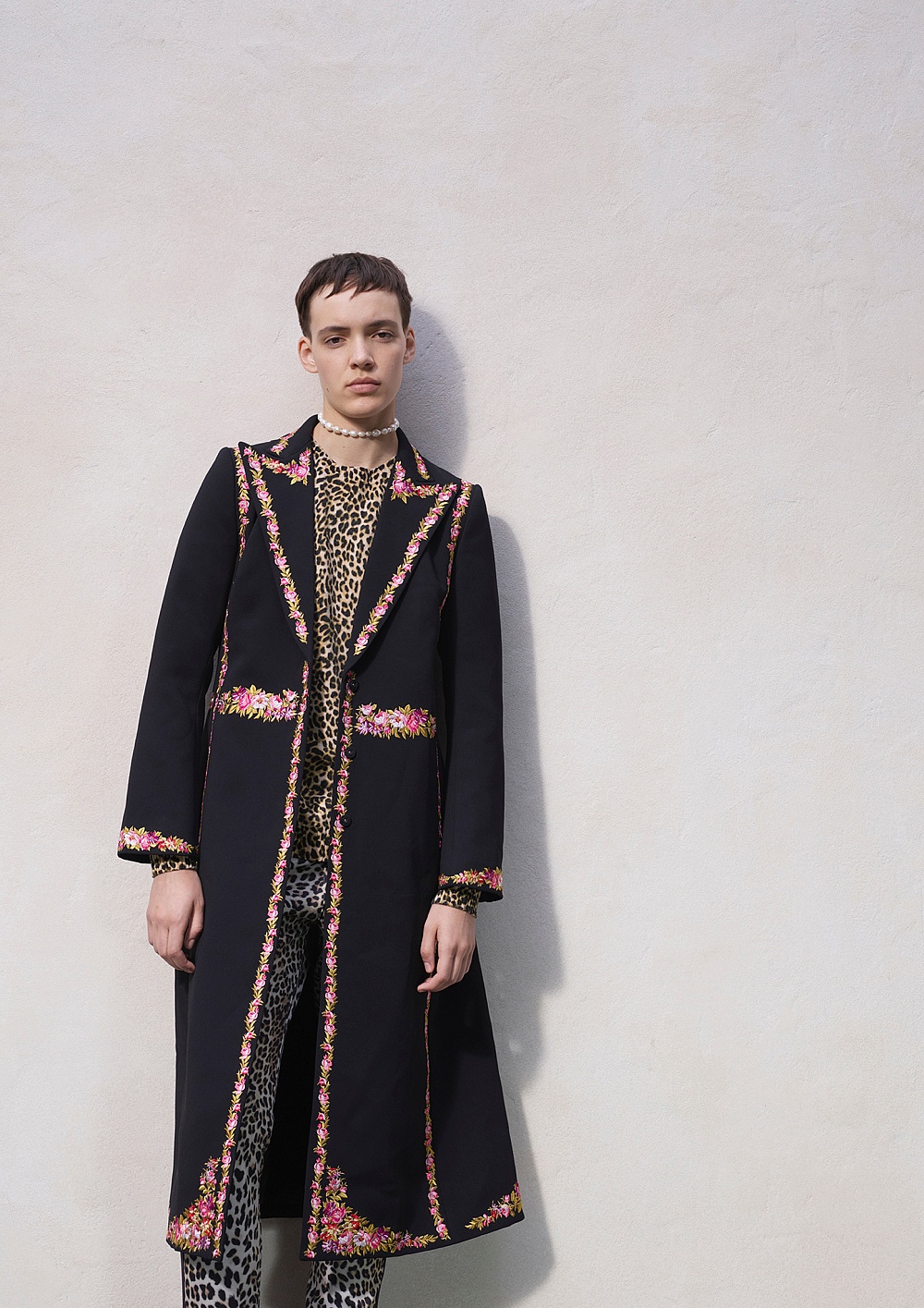Короткий жакет с отворотами и длинное пальто составляют более строгую часть коллекции. Чтобы угодить девушкам всех поколений, модельер создал линию уличной одежды, в которой, тем не менее, сохранилось уникальное чувство женственности и изысканности. Черный худи украшен цветочными мотивами, а декоративная вышивка придает аристократичности простой толстовке.