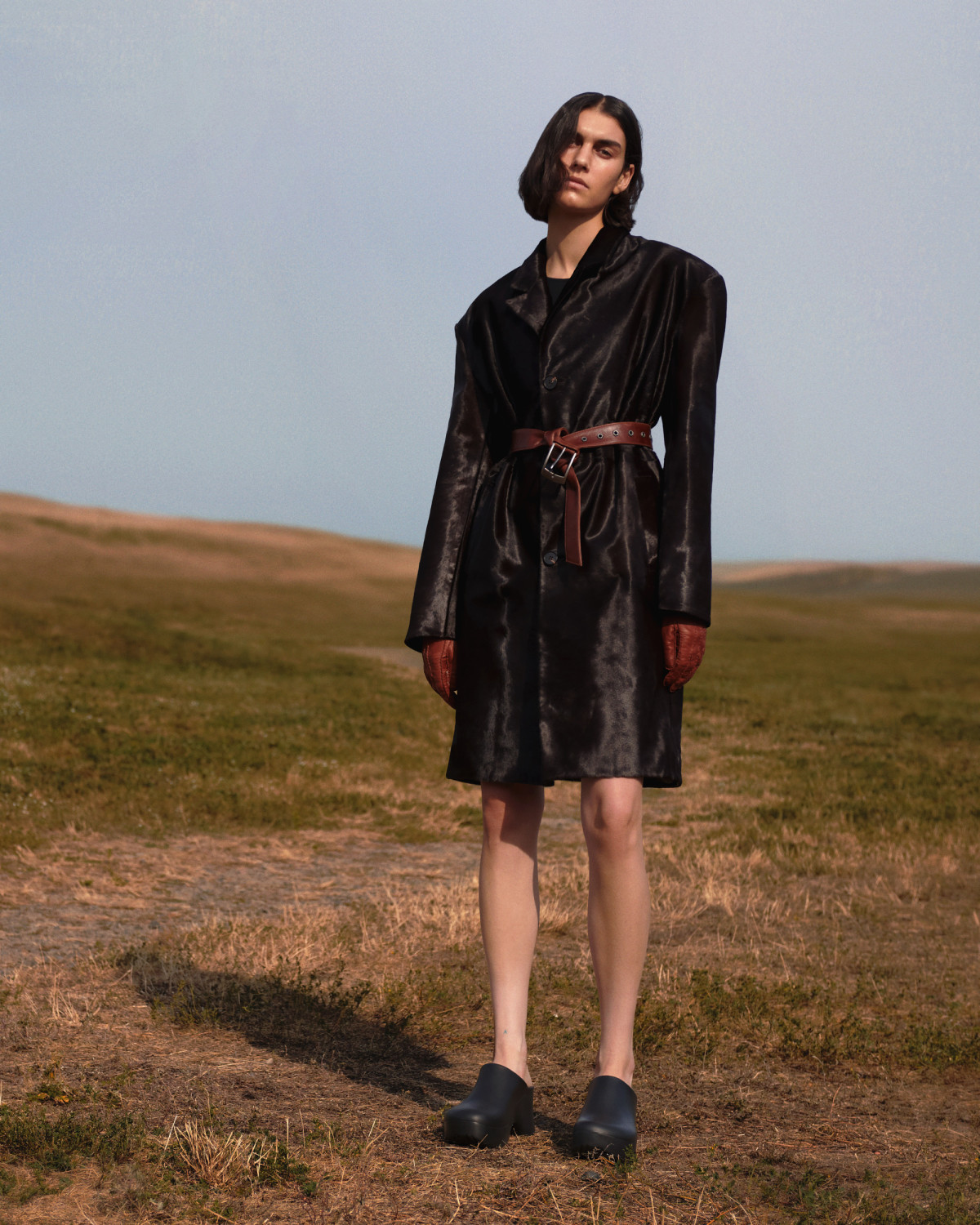 Культові моделі бренду поєднуються з класичним кроєм: жакет JEFFREY, який поєднує офіційний однобортний крій із еластичним подолом, або укорочений двобортний піджак BRIANA з культовою об’ємною формою рукавів KULAKOVSKY. Чіткі силуети з підкладеними плечима, предмети робочого одягу та елементи спортивного відпочинку відображають внутрішню силу, яка зазвичай ховається за зовнішньою чуттєвістю та крихкістю. Ці якості, з іншого боку, представлені м’якими текстурами замші та розкішної шкіри поні, силуетами, що облягають тіло, і додаванням корсету. Наприклад, сміливе та сексуальне пальто GIA підкреслює вигини, але виглядає різко та вишукано. Витончена елегантність знайшла своє місце в двобортних тренчах і шубах — об’ємних, теплих і пишних.