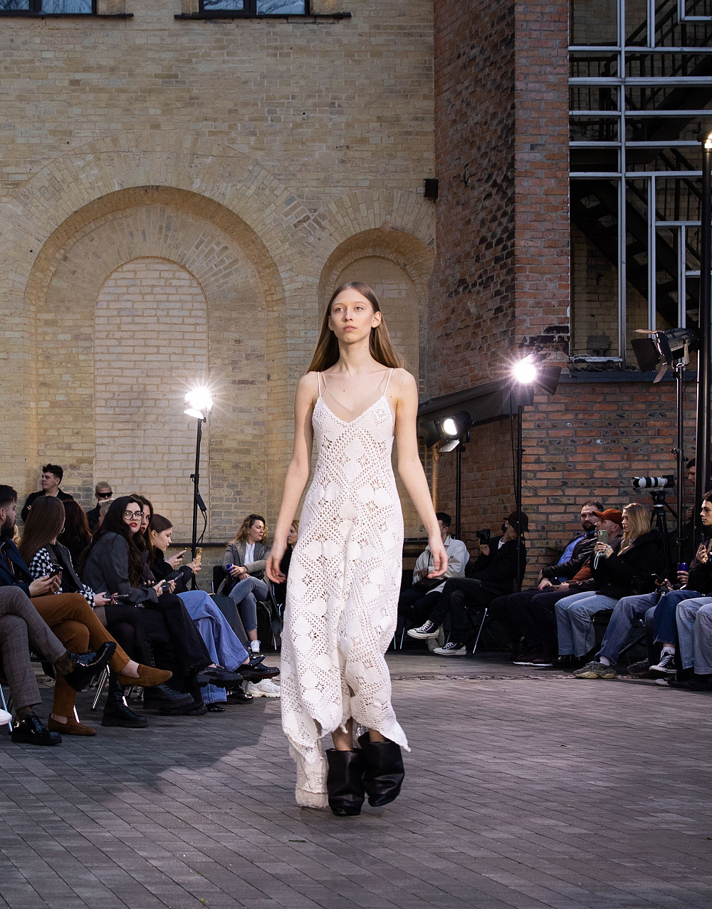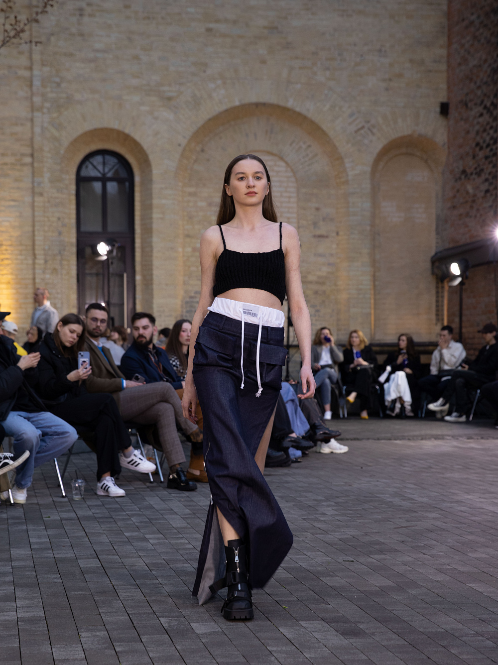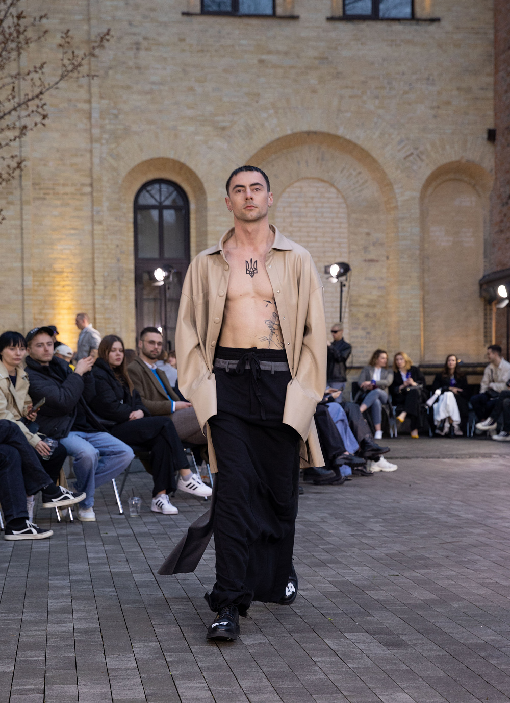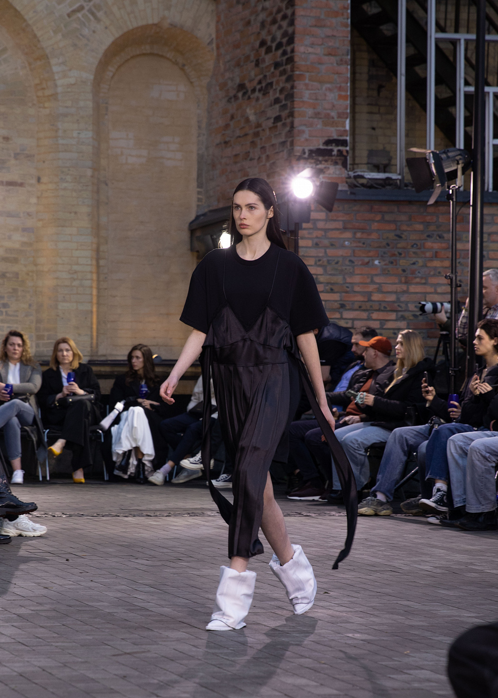 Шоу відкривав образ, в якому на торсі моделі було написано вірш «Любіть Україну», а закривала показ Олімпія Вайтмусташ в чорній об`ємній сукні.
