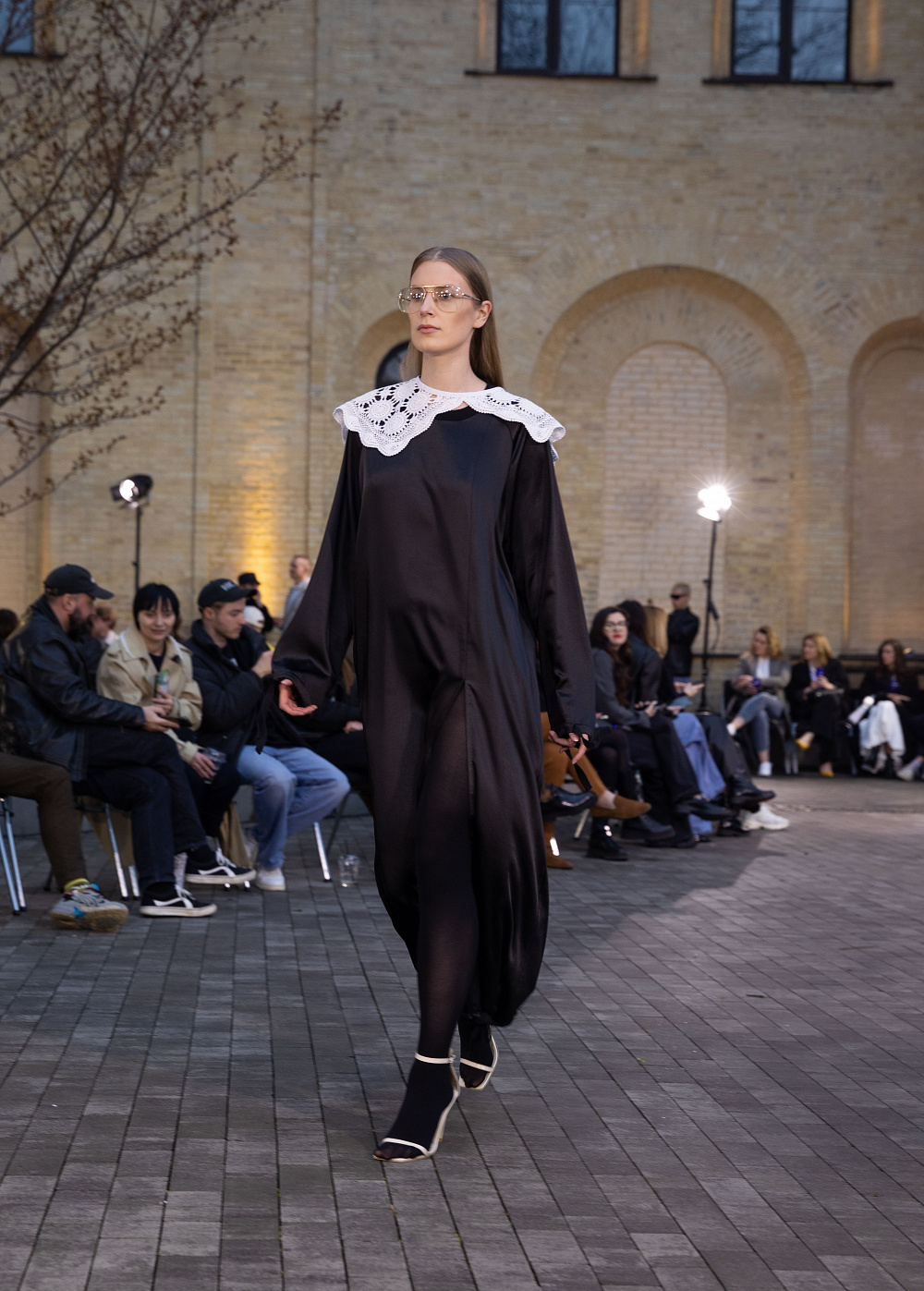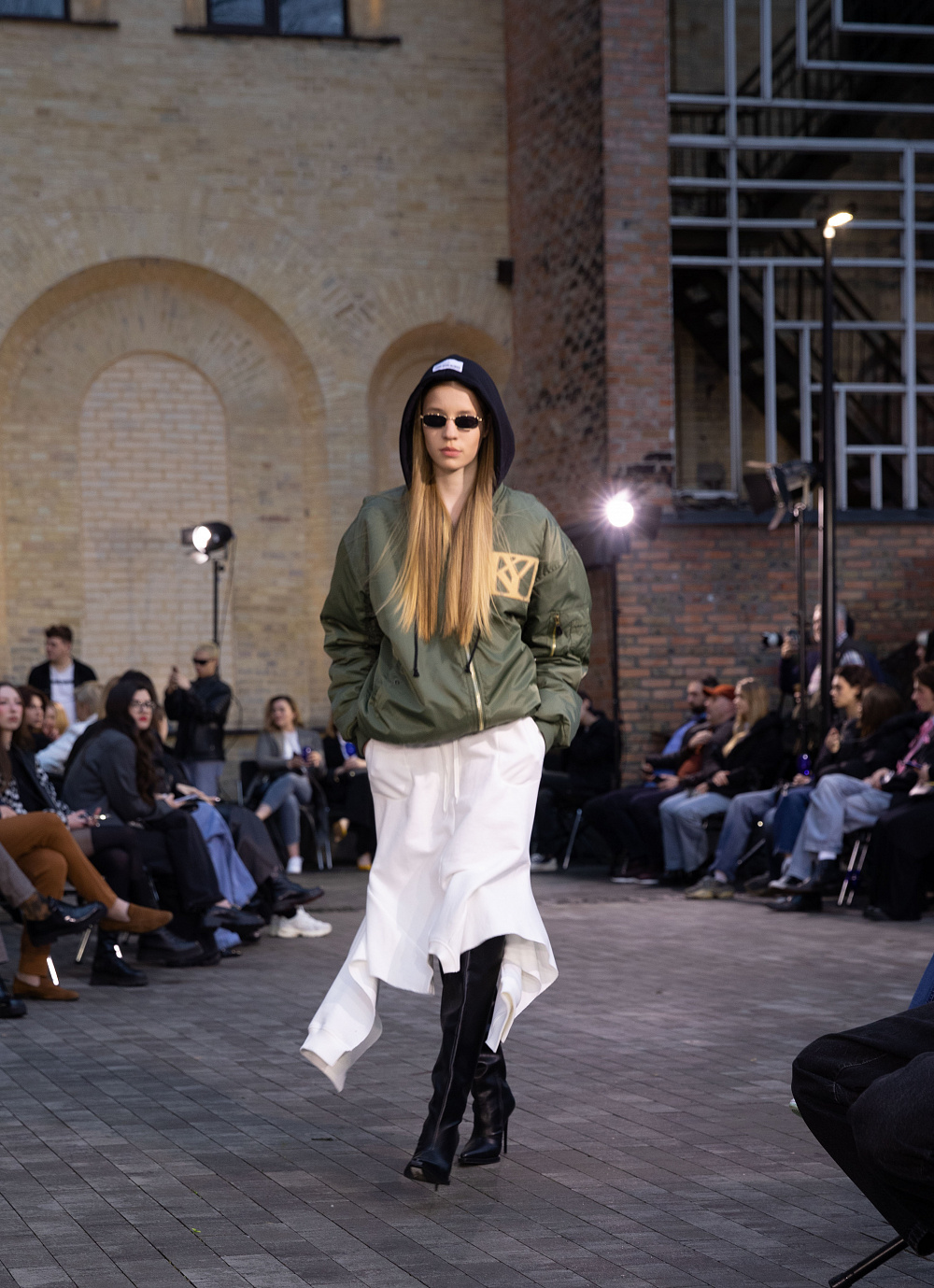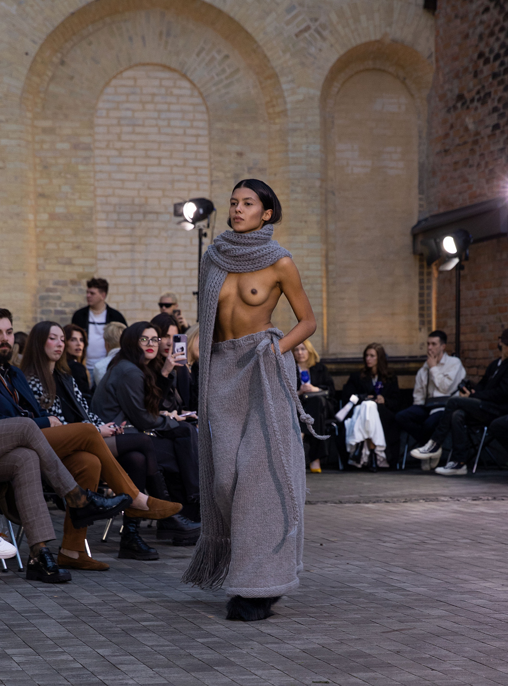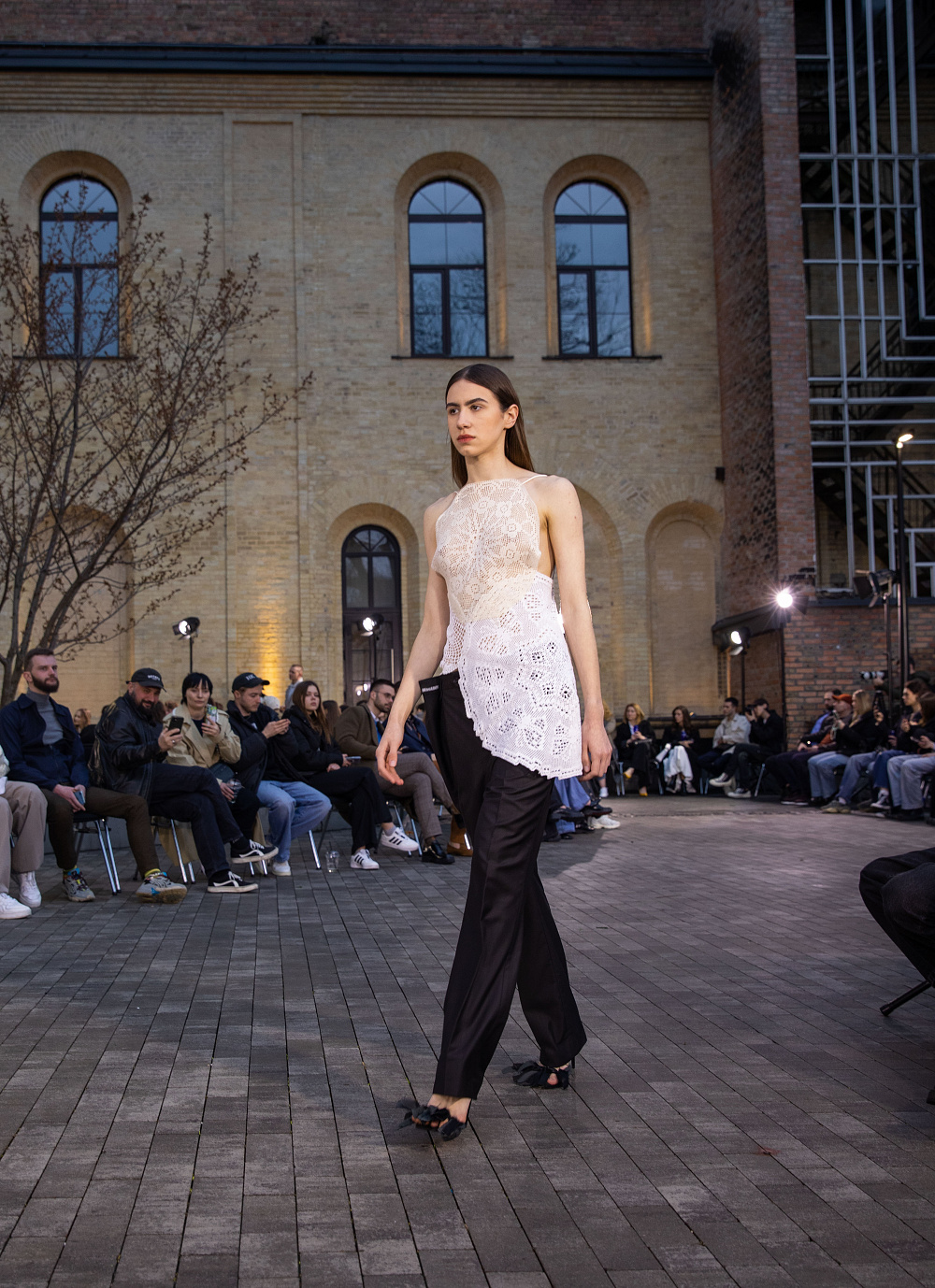 Шоу відкривав образ, в якому на торсі моделі було написано вірш «Любіть Україну», а закривала показ Олімпія Вайтмусташ в чорній об`ємній сукні.