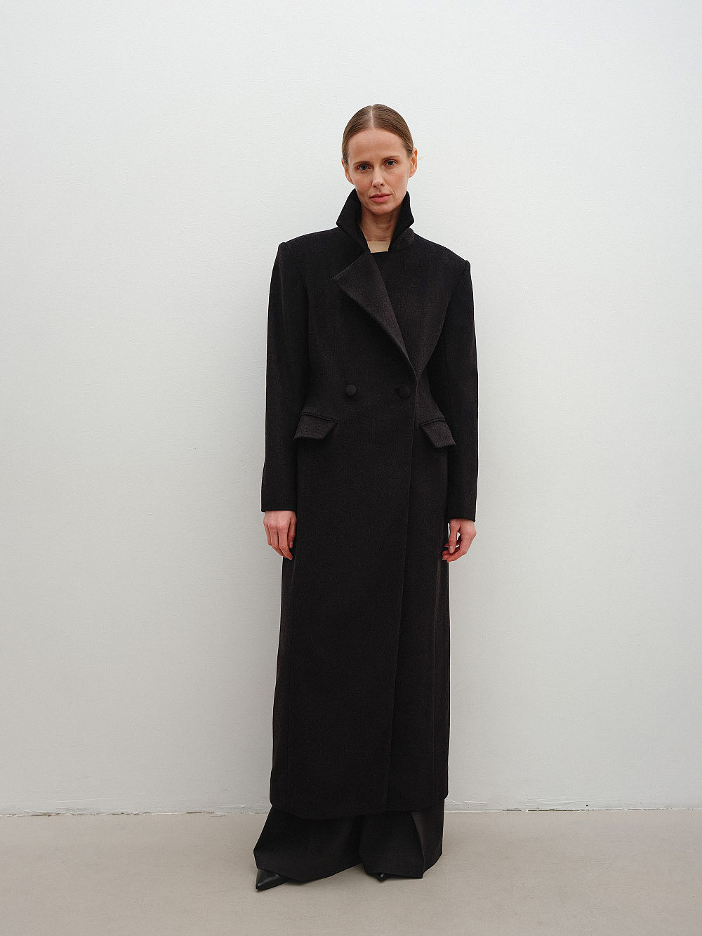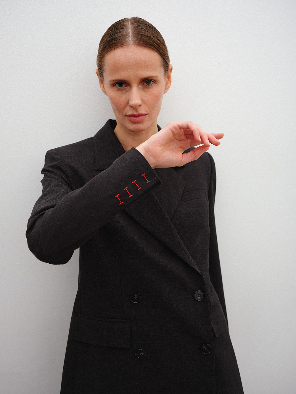 Колекцію презентували в чорному, темно-сірому, бежевому та яскраво-червоному кольорах. Для створення лінійки дизайнерка використала італійську вовну, вовну з кашеміром, полівіскозний креп, поліестер та поліамід.