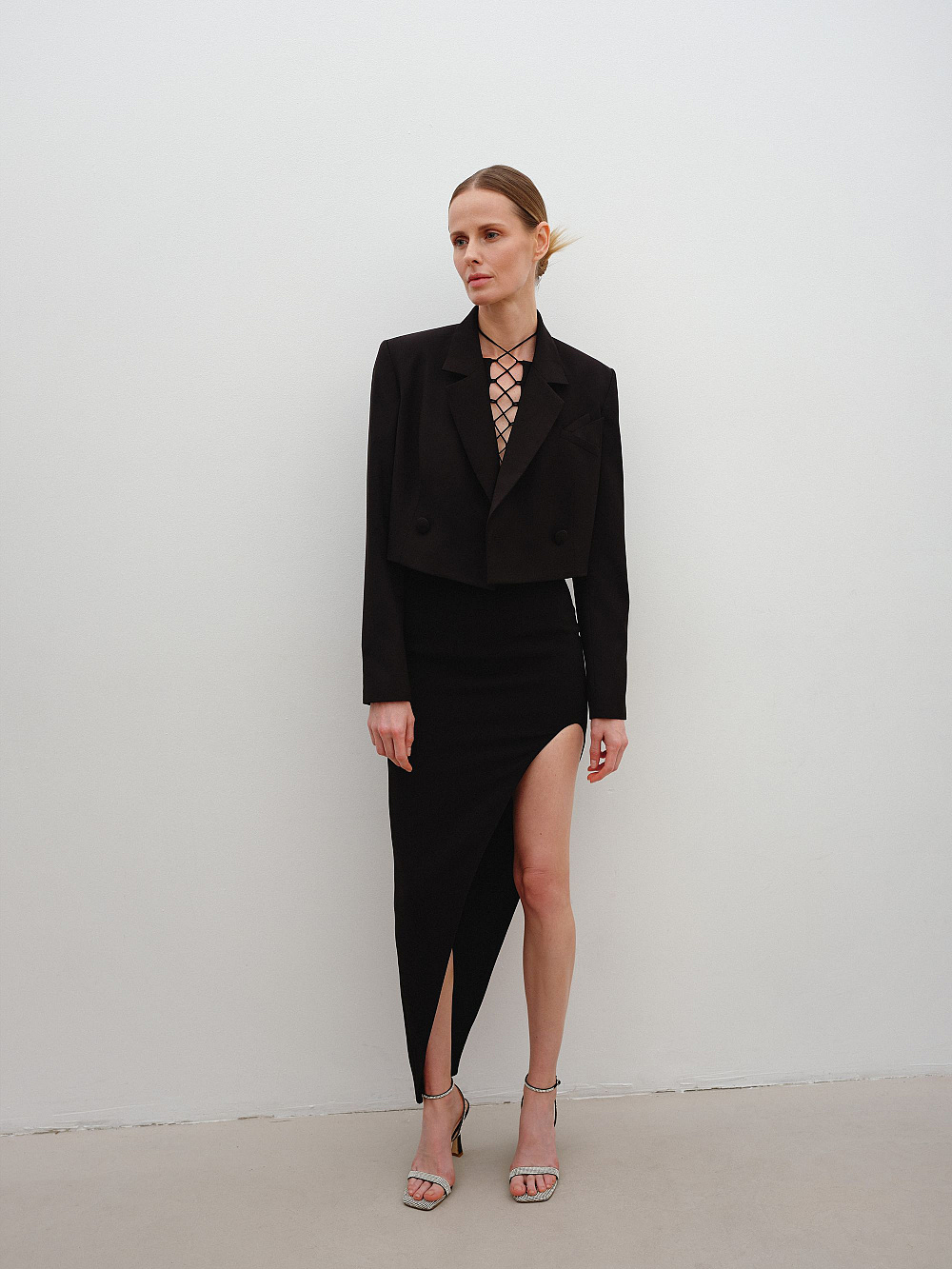 Серед речей нової колекції — довге приталене пальто, ефектний кроп-пуховик з буфами, костюм-трійка з двобортним довгим жакетом, жилеткою та штанами палаццо, а також костюм-двійка з кроп-жакетом та міні- й мідіспідницями. Також у Core представлені міні- й мідісукні, кроп-топи та декілька варіантів боді. Усі речі поєднуються між собою, тож дають можливість створити універсальну капсулу.