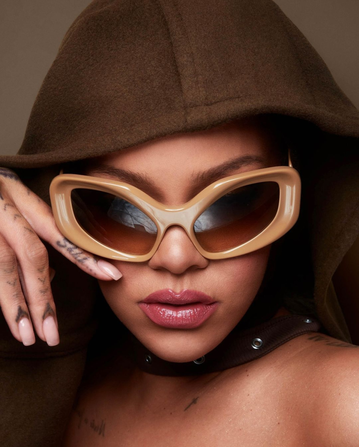 Так, у своєму Instagram зірка поділилася кількома фото, на яких презентує літню колекцію помад власного бренду Fenty. Для декількох світлин Ріанна одягнула темно-коричневу хустину Ruslan Baginskiy, яка ідеально поєдналася зі шкірою й макіяжем співачки.