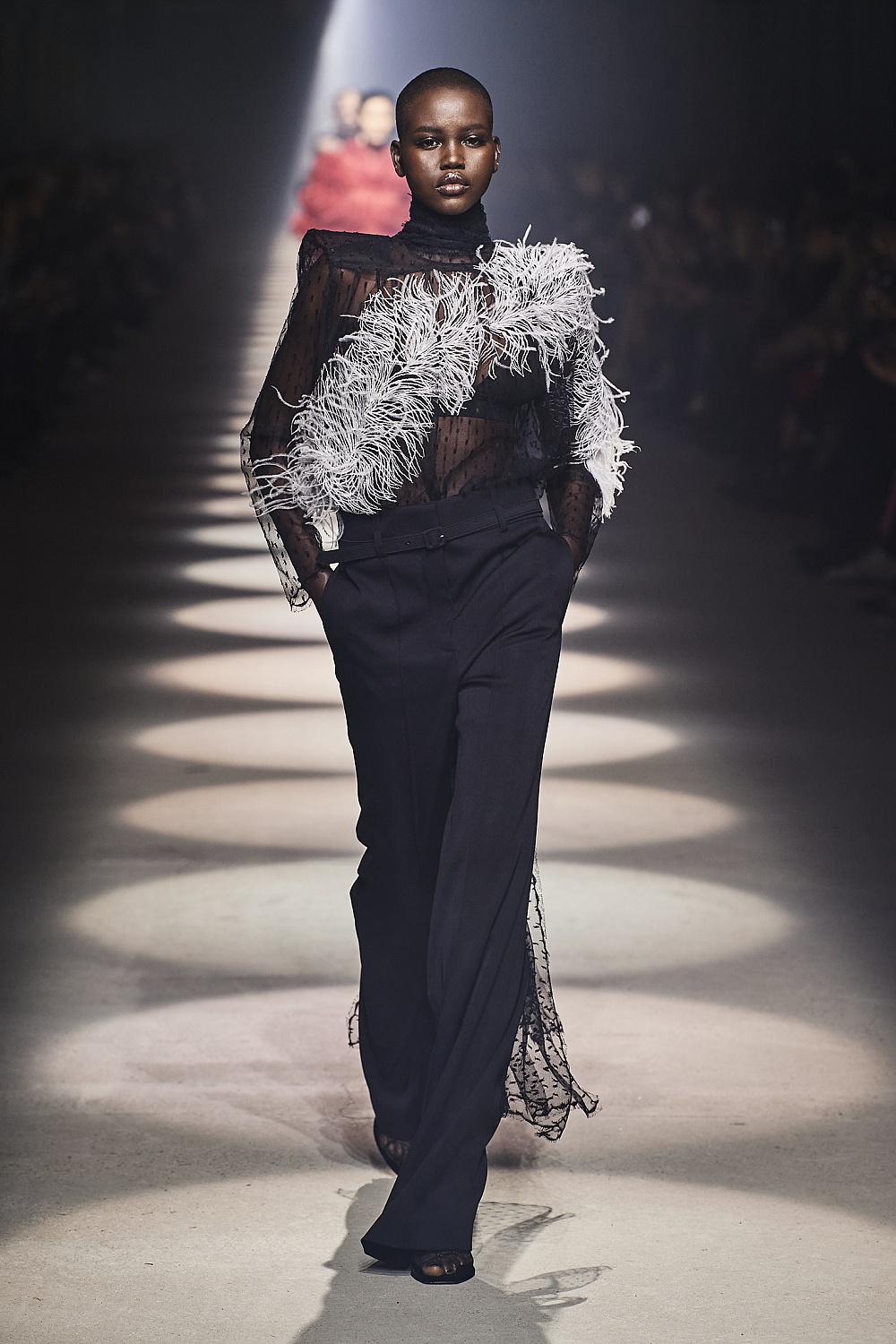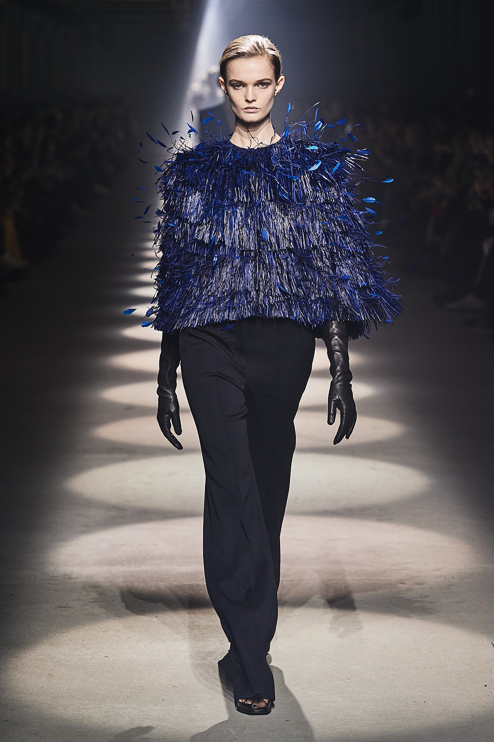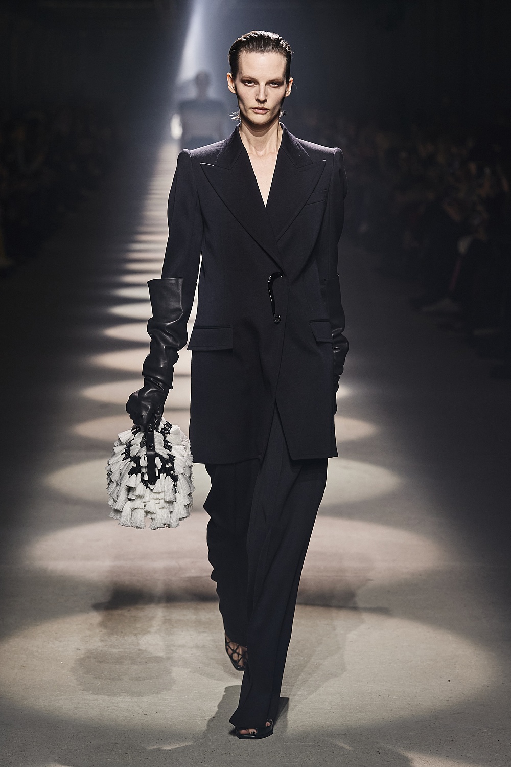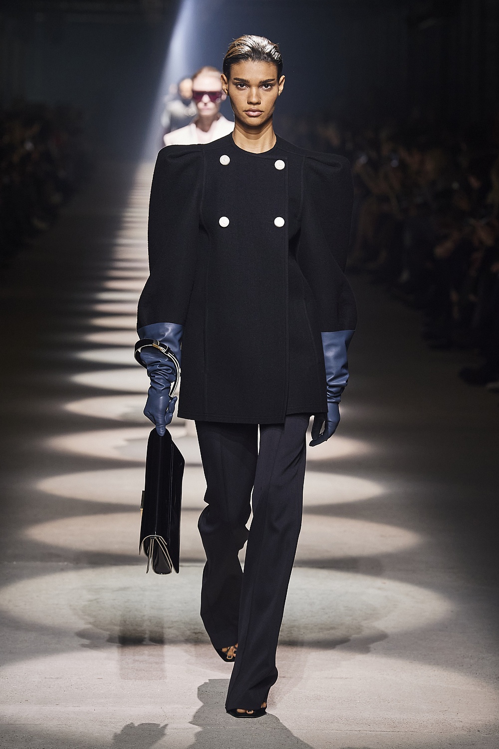 Своим источником вдохновения для создания новой коллекции креативный директор Givenchy Клэр Уэйт Келлер называет фильмами французской новой волны. Силуэты были минималистичны, но за счет преувеличенных подчеркнутых плеч вызывали ассоциации скорее с 1980-ми, чем с невинной легкостью nouvelle vague. Но любые очевидные референсы, в конце концов, слишком скучны — и художник на привычные вещи всегда смотрит по‑своему.
