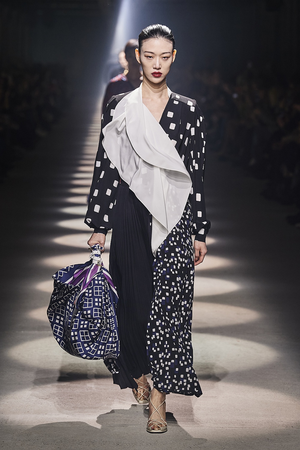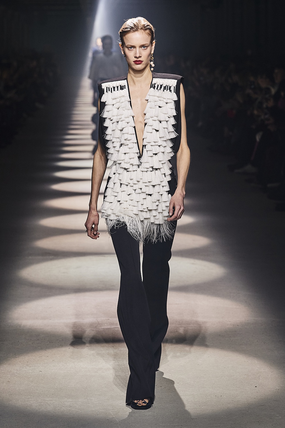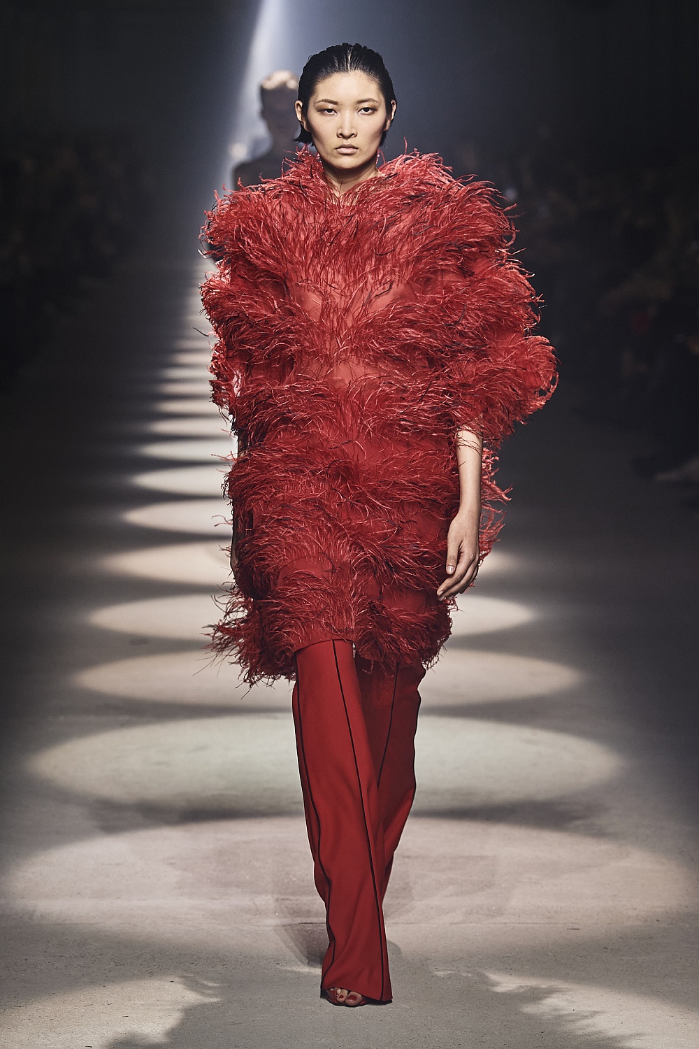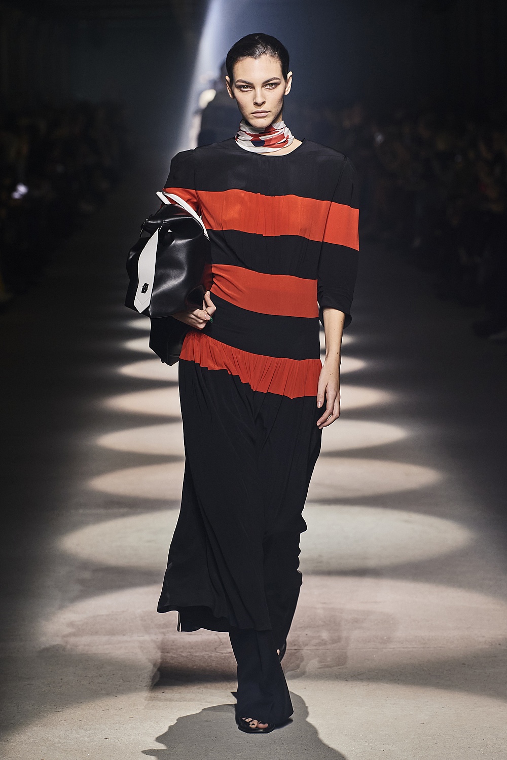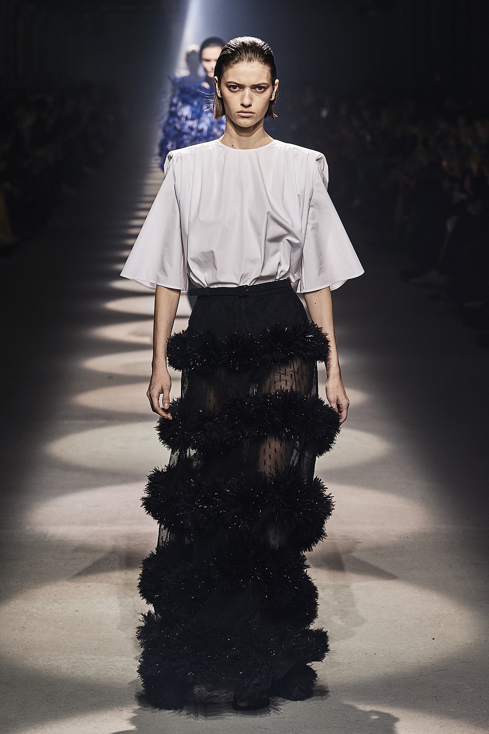 Своим источником вдохновения для создания новой коллекции креативный директор Givenchy Клэр Уэйт Келлер называет фильмами французской новой волны. Силуэты были минималистичны, но за счет преувеличенных подчеркнутых плеч вызывали ассоциации скорее с 1980-ми, чем с невинной легкостью nouvelle vague. Но любые очевидные референсы, в конце концов, слишком скучны — и художник на привычные вещи всегда смотрит по‑своему.