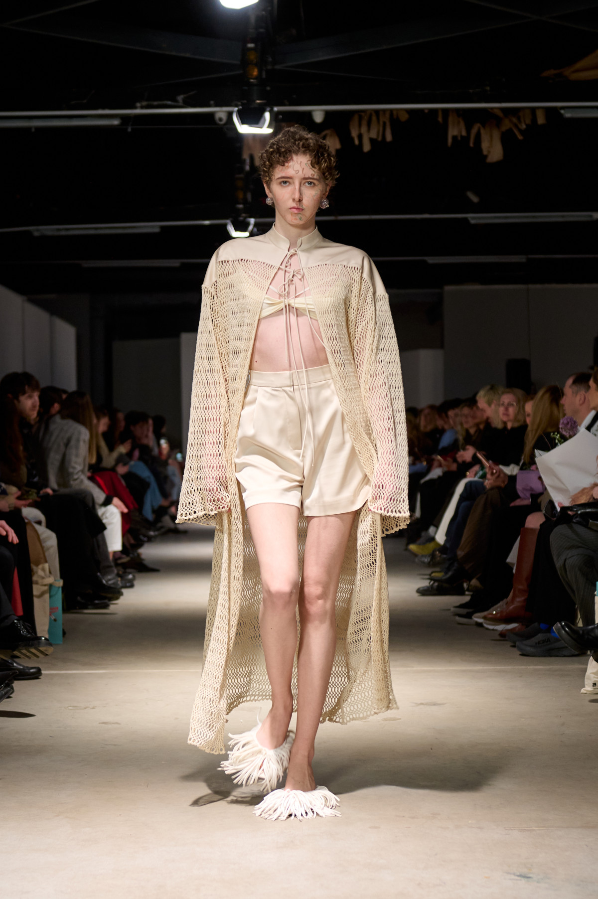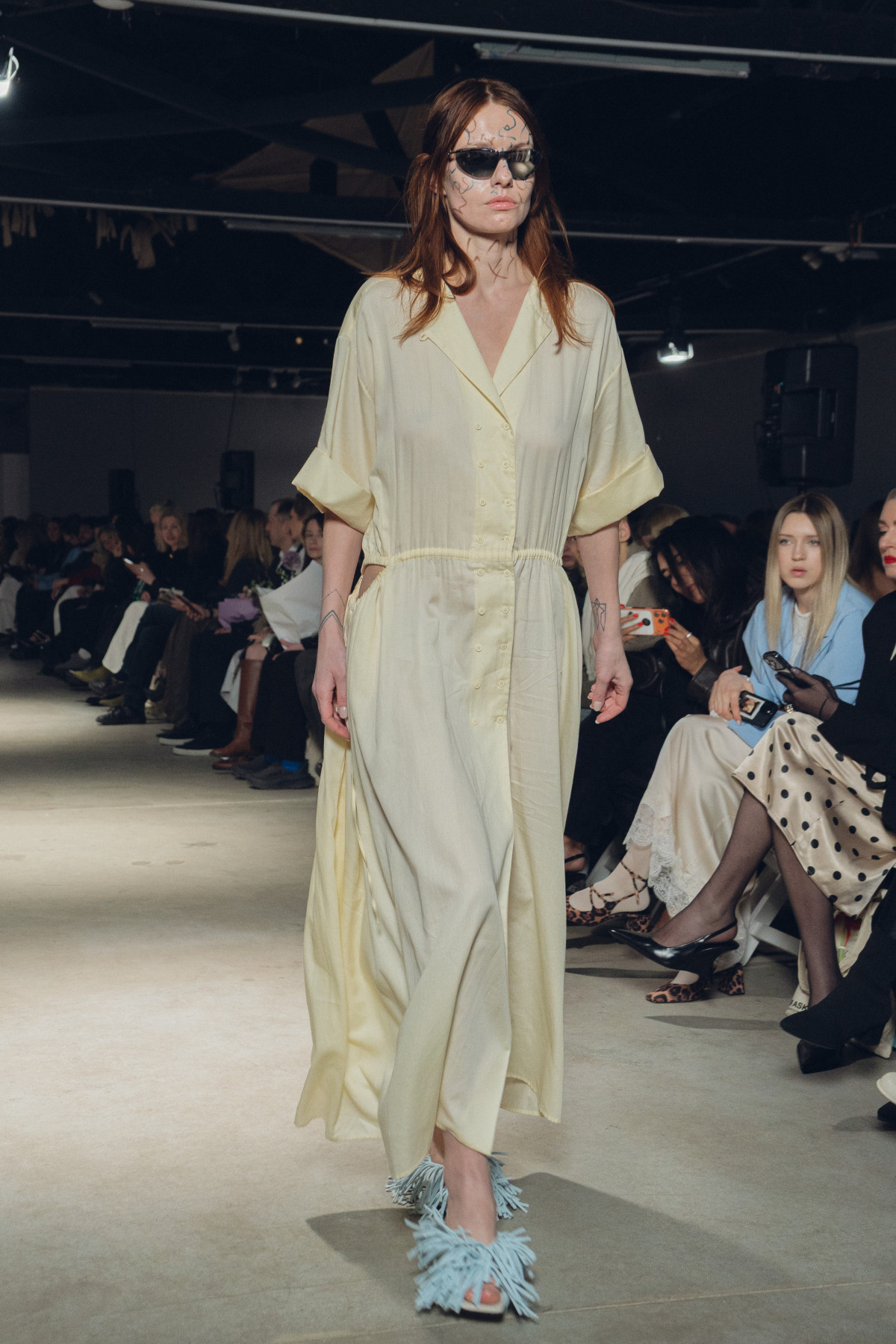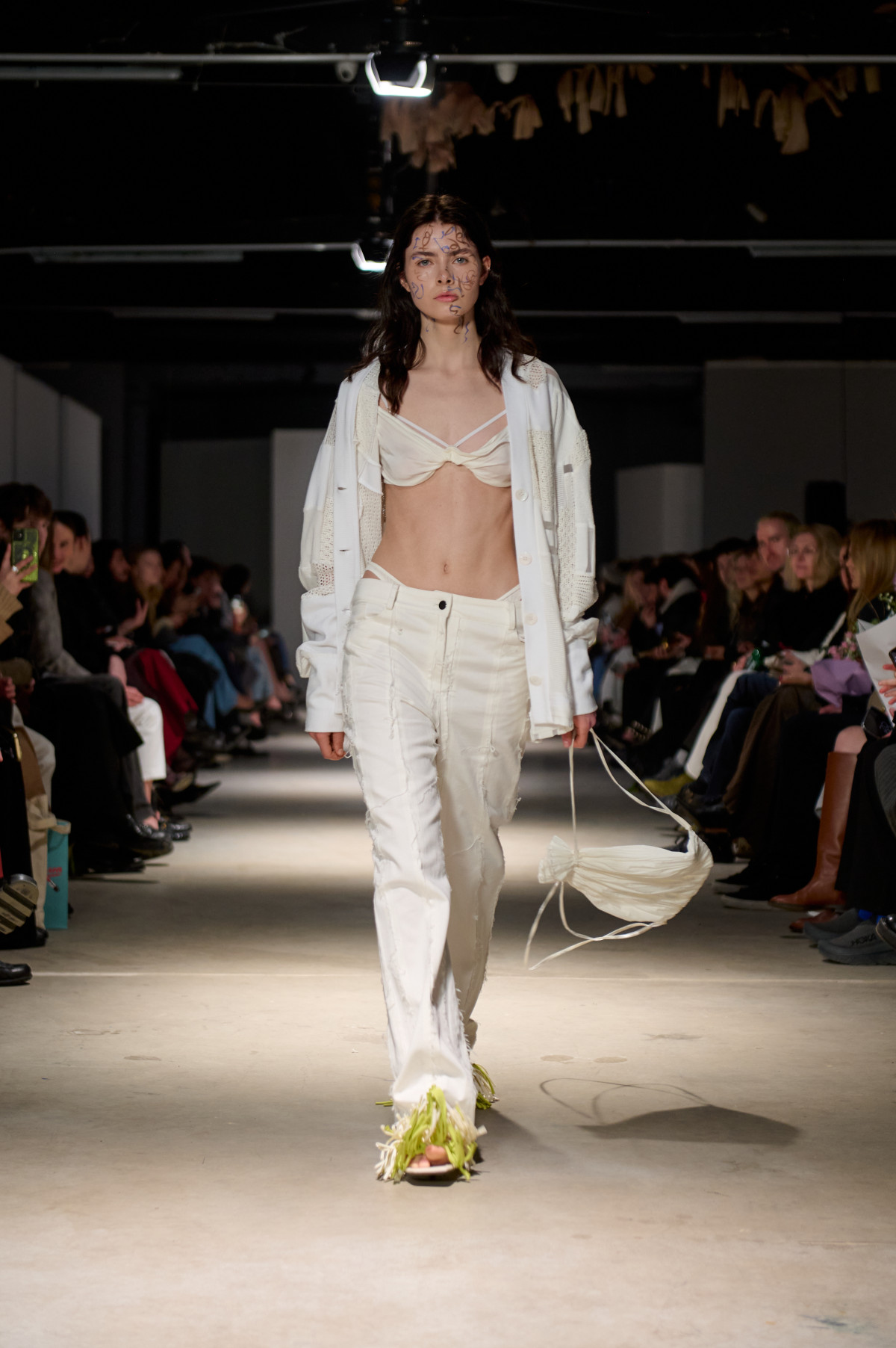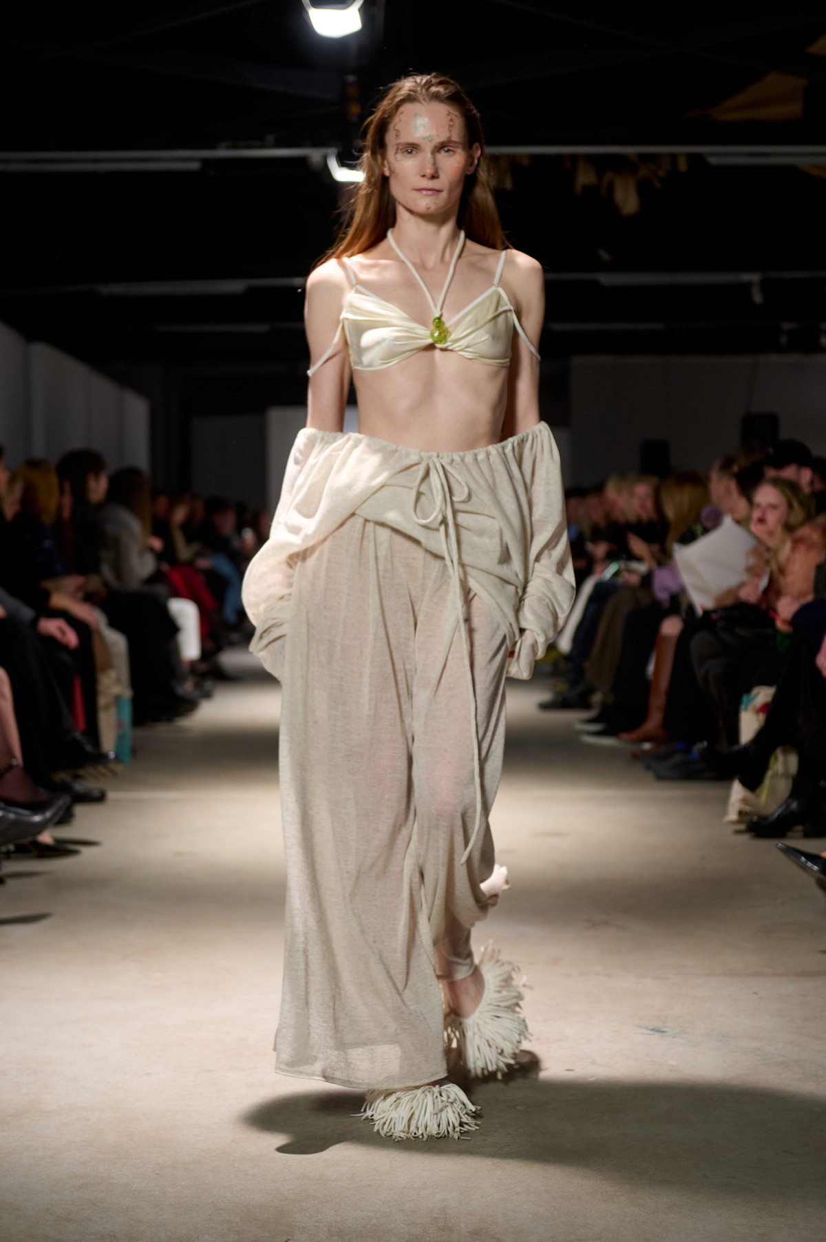 У колекції зʼявилися нові матеріали, зокрема креш-бавовна, а також збереглася робота з печворком як частиною sustainable-коду бренду. Крафтова необробленість країв, декоративні шви назовні та відкрита підкладка виробів сформували відчуття недосконалої, але чесної краси. Знімні комірці-хустки на сукнях-сорочках додали архітектурності, а шовкові бюст’є-бра з подвійними бретелями та стрічками — тендітності й чутливості.