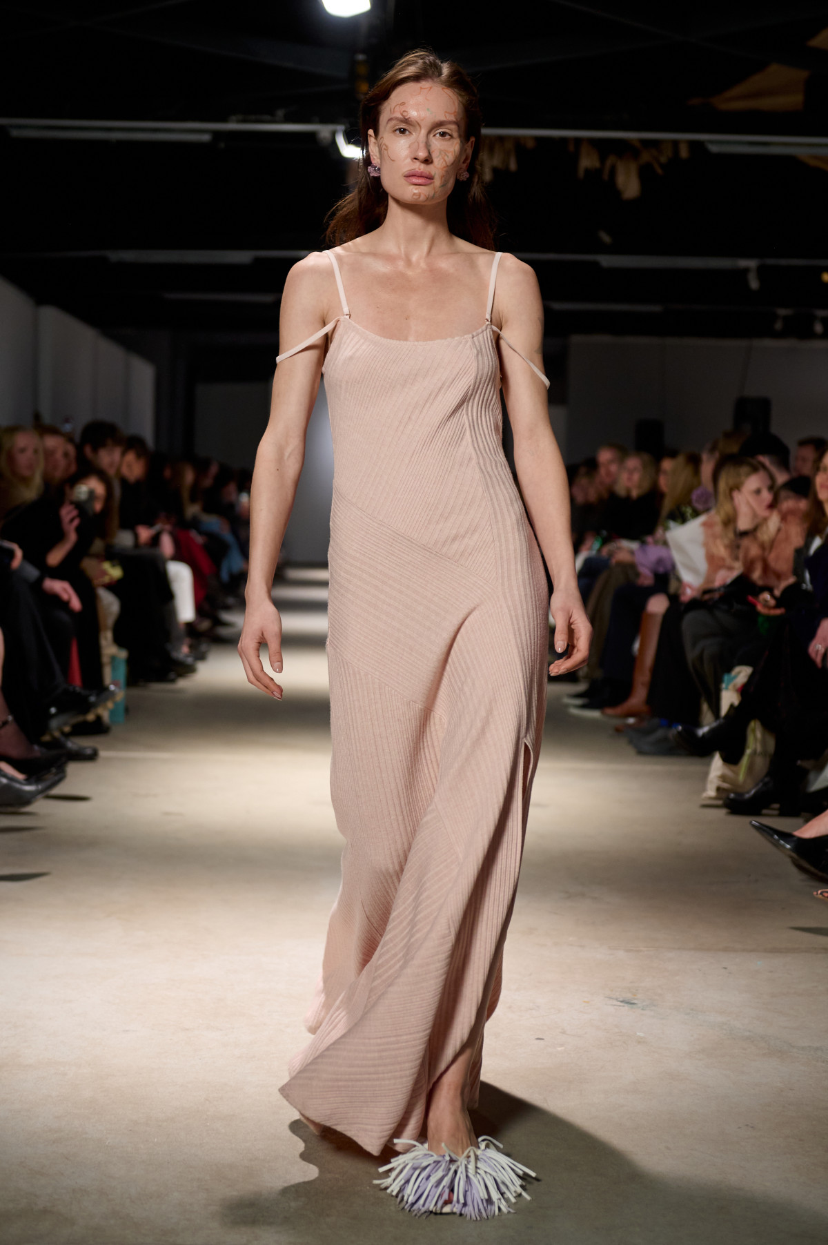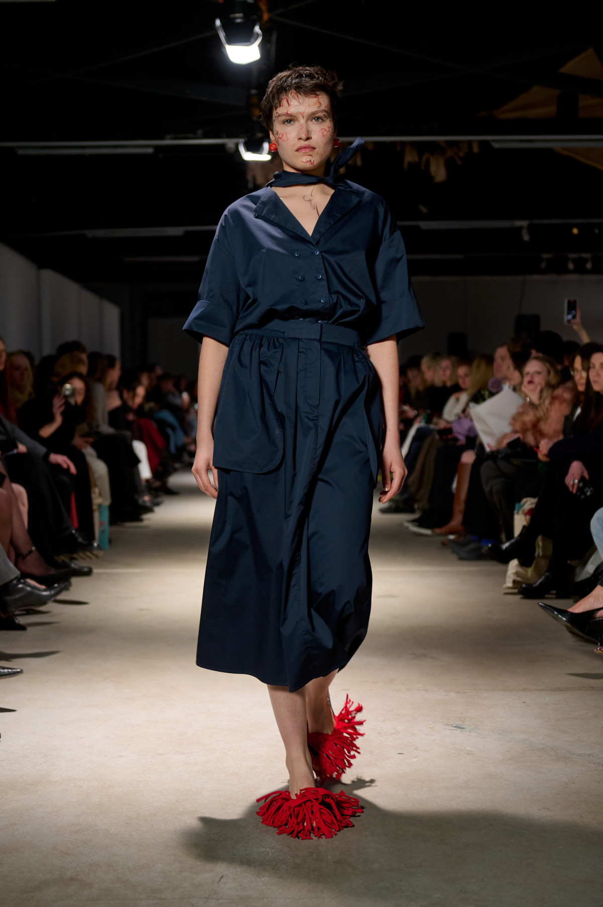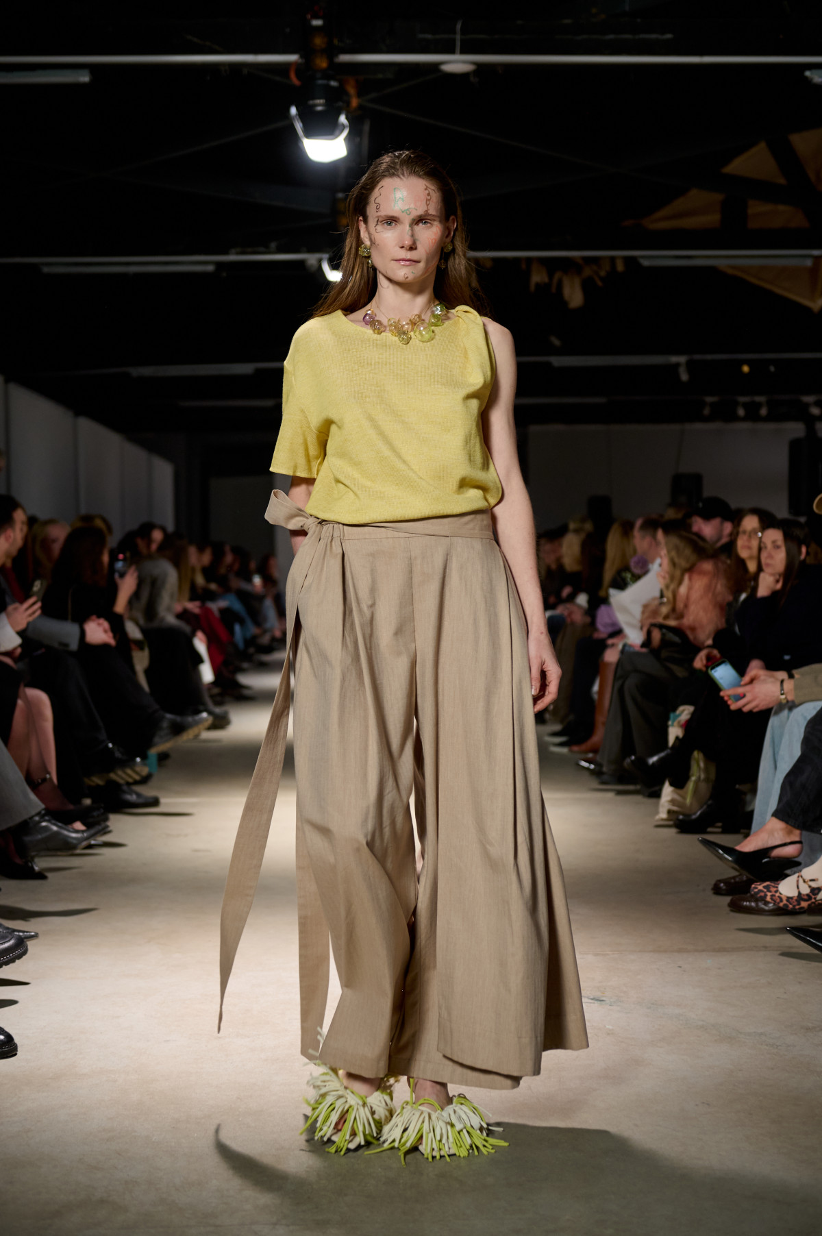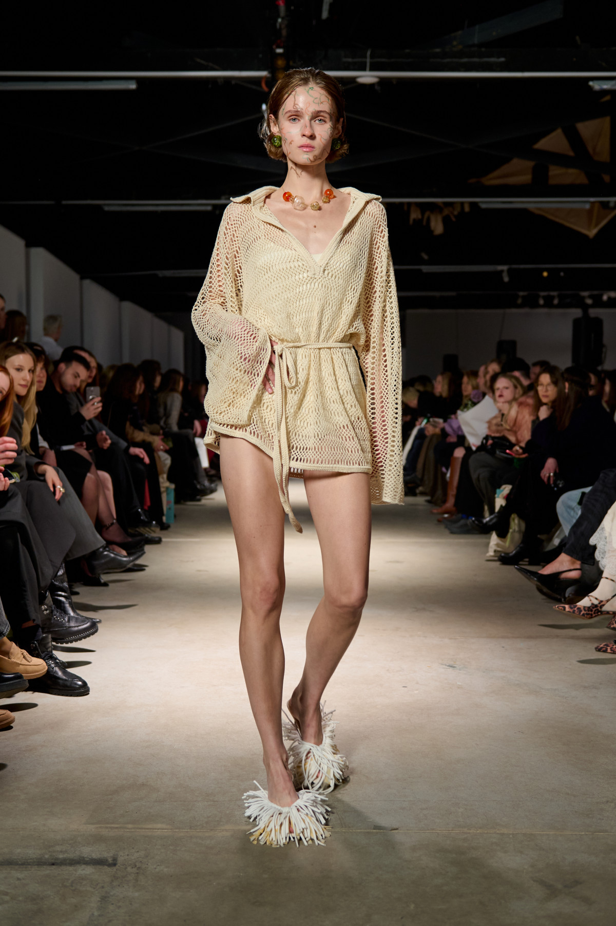 У колекції зʼявилися нові матеріали, зокрема креш-бавовна, а також збереглася робота з печворком як частиною sustainable-коду бренду. Крафтова необробленість країв, декоративні шви назовні та відкрита підкладка виробів сформували відчуття недосконалої, але чесної краси. Знімні комірці-хустки на сукнях-сорочках додали архітектурності, а шовкові бюст’є-бра з подвійними бретелями та стрічками — тендітності й чутливості.