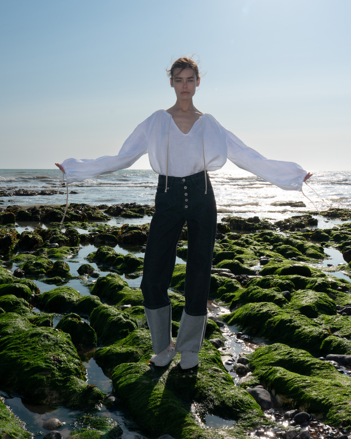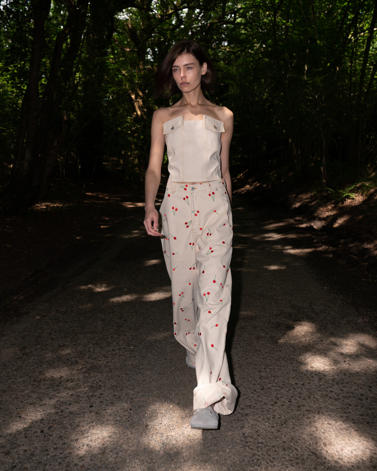 Ця демісезонна лінійка побудована навколо деніму — ключового матеріалу KSENIASCHNAIDER. Джинси з вишивкою, конопляні сукні й сорочки, мʼякий трикотаж створюють комфортний повсякденний гардероб, у якому легко рухатися та відчувати красу життя.