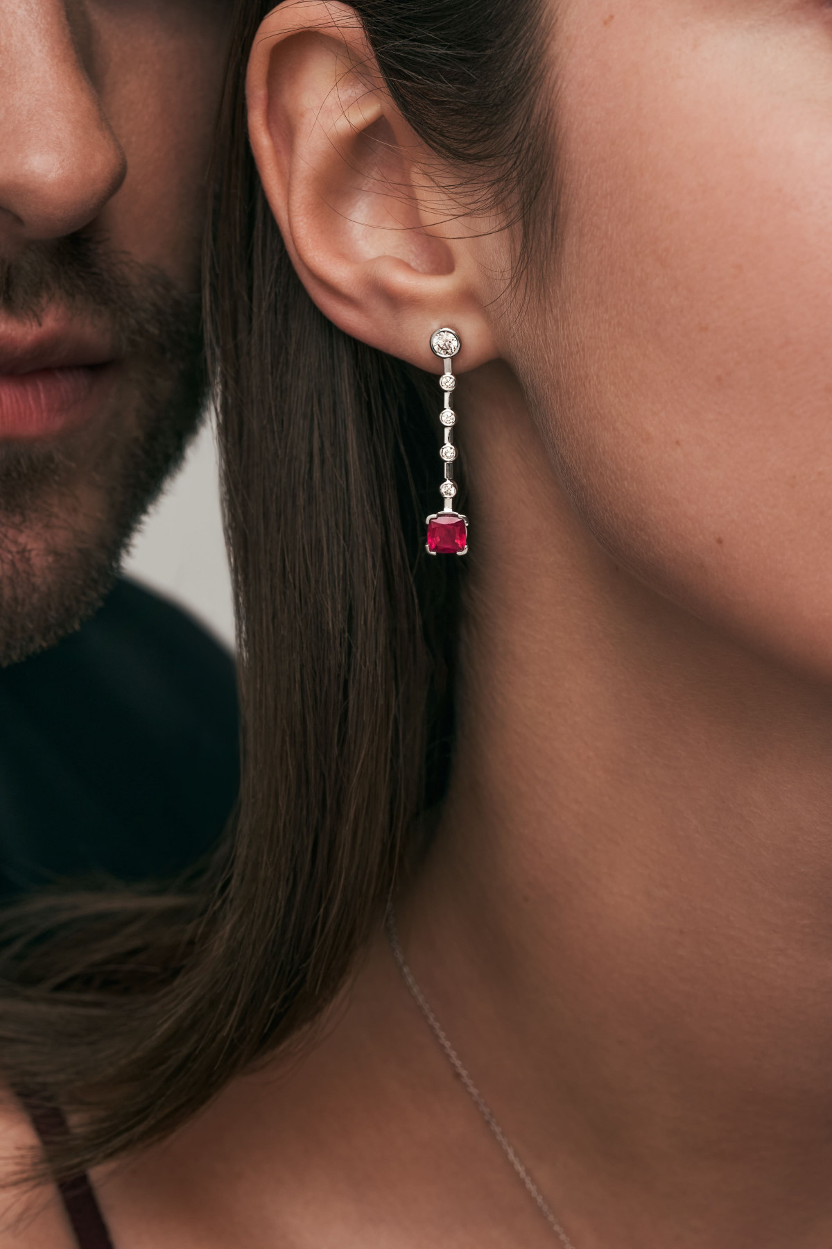 Також ювеліри, надихнувшись графічними лініями, поєднали рубіни огранки «кушон» з діамантами. Завдяки спеціальному кріпленню прикраси зберігають статичну форму, але залишаються рухливими.