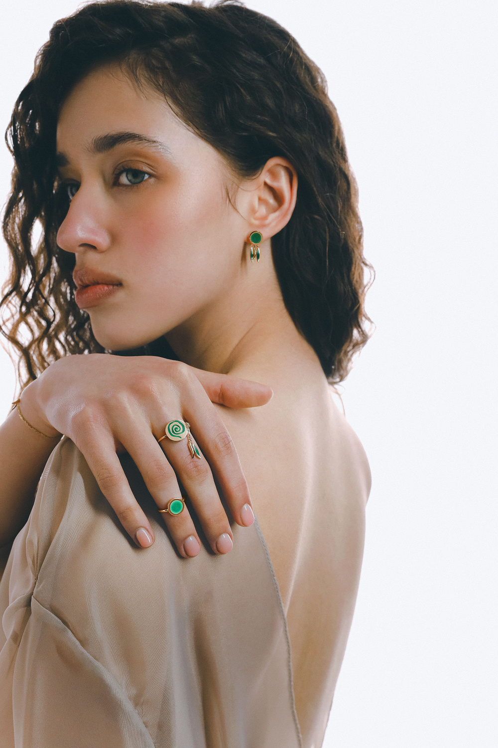 У колекцію увійшли моносережки, кафи, каблучки, підвіс, кольє-трансформери та браслети, що виконані у білому та жовтому золоті. У колаборації втілені флористичні мотиви з рухливими елементами, які перегукуються з рослинами Магічного Лісу, що колихаються від «мови вітру». Деталі у вигляді листочків відтворені як в прикрасах, так і на їх застібках.