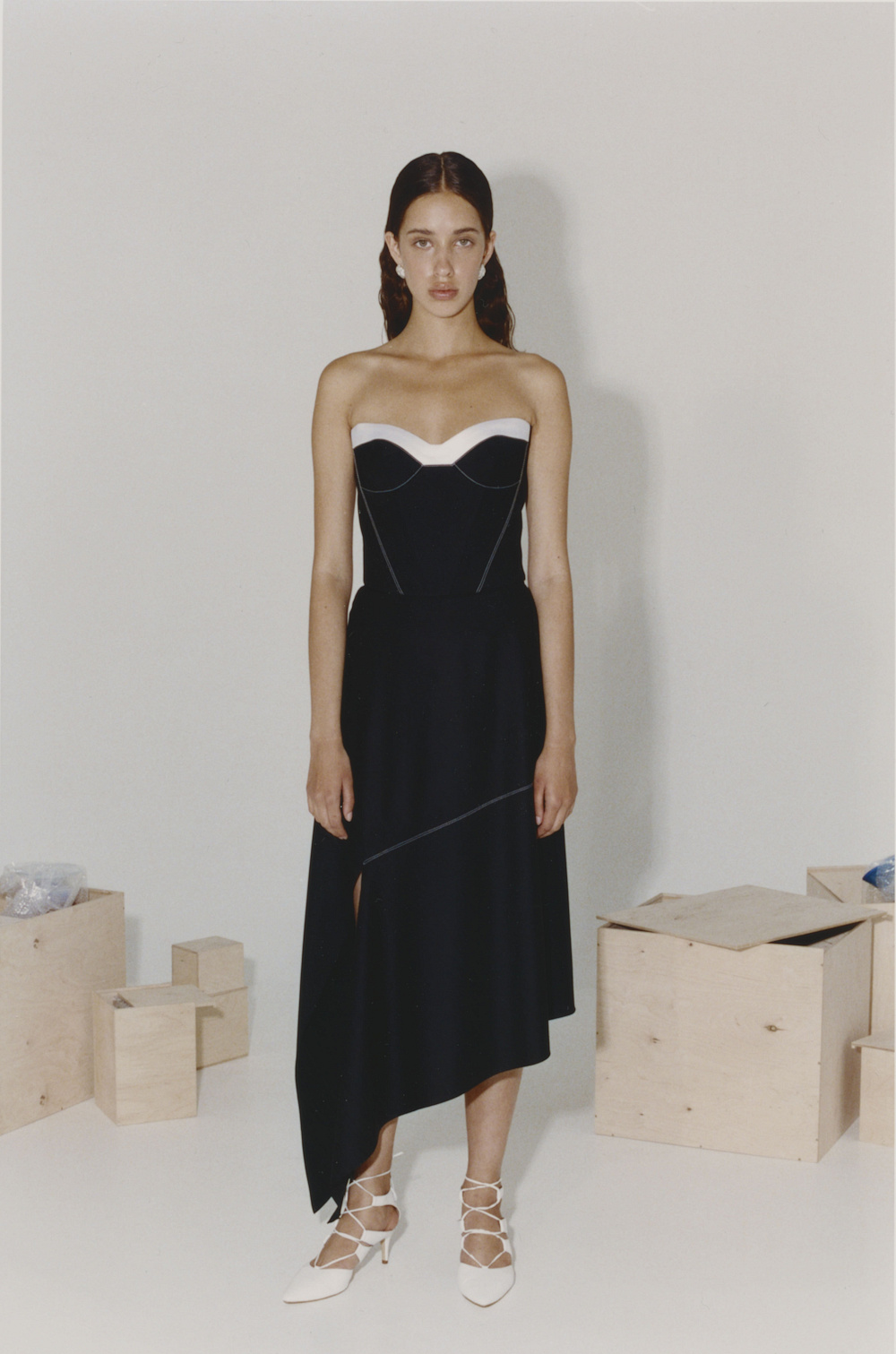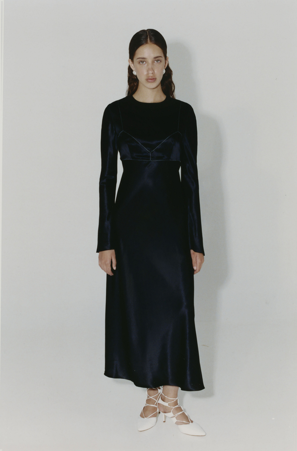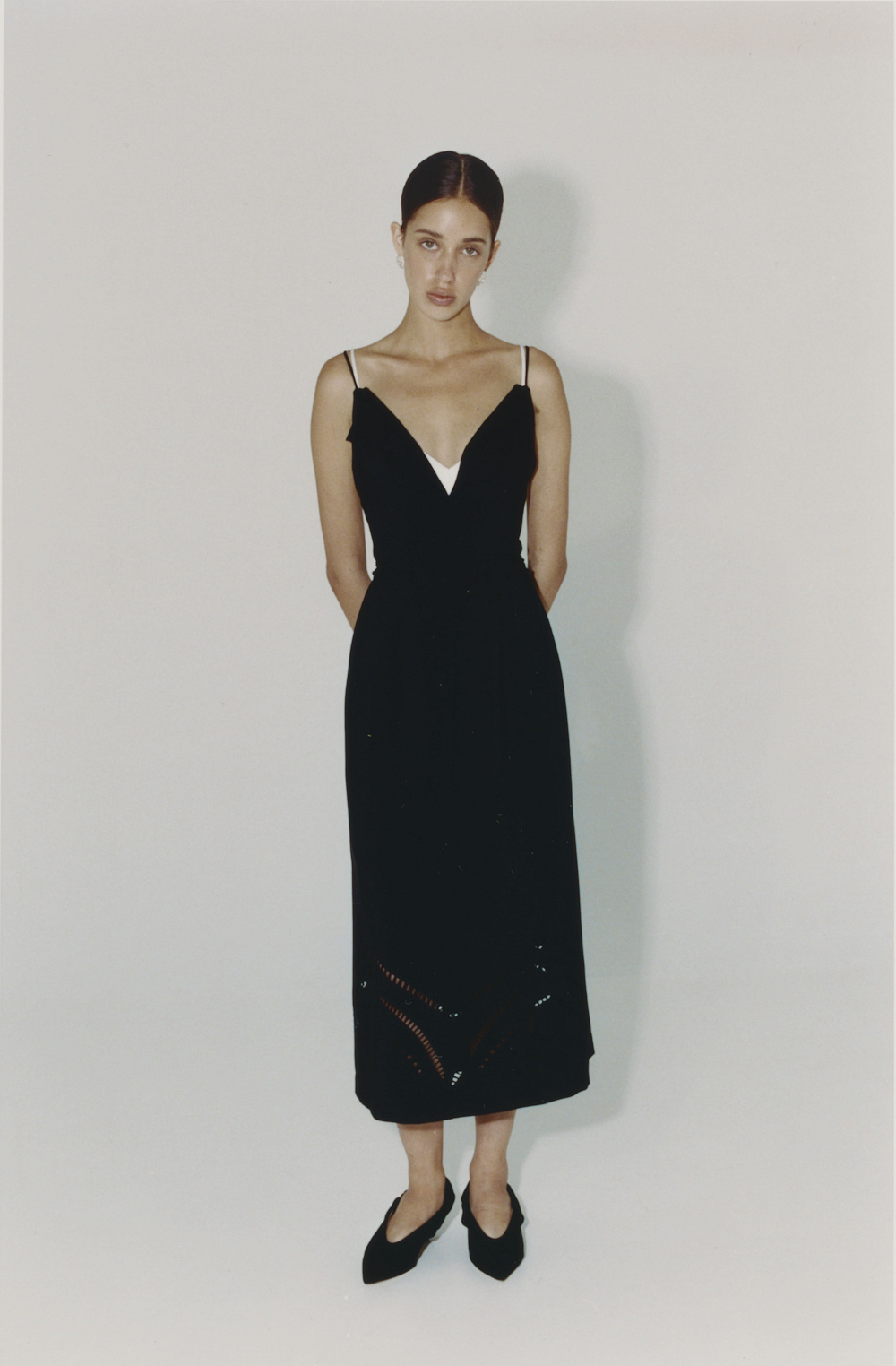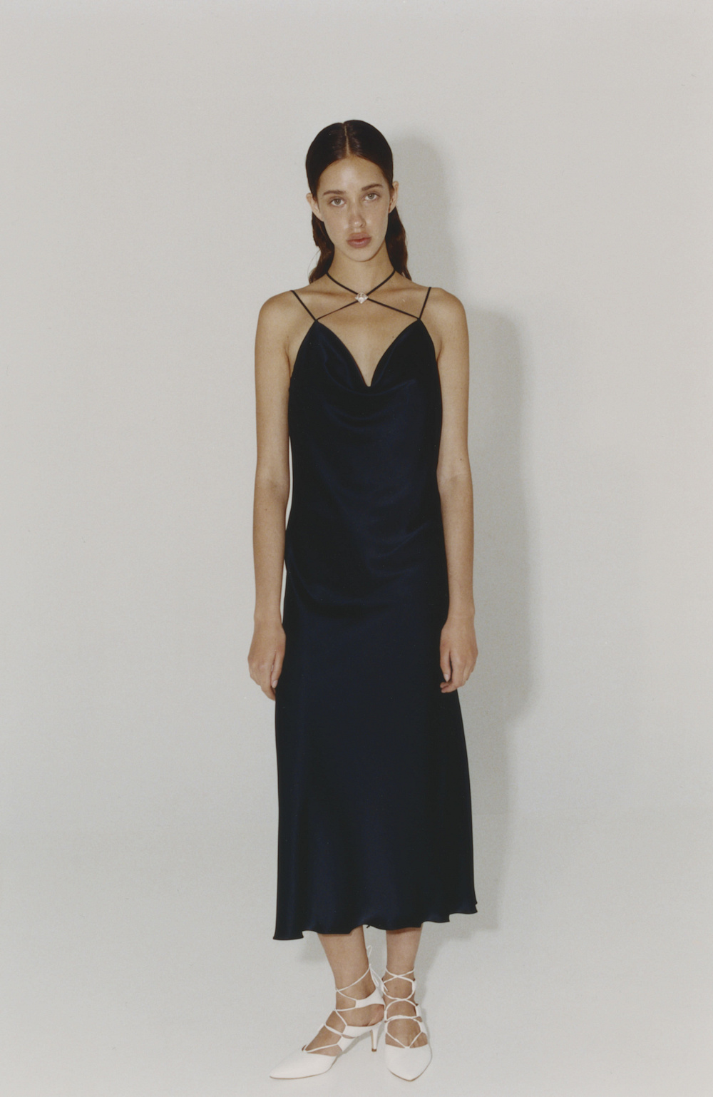 Культ жінки, поклоніння жіночій енергії та материнству, який існував у Трипільській культурі, знайшов відображення у колекції ELENAREVA у вигляді жіночних силуетів та делікатних акцентів в області бюста на шовкових сукнях та блузах. Характерні для бренду костюми-трійки в колекції SS`23 представлені у ніжно-блакитному та молочному кольорах.