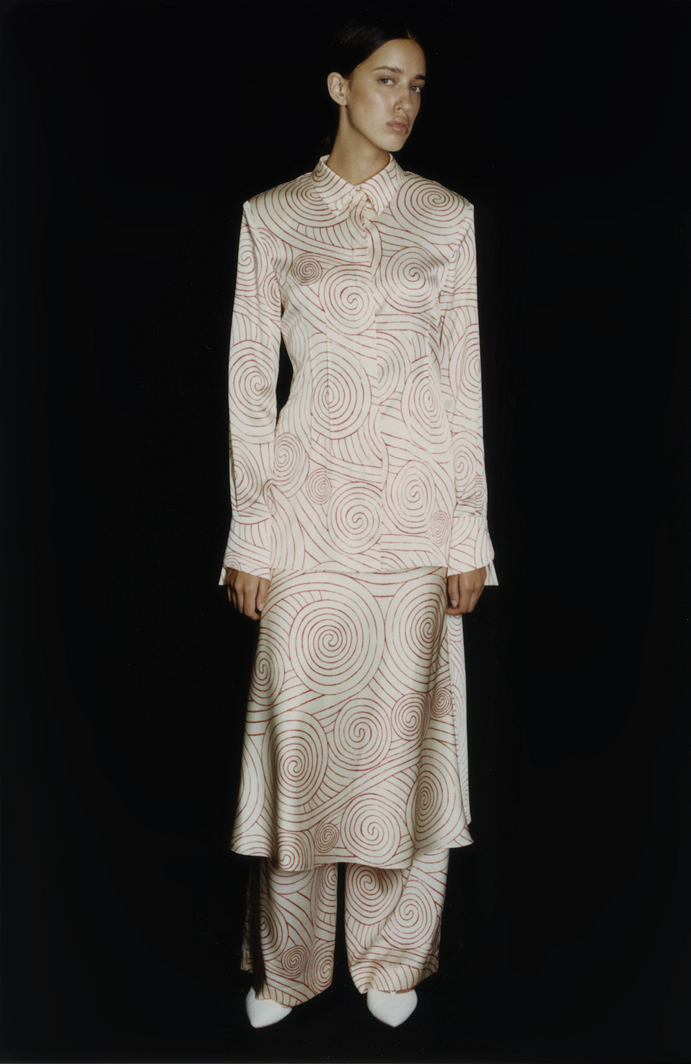 Найвідоміший символ сонця та безперервності буття, який зустрічається на численних трипільських гончарних виробах, дизайнерка розробила разом із художницею Ліною Нечиполіною. Витончений принт червоного відтінку із зображенням нескінченного кола помістили на шовкові сорочки, брюки та спідниці кольору вершкового масла. Групу чорних речей із костюмної тканини доповнюють стародавні візерунки, вирізані лазером — так мінімалістичні скульптурні форми набувають нового вигляду і сенсу.