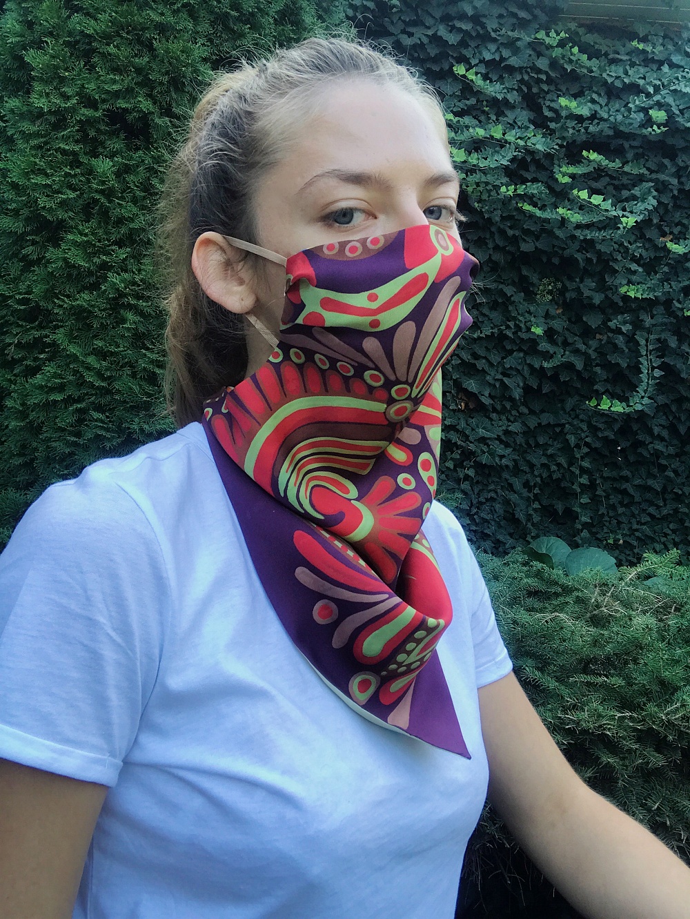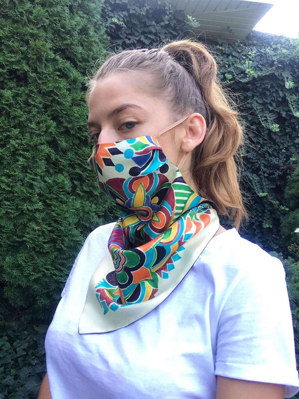 Український бренд Oliz випустив нову колекцію шовкових хустин, які в одну мить можуть перетворитися на захисну багаторазову маску для обличчя.