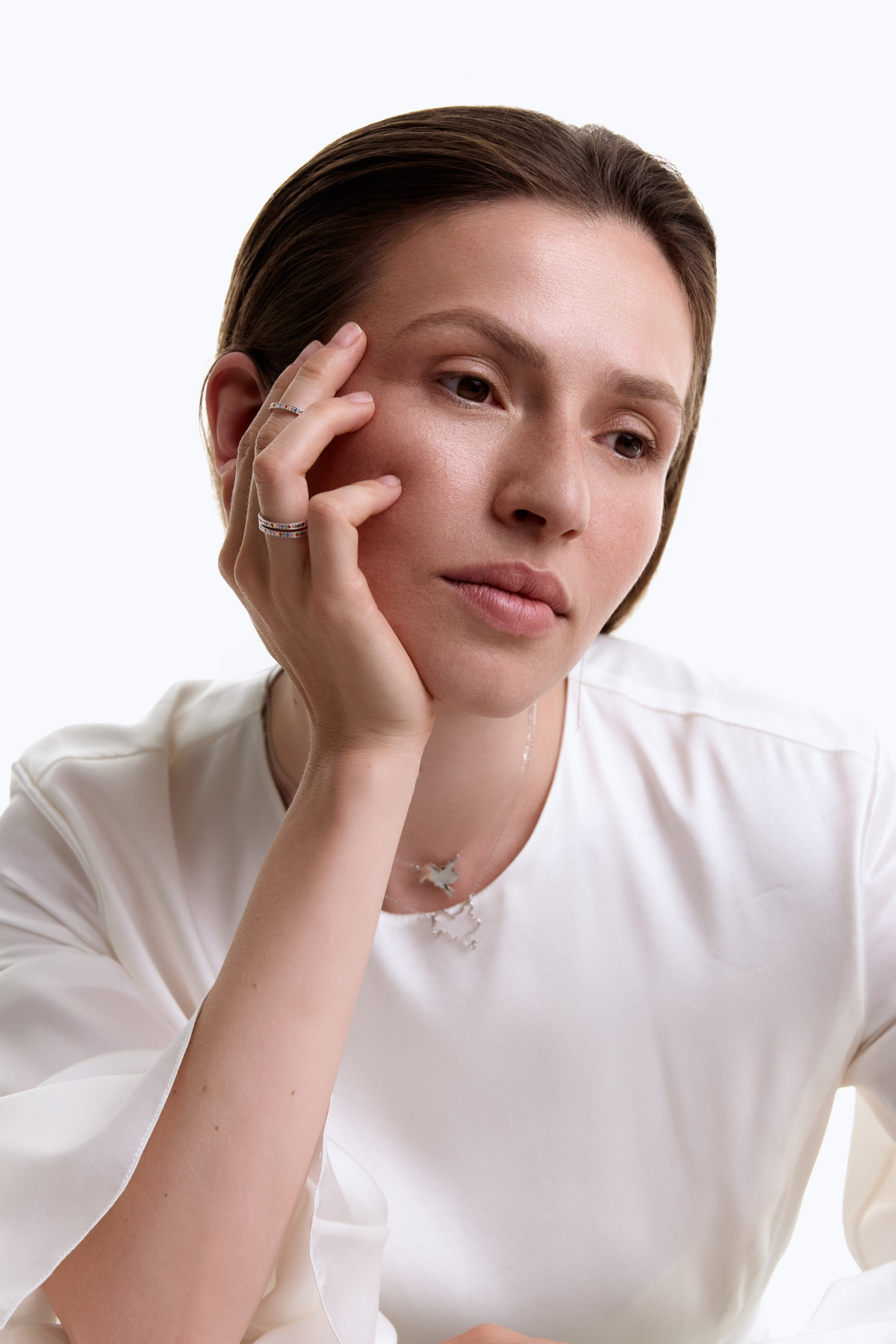 До лінійки увійшли кольє з картою Києва, мінімалістичні браслети, каблучки, моносережки та кафи з різноколірним камінням.