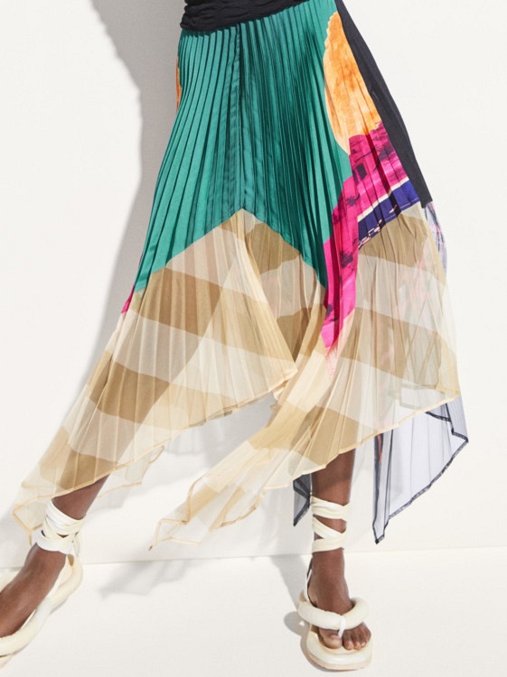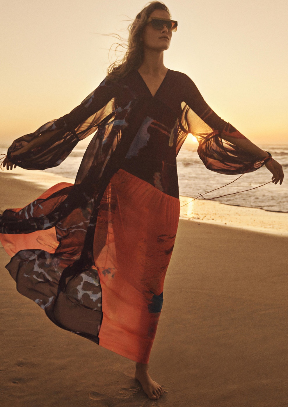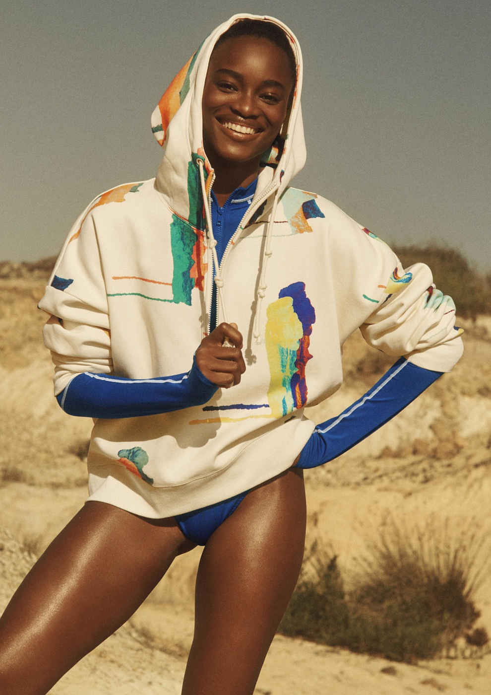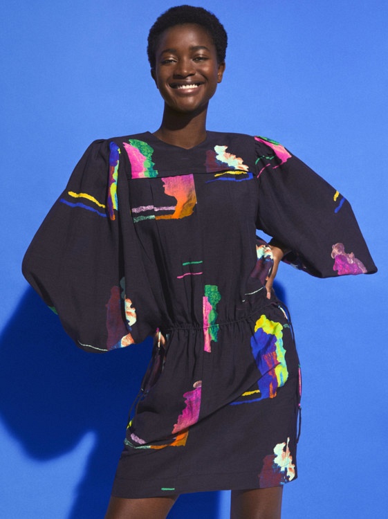 Нетривиальные силуэты и электрические цвета создают беззаботное настроение. Ключевые модели включают воздушное платье в оригинальном принте, полосатые кремовые джинсы, свитер крупной вязки в розовых, кремовых и черных полосах. Натуральные вискозно-льняные волокна придают вещам легкости, а переработанный полиэстер добавляет платьям невесомости.